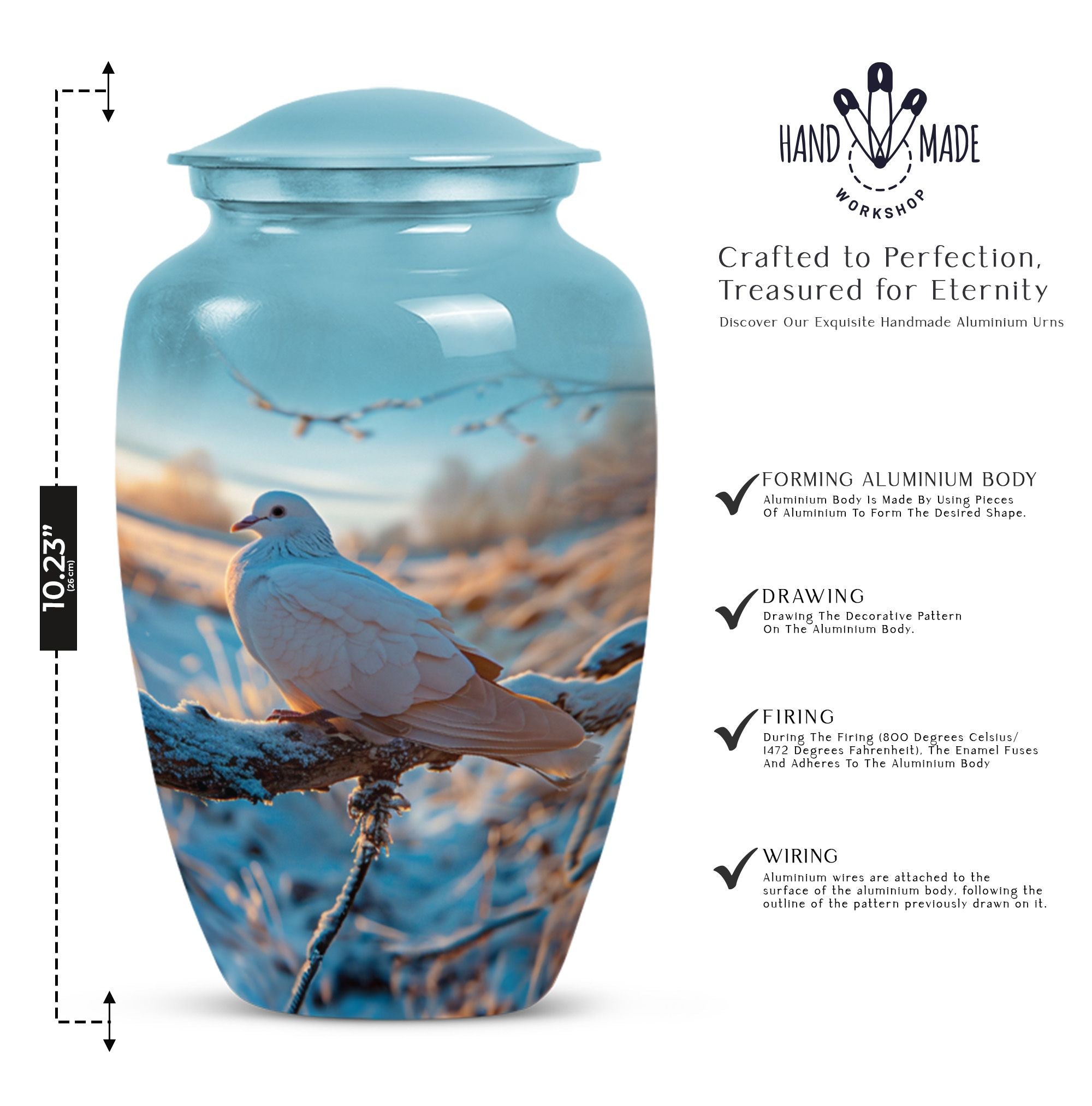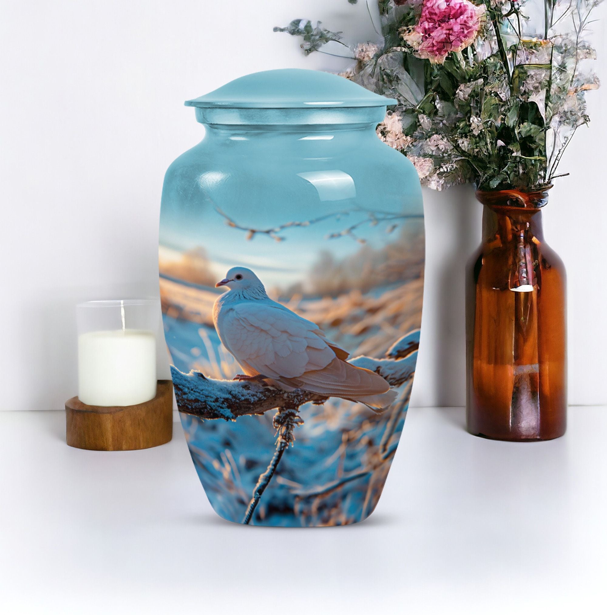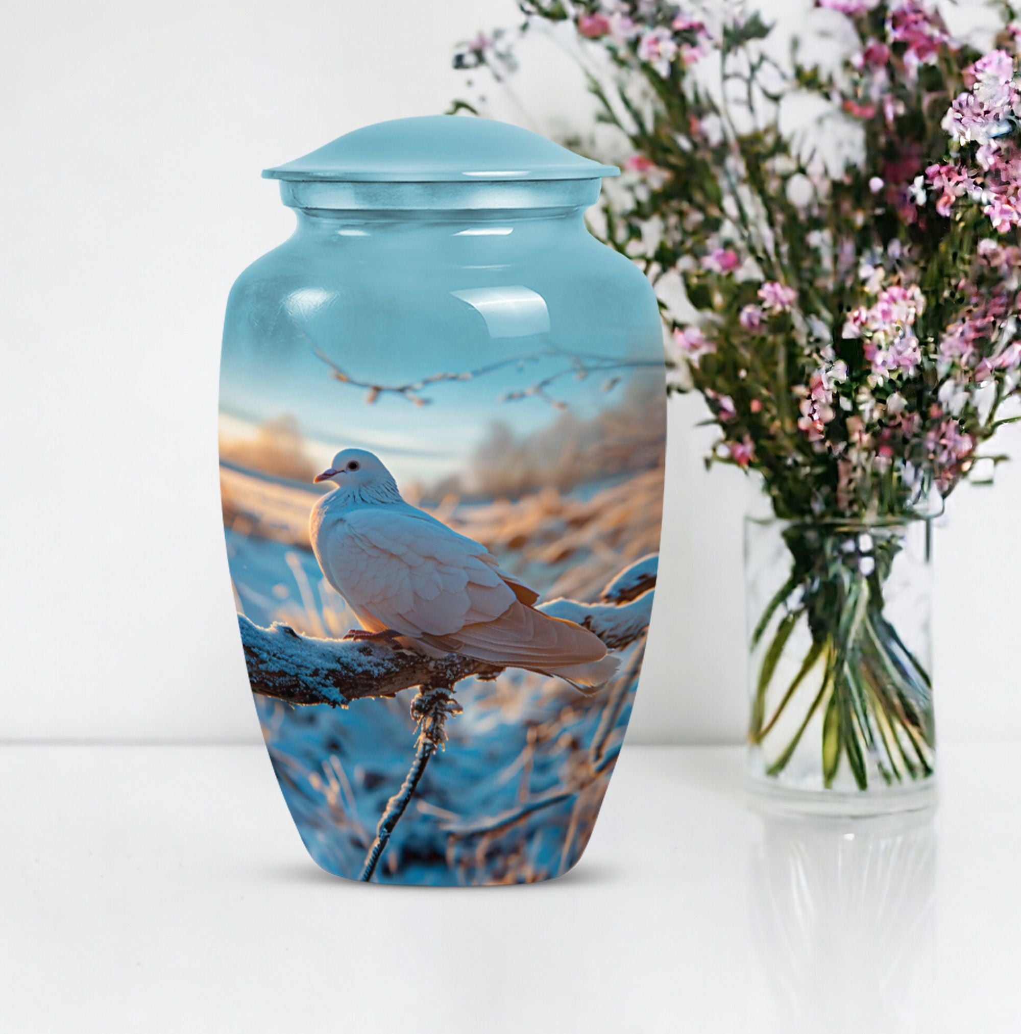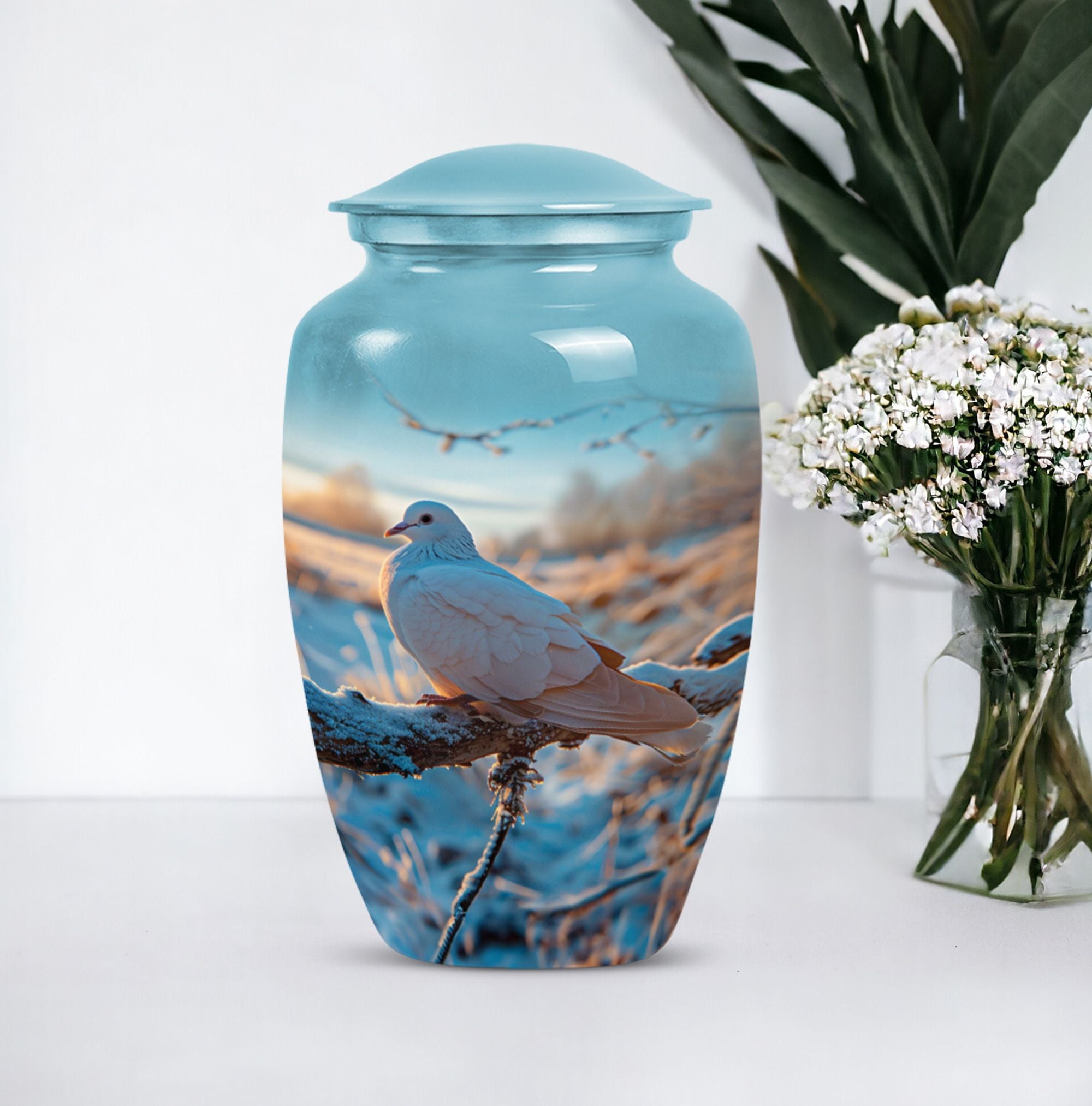Crafted from premium aluminium, this dove-inspired urn showcases timeless craftsmanship and durability. Its smooth white finish with delicate dove accents creates a calming presence, making it suitable as adult urns for human ashes men or adult urns for human ashes women. The secure screw-top lid ensures ashes remain safe, while its graceful design brings solace in moments of remembrance. This versatile urn can serve as funeral urns for adult ashes men or as a gentle memorial urn for women, offering both functionality and heartfelt symbolism.