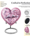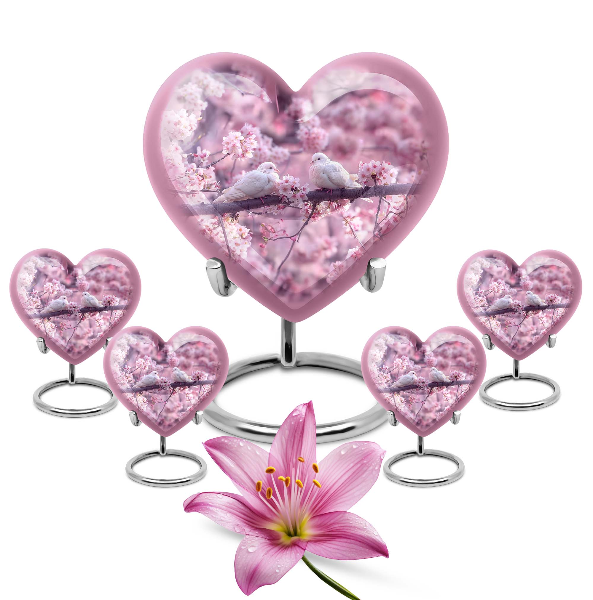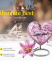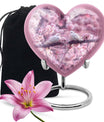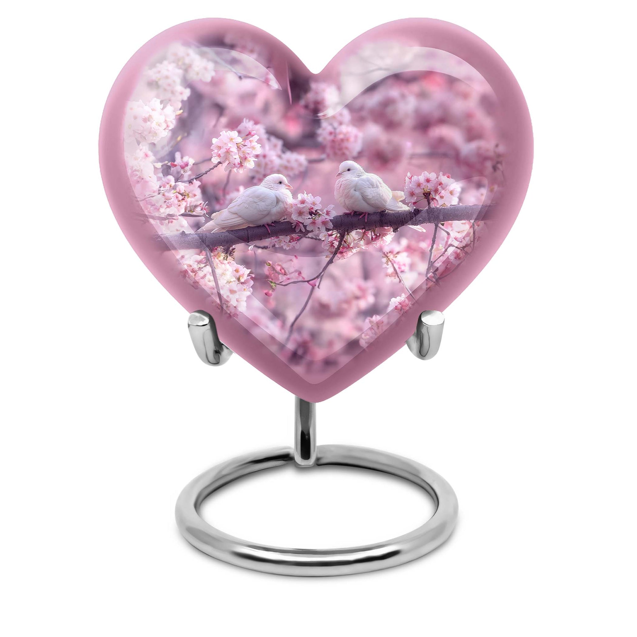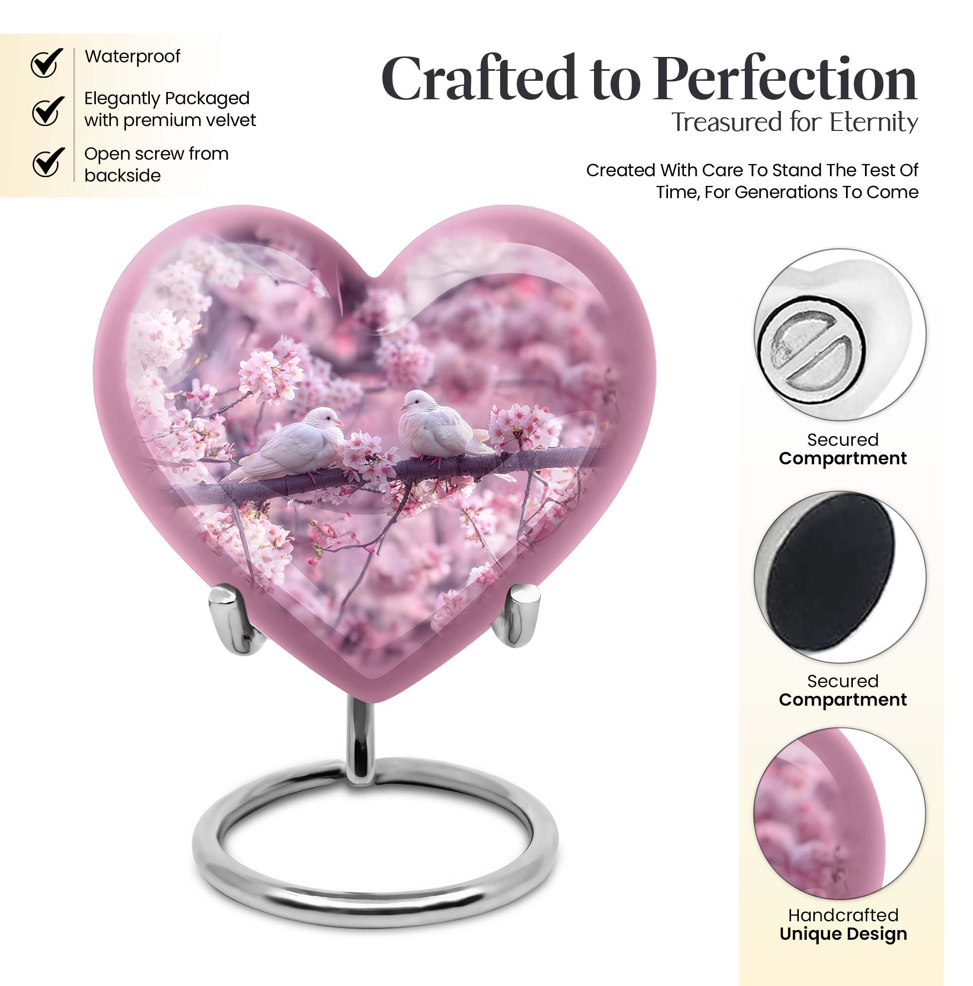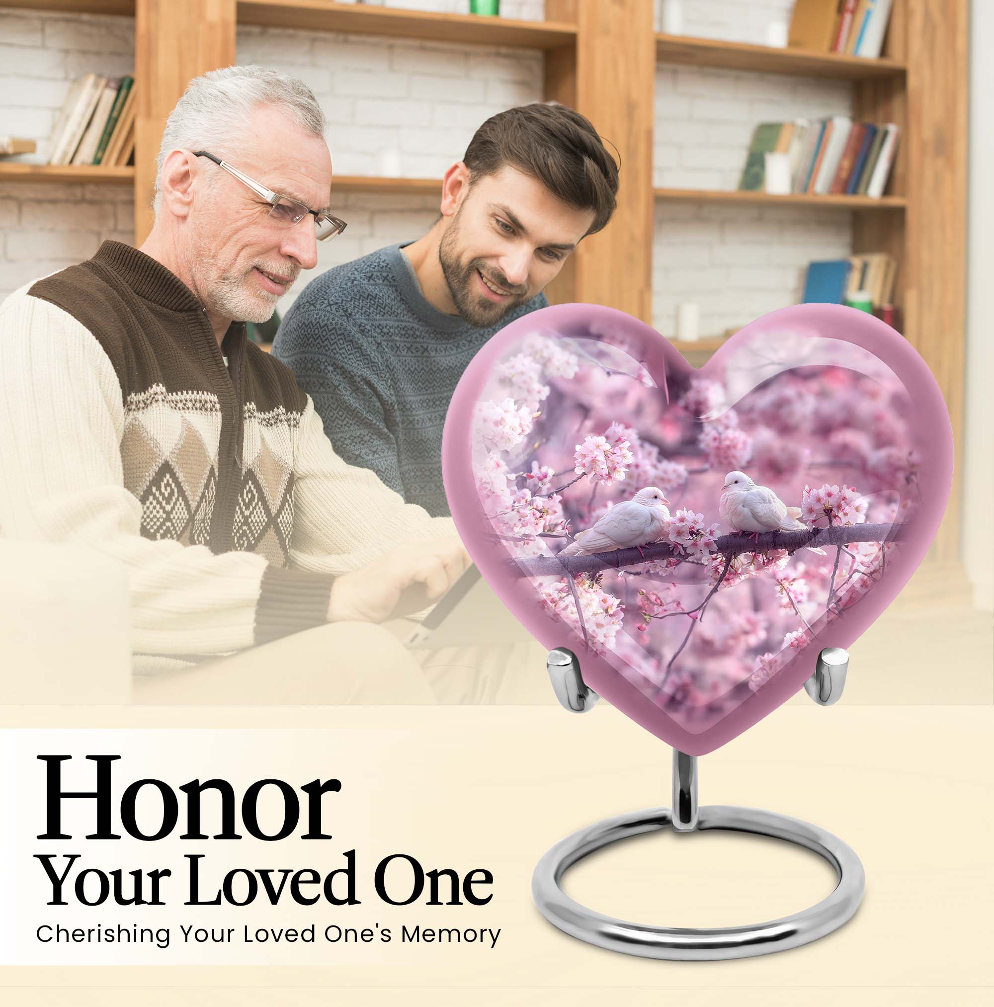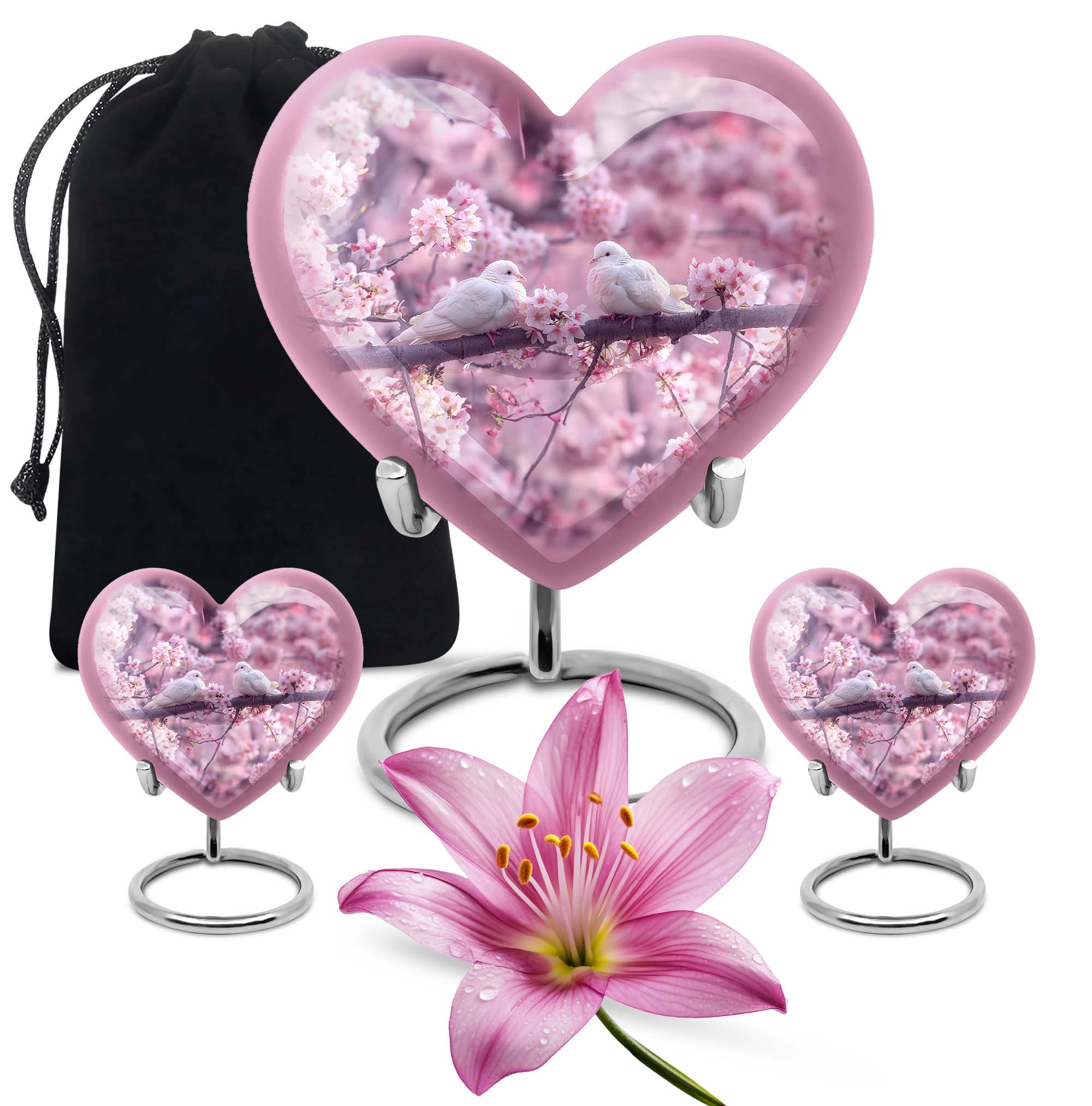 Discover the elegance and serenity in our 10-inch dove urn, an exceptional choice for memorial urns for ashes of adult men. Our large urn, formed from durable aluminium, weighs a substantial 3.3 pounds and can accommodate up to 200 cubic inches of ashes. It emanates a soothing abstract theme, lovely for those seeking solace during testing times. Your loved ones' remains will stay securely within, as the cremation urn comes accompanied by a velvet pouch for containment of ashes. For a personal touch, we offer customization options where you can engrave names on it. Our urn highlights an exquisite heart urn design, a special way to remember and honor your beloved. Reverence, love, and memories, encapsulated in an urn. Acquiring this funeral urn can also add a refined decor element to your household. Not merely a vessel for ashes, but a celebration of life and enduring love. An exquisite selection for funeral urns for adult ashes for women and men.