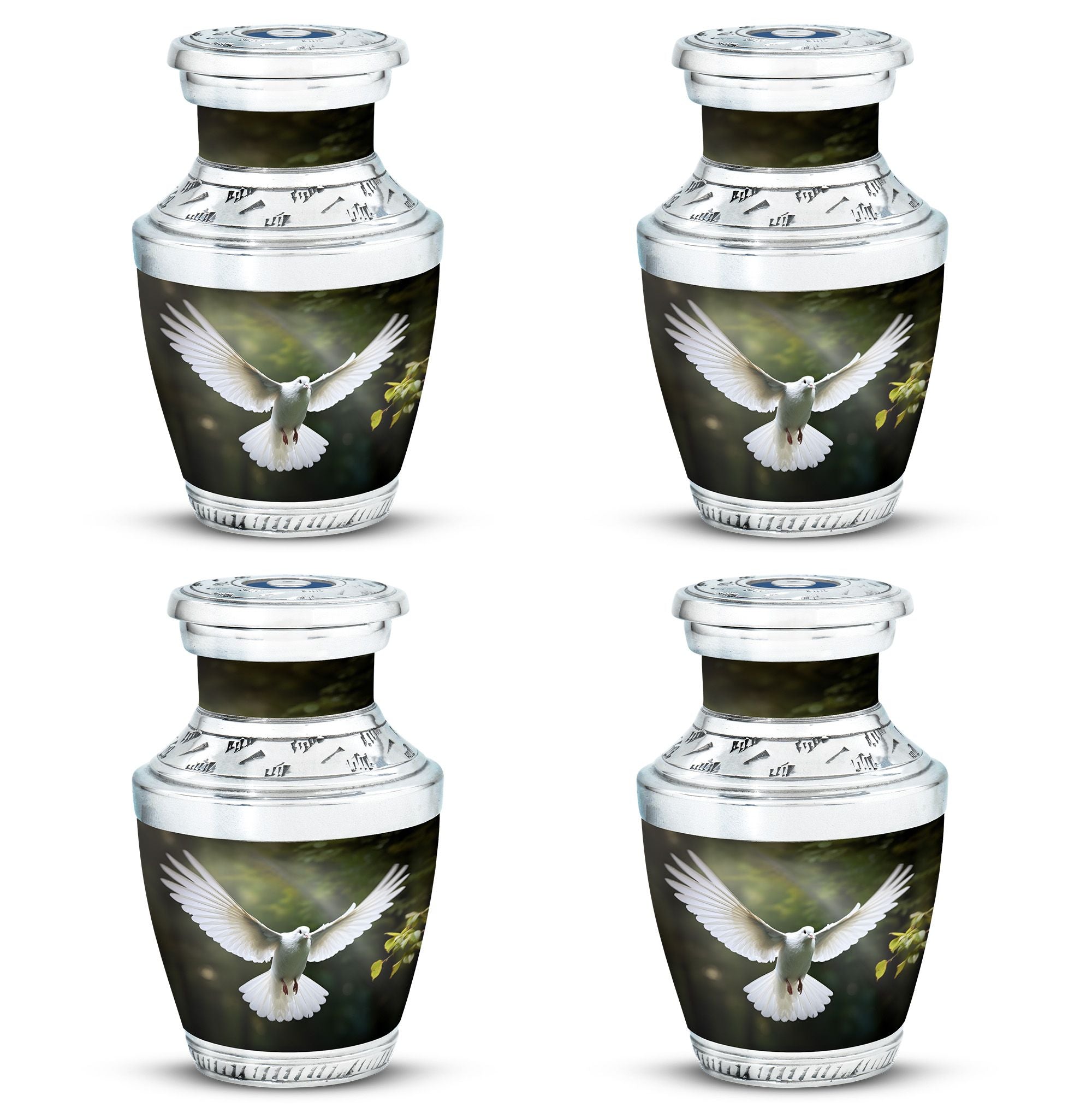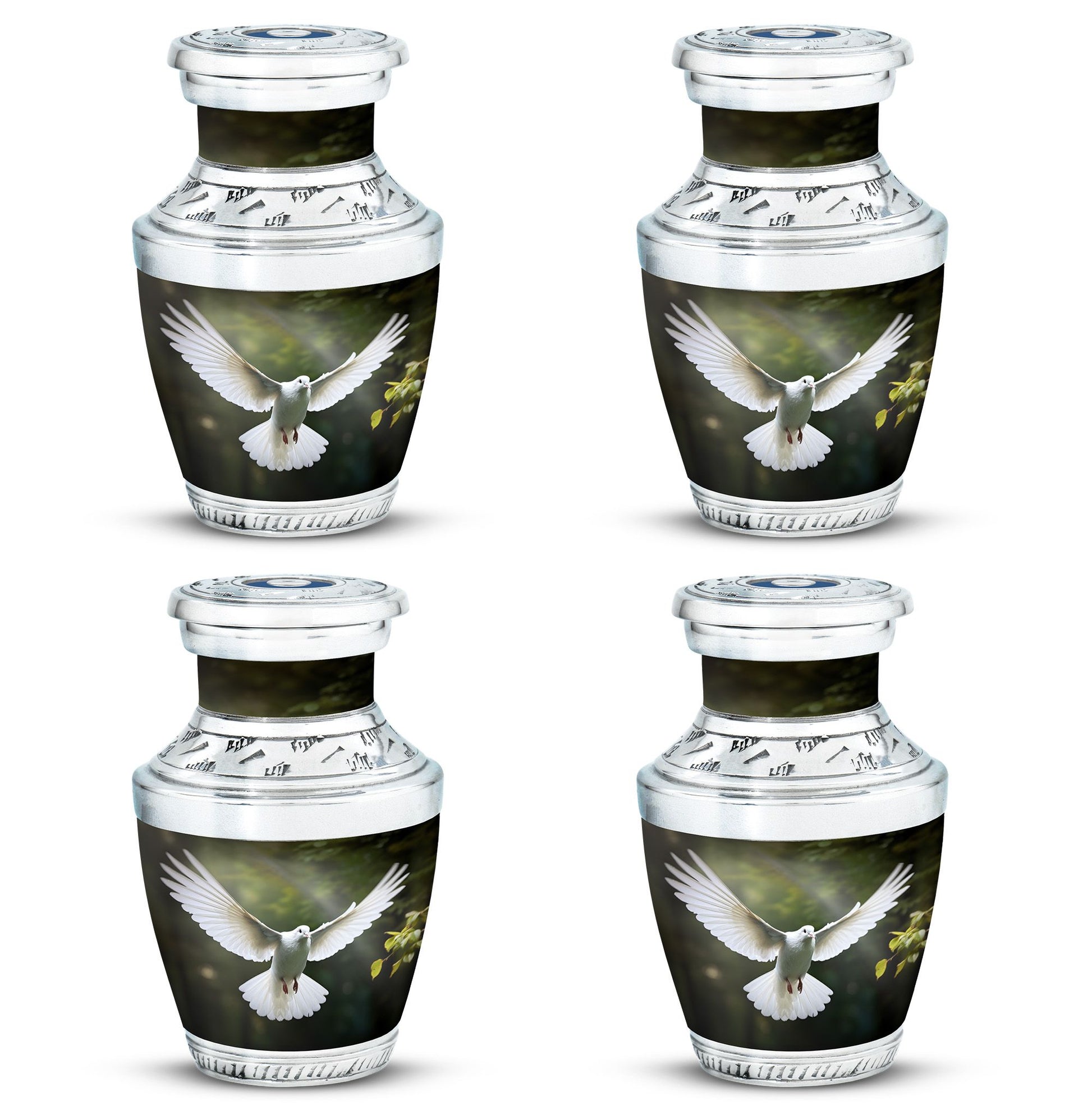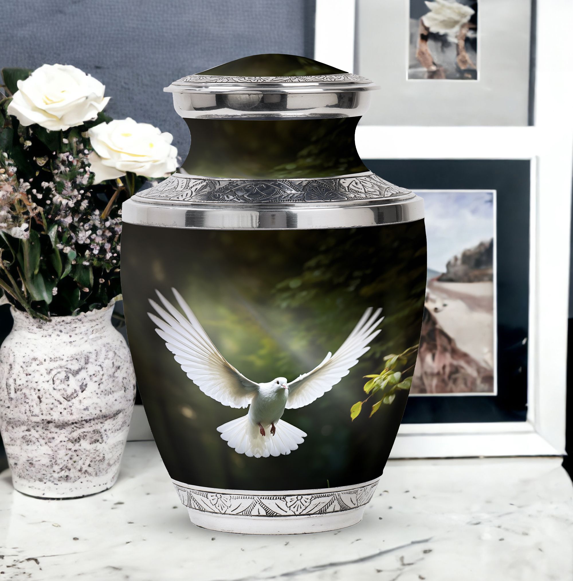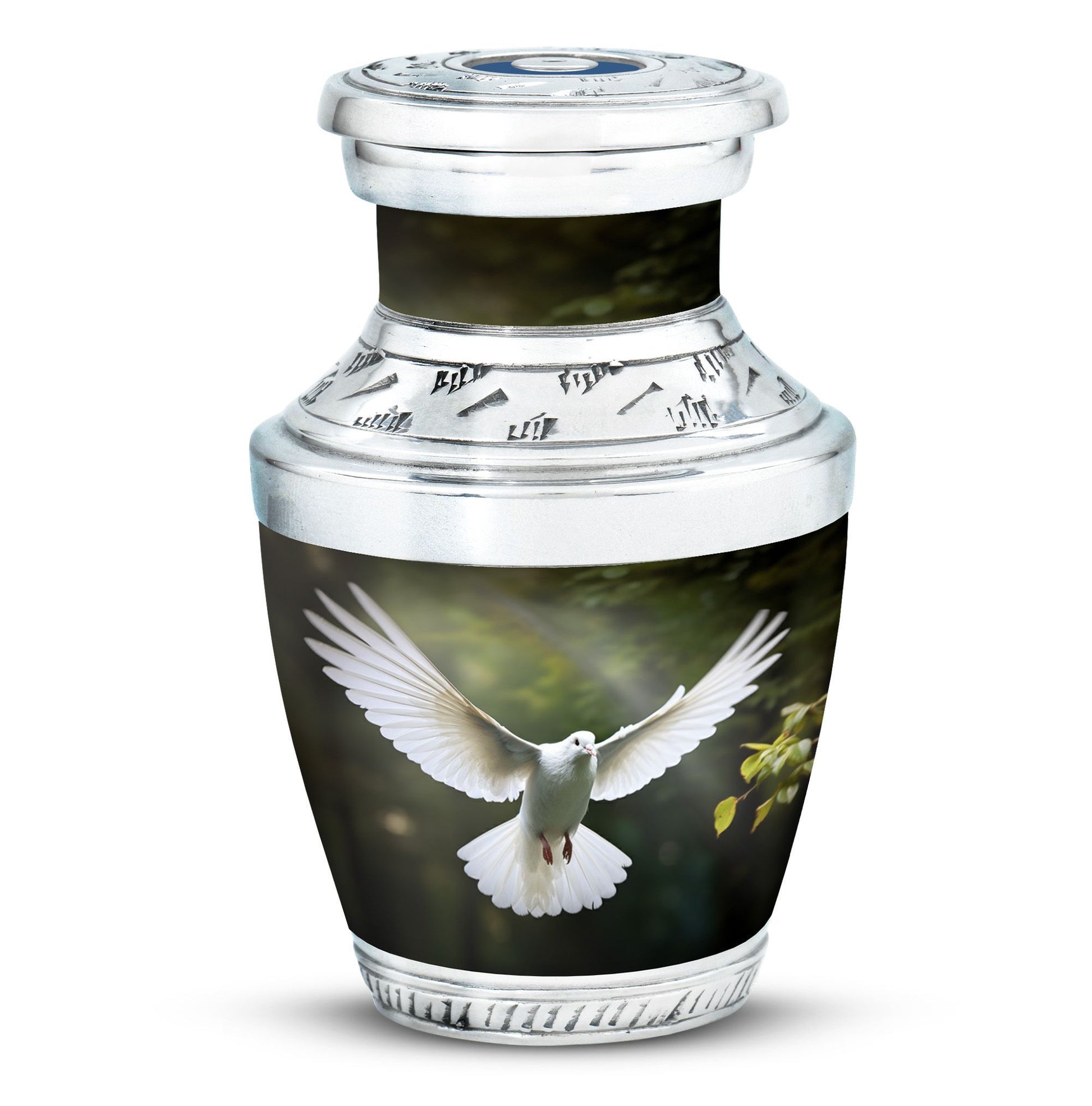Reverence towards the departed loved ones is expressed eloquently in our 3-inch Dove Urn - an embodiment of profound dignity. Our memorial urns, meticulously crafted from high-quality Aluminium, promise longevity and serve as an eternal keepsake. It possesses an exquisitely Classic Urn design, a visual metaphor for the respecting the cycle of life and vigilant stewardship of memories. Dimensioned at 10 inches in height, it comfortably holds upto 200 cubic inches of your loved one’s ashes. The urn, which weighs a substantial 3.3 pounds, is designed to accommodate larger volume requirements. We also offer customization options to personalize the urn with engraved names, enhancing the sentiment and individuality. The Dove Urn comes with a complementary velvet pouch - an elegant solution for containment of ashes.