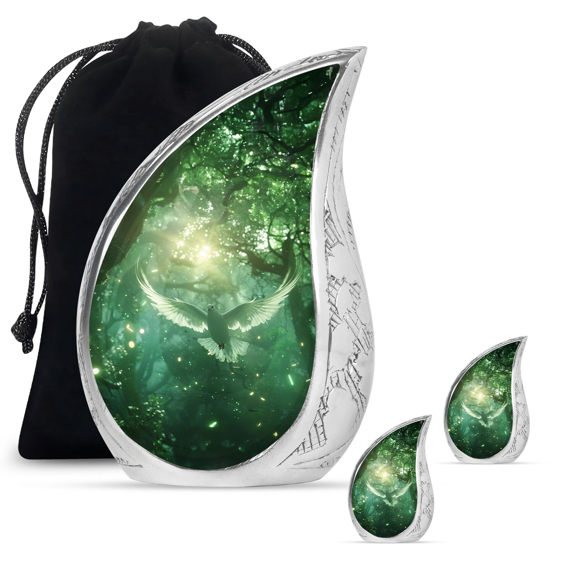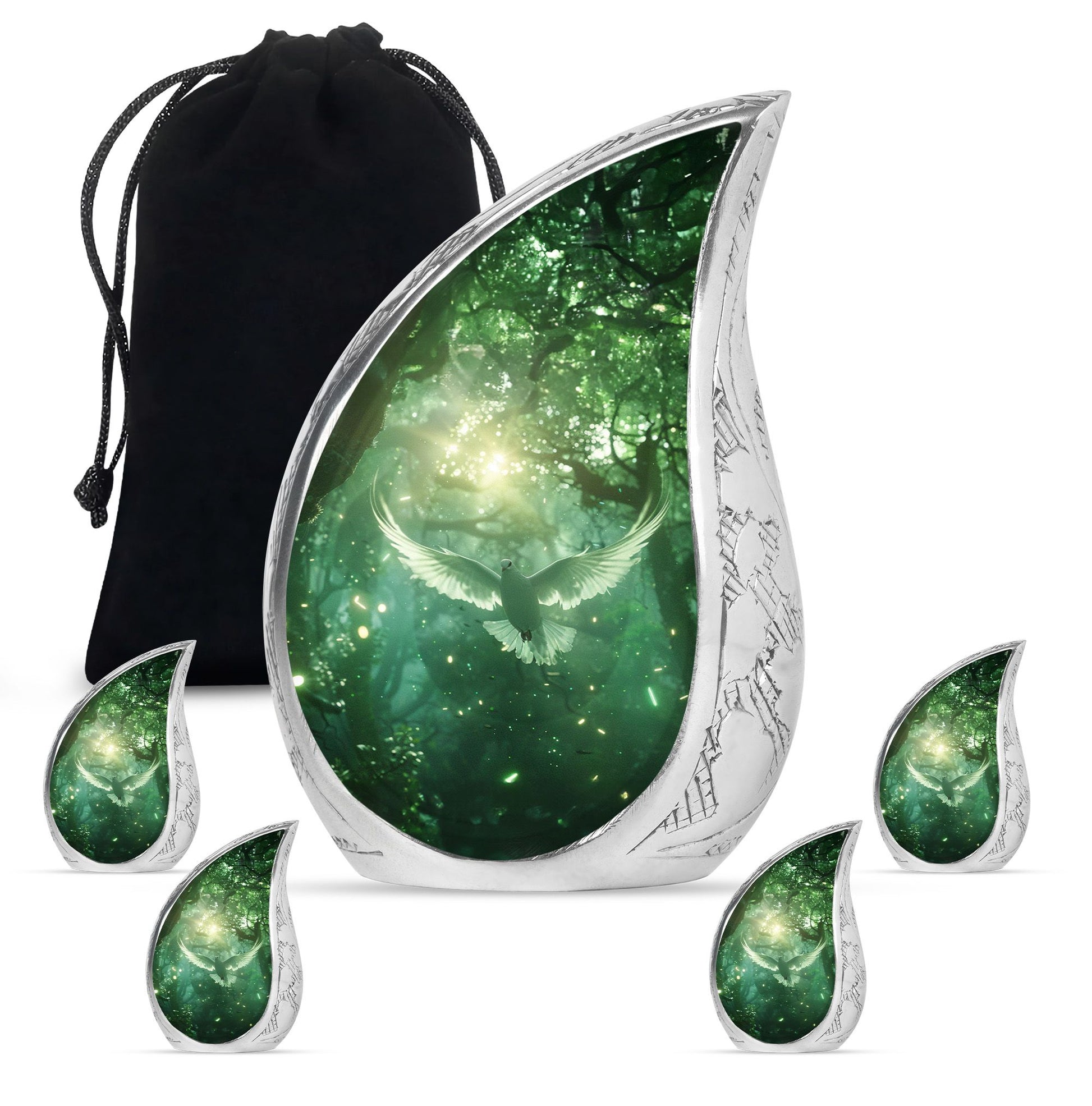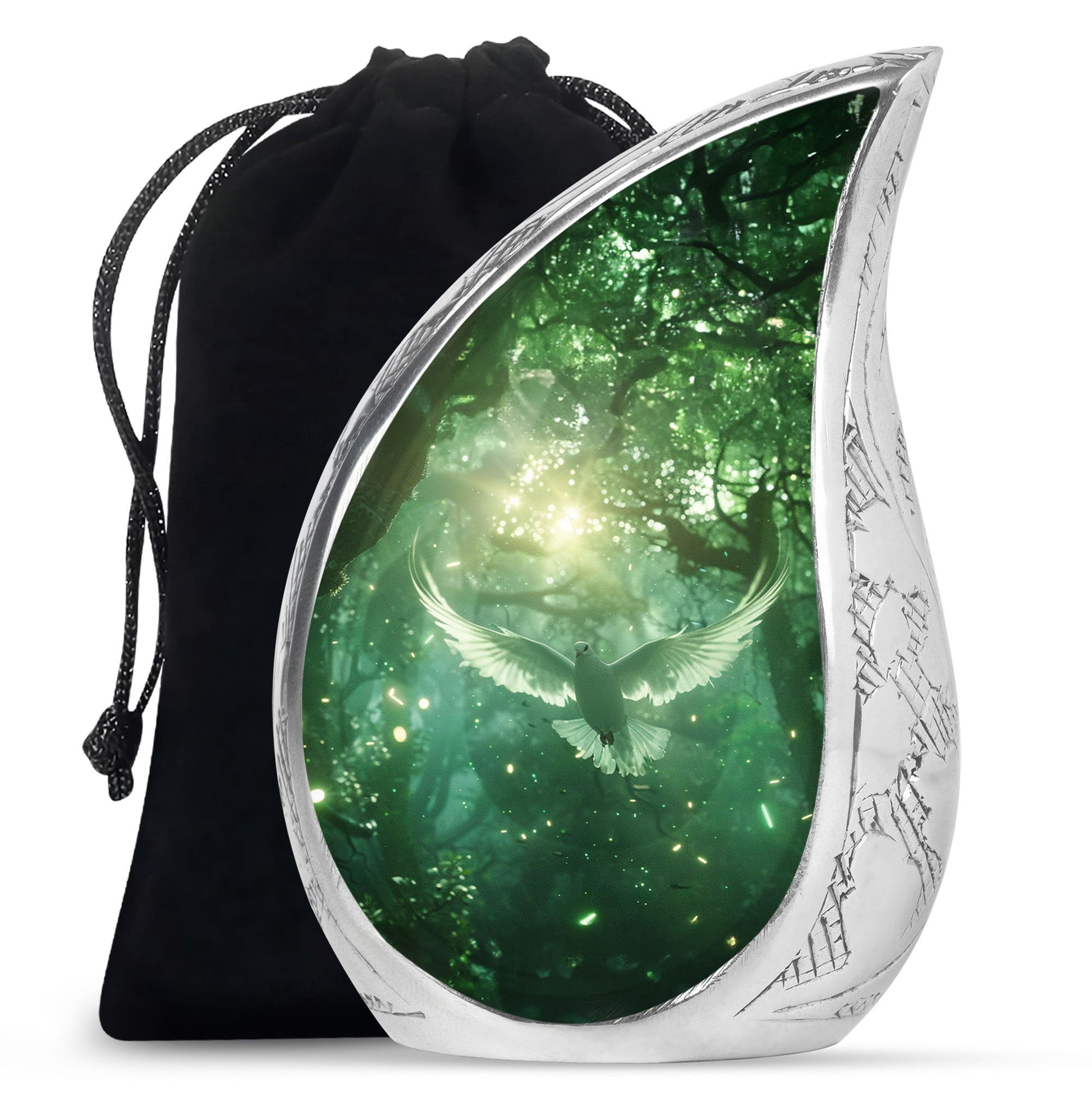Celebrate the life of a cherished man with the Dove Large Urns for Human Ashes. This green forest memorial urn offers a dignified and heartfelt tribute, ideal as cremation urns for ashes for men, urns for cremation ashes, or cremation keepsake urns for human ashes adult, preserving memories with care and respect.