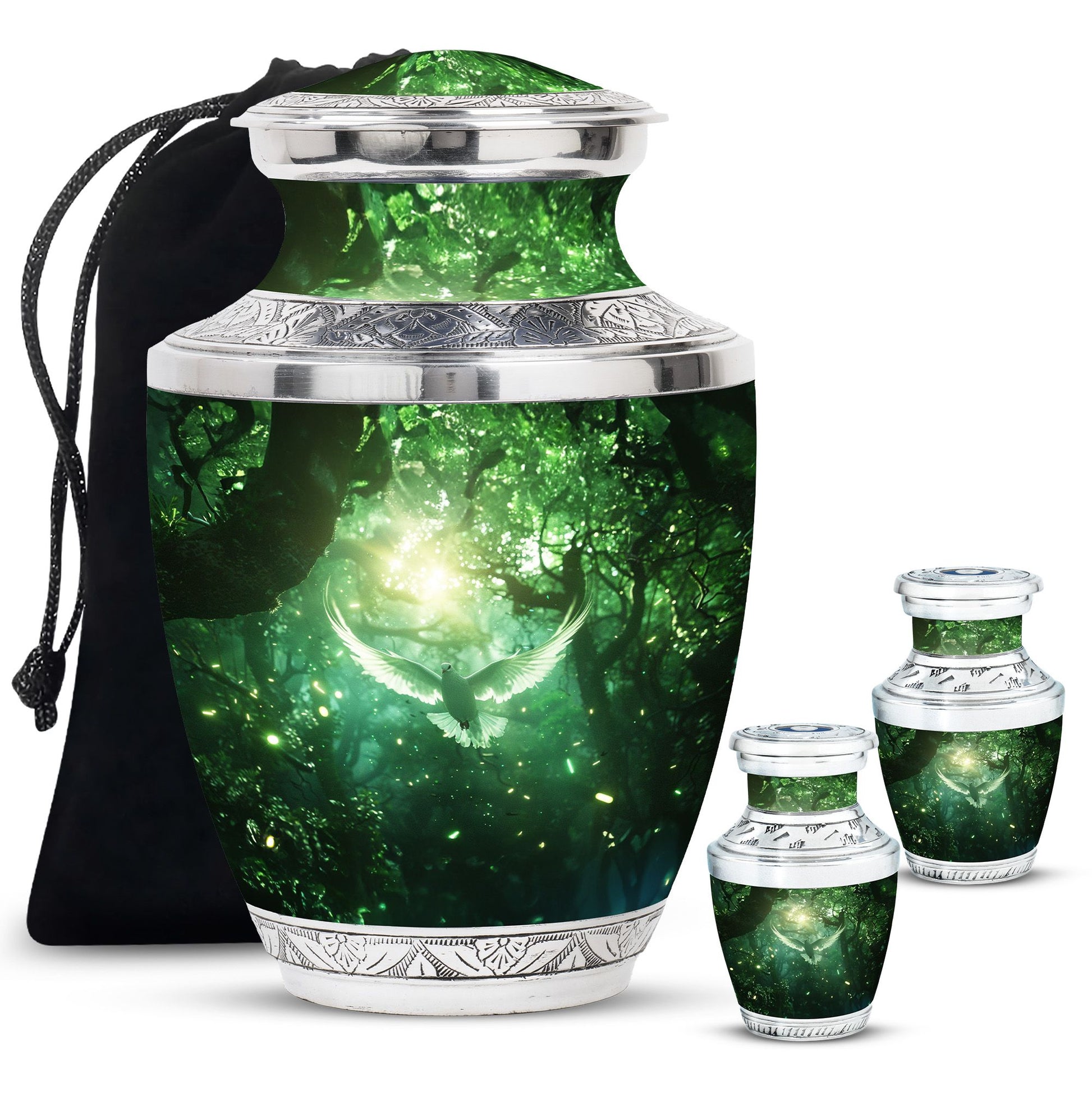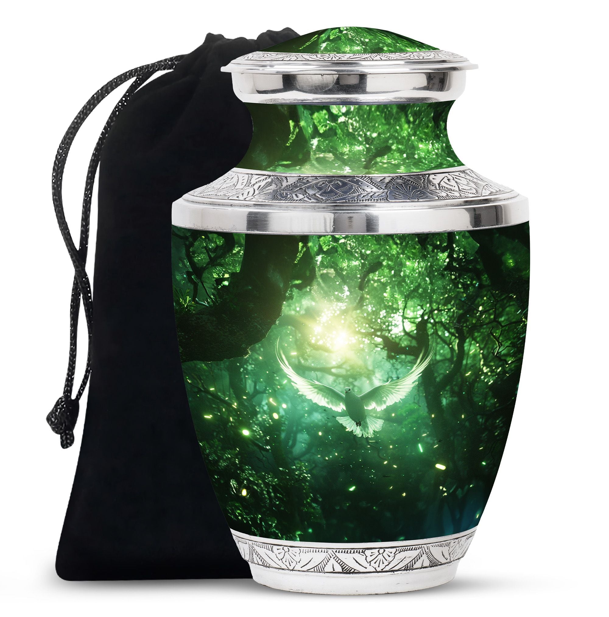 With its serene green forest design and symbolic dove motif, the Dove Large Urn offers a lasting tribute for cremation urn small, urns for cremation ashes, or any adult cremation remembrance, keeping loved ones close in spirit.