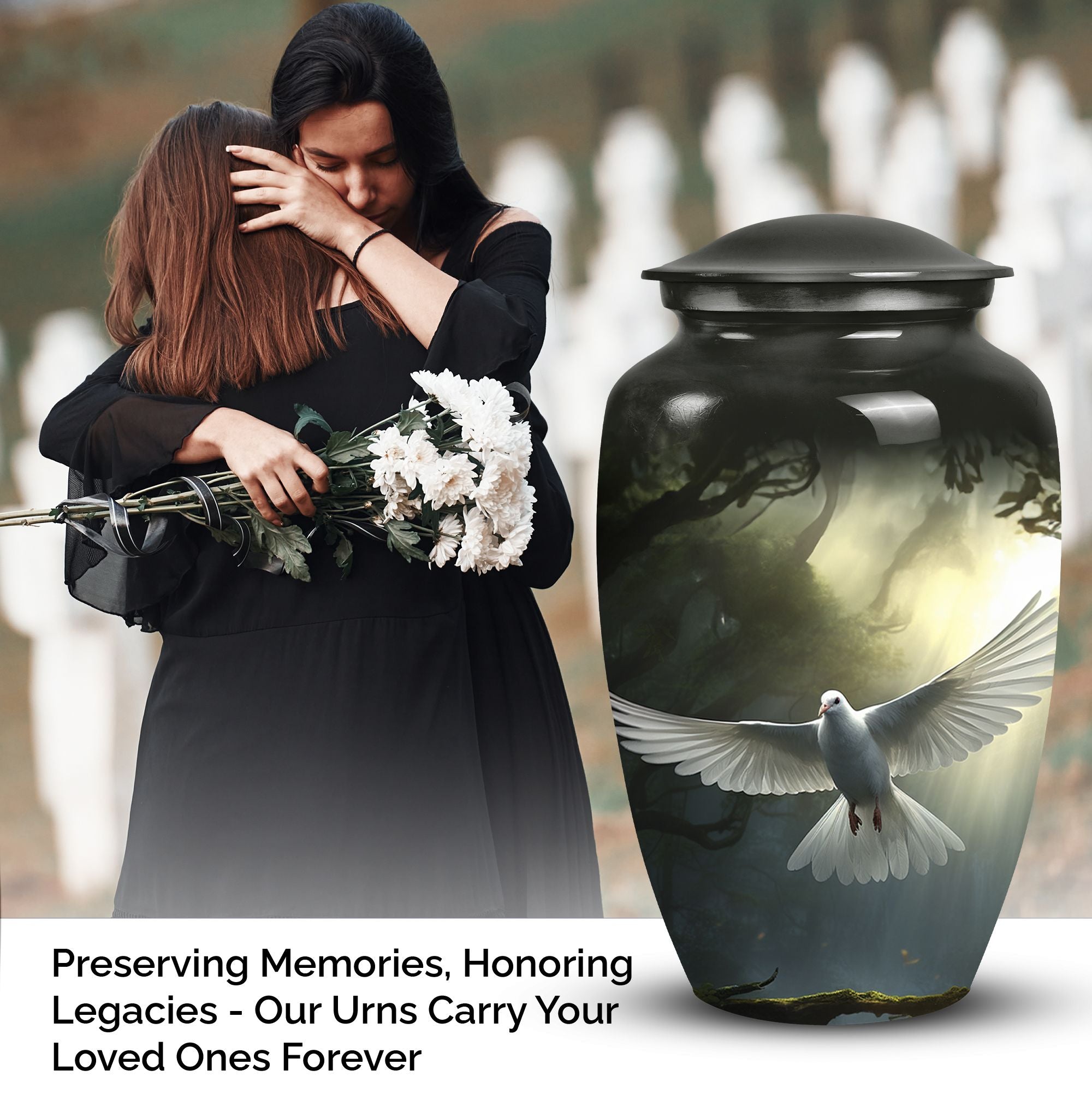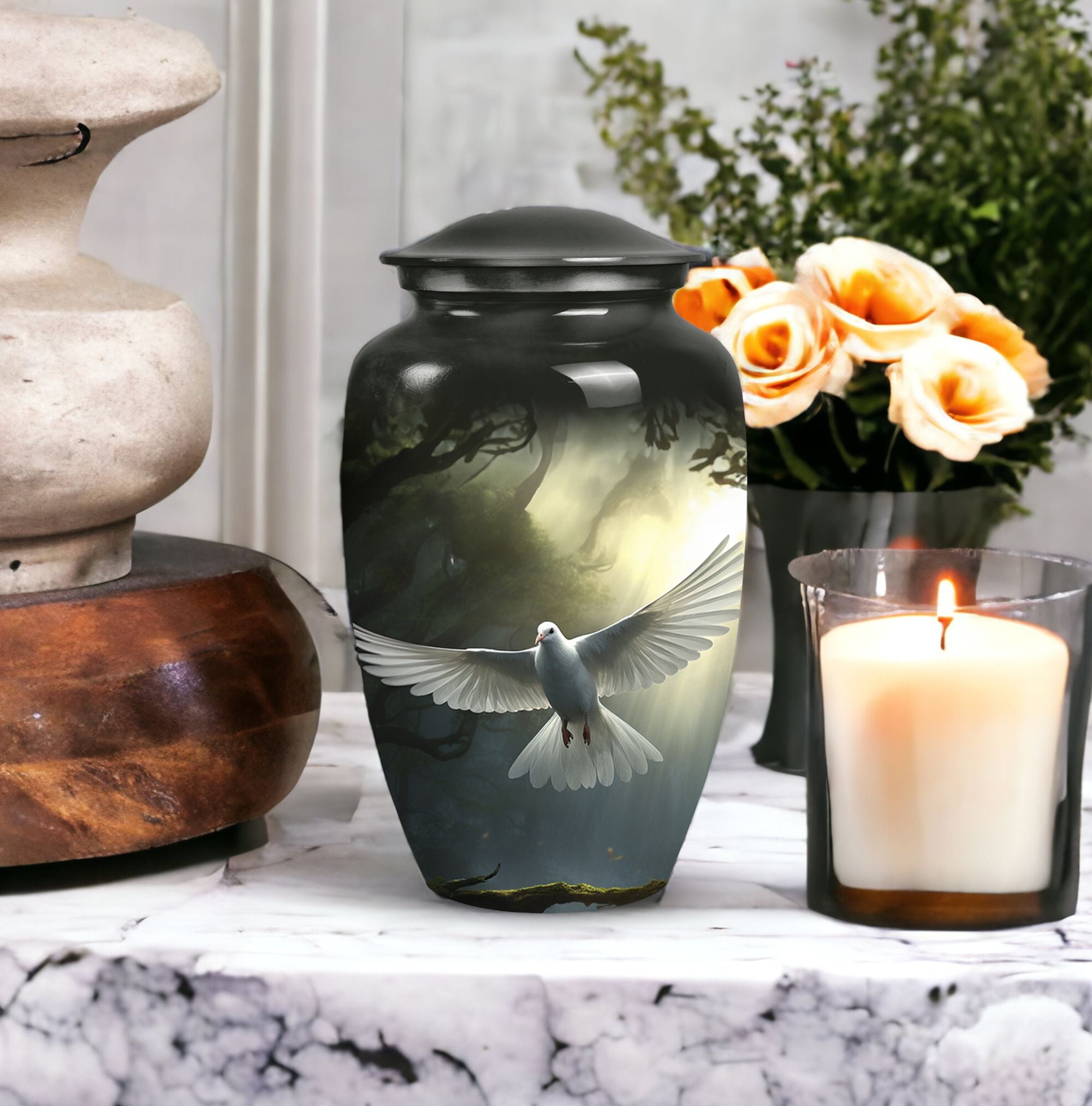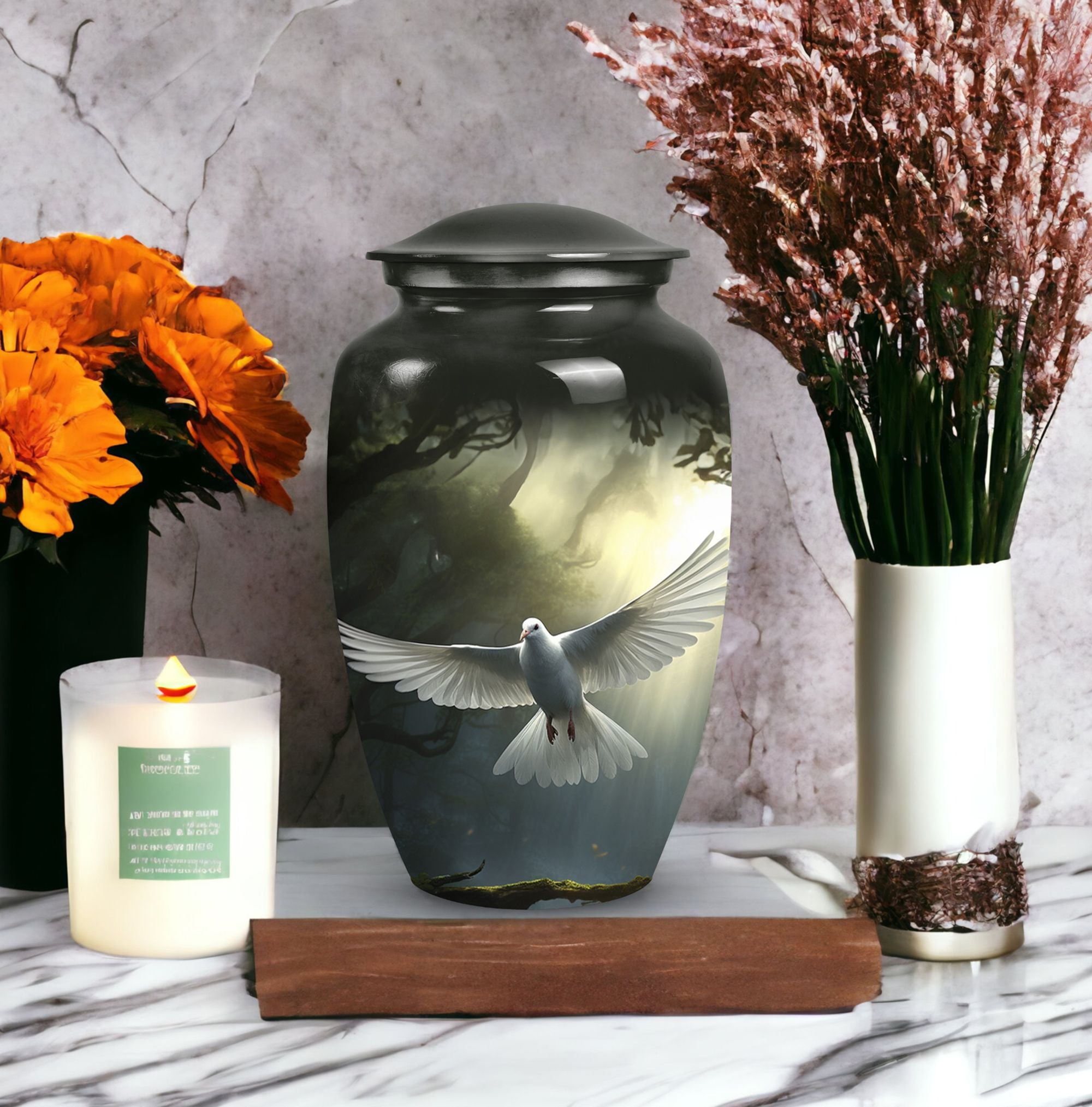 Discover solace and serenity with our Dove Urn, a touchingly unique selection from our assortment of cremation urns. Designed to honour and remember the unique spirit of a loved one, this urn encapsulates elegance and thoughtfulness, marking it as an ideal choice for both men and women. These cremation urns are more than just holds for ashes, they serve as a beautiful emblem of life and love. Crafted with utmost precision, our decorative urns can hold the ashes of an adult - making them fitting keepsakes for mothers who hold a special place in our hearts. The intricate dove etching adds a serene finish to this unique token of remembrance. Prepared for burial or for keeping on a mantle, our cremation urns cater to the needs of mourning adults and seniors, offering a tangible connection to their departed loved ones. Transform grief into a celebration of life with this symbolic piece of memorial artistry. Browse our selection today and treasure the cherished memories of your loved one forever.
