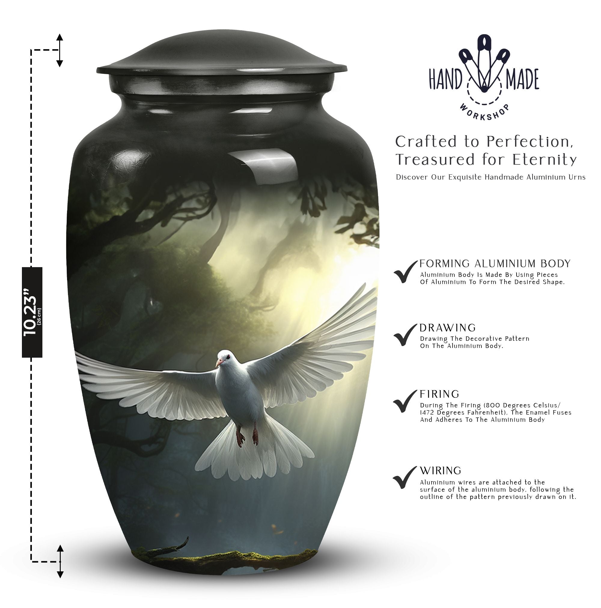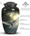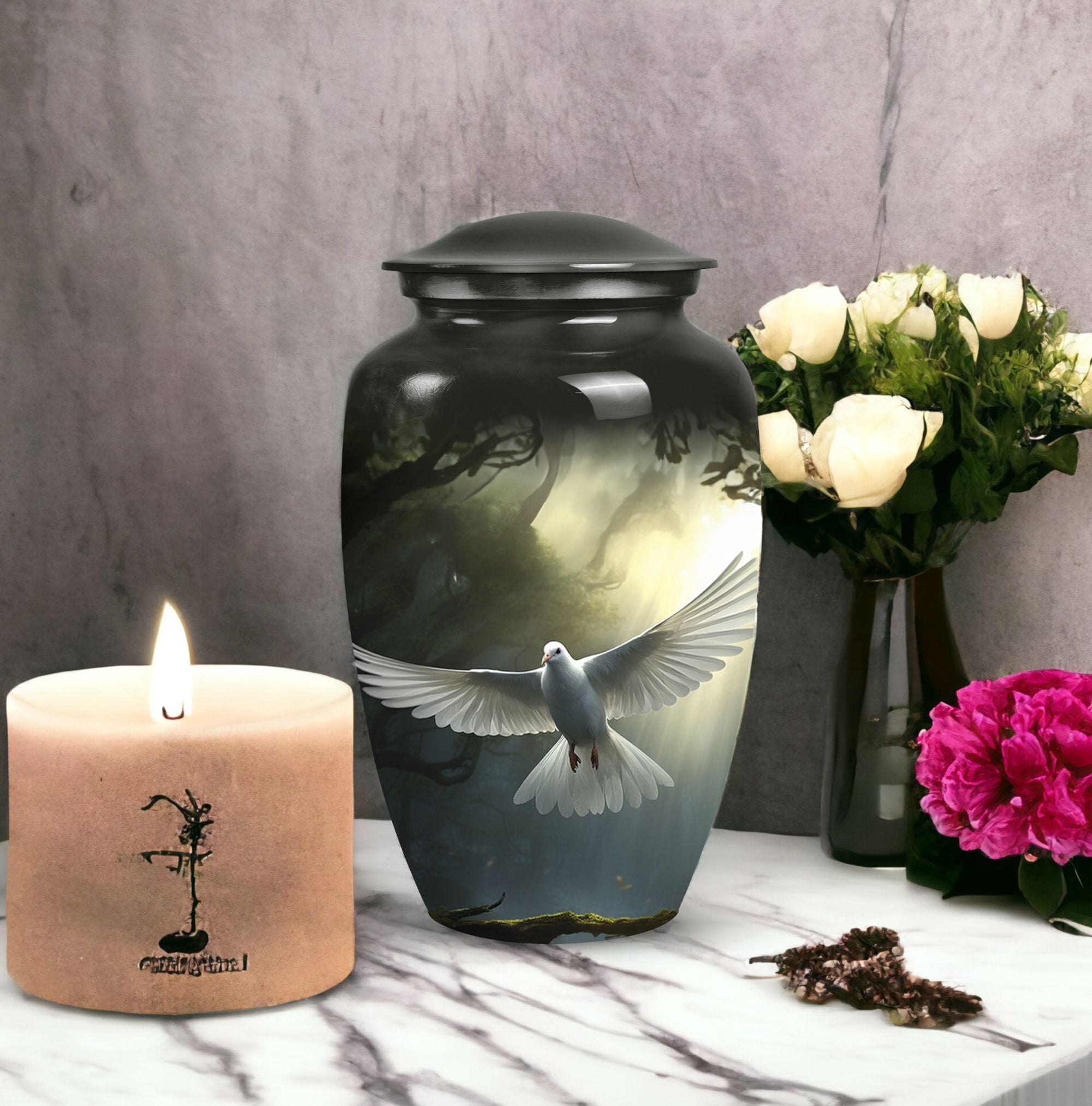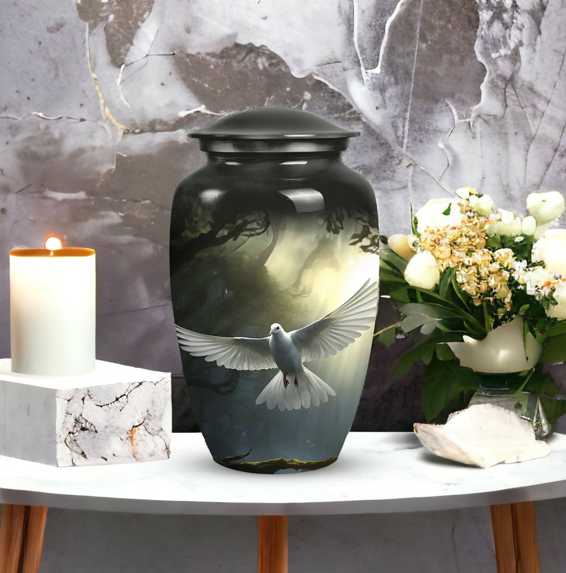 Discover solace and serenity with our Dove Urn, a touchingly unique selection from our assortment of cremation urns. Designed to honour and remember the unique spirit of a loved one, this urn encapsulates elegance and thoughtfulness, marking it as an ideal choice for both men and women. These cremation urns are more than just holds for ashes, they serve as a beautiful emblem of life and love. Crafted with utmost precision, our decorative urns can hold the ashes of an adult - making them fitting keepsakes for mothers who hold a special place in our hearts. The intricate dove etching adds a serene finish to this unique token of remembrance. Prepared for burial or for keeping on a mantle, our cremation urns cater to the needs of mourning adults and seniors, offering a tangible connection to their departed loved ones. Transform grief into a celebration of life with this symbolic piece of memorial artistry. Browse our selection today and treasure the cherished memories of your loved one forever.
