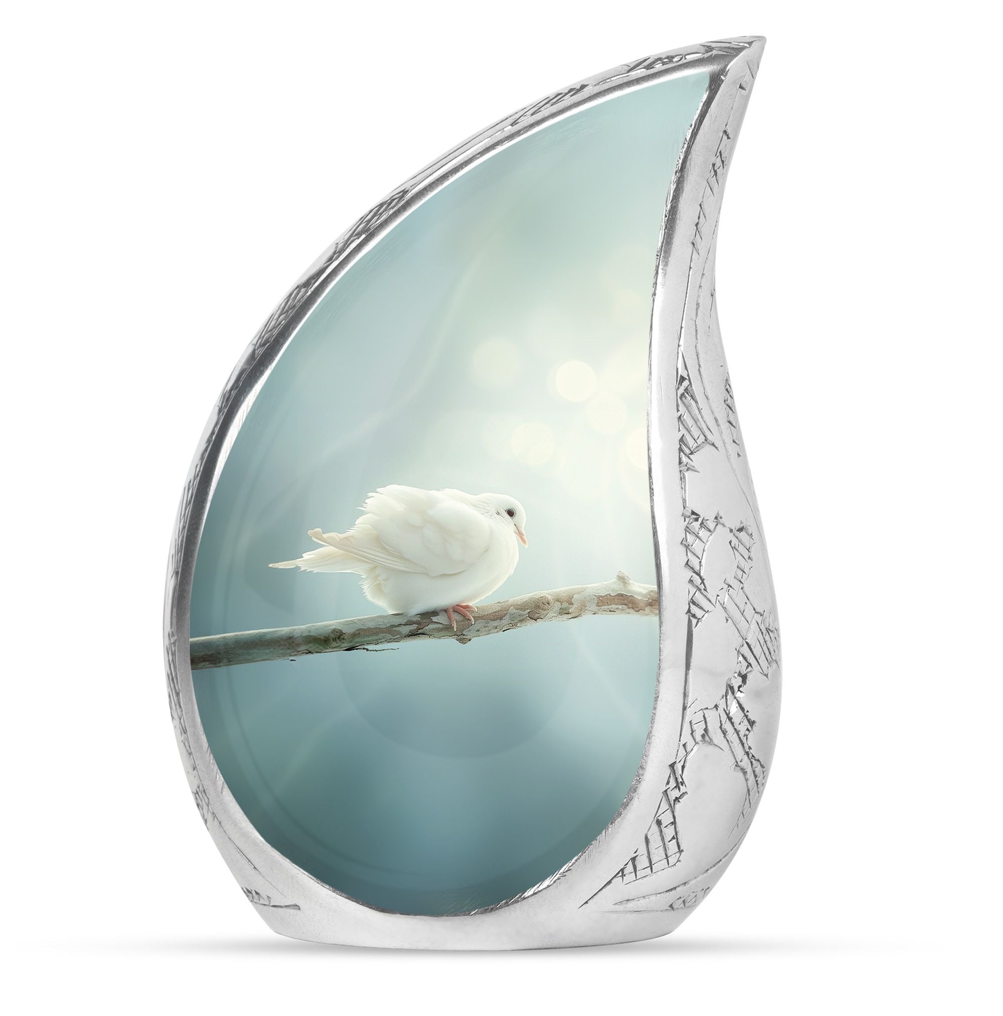 The **Dove Personalized Urn** **represents tranquility, purity, and eternal love, offering a meaningful and personalized tribute**.