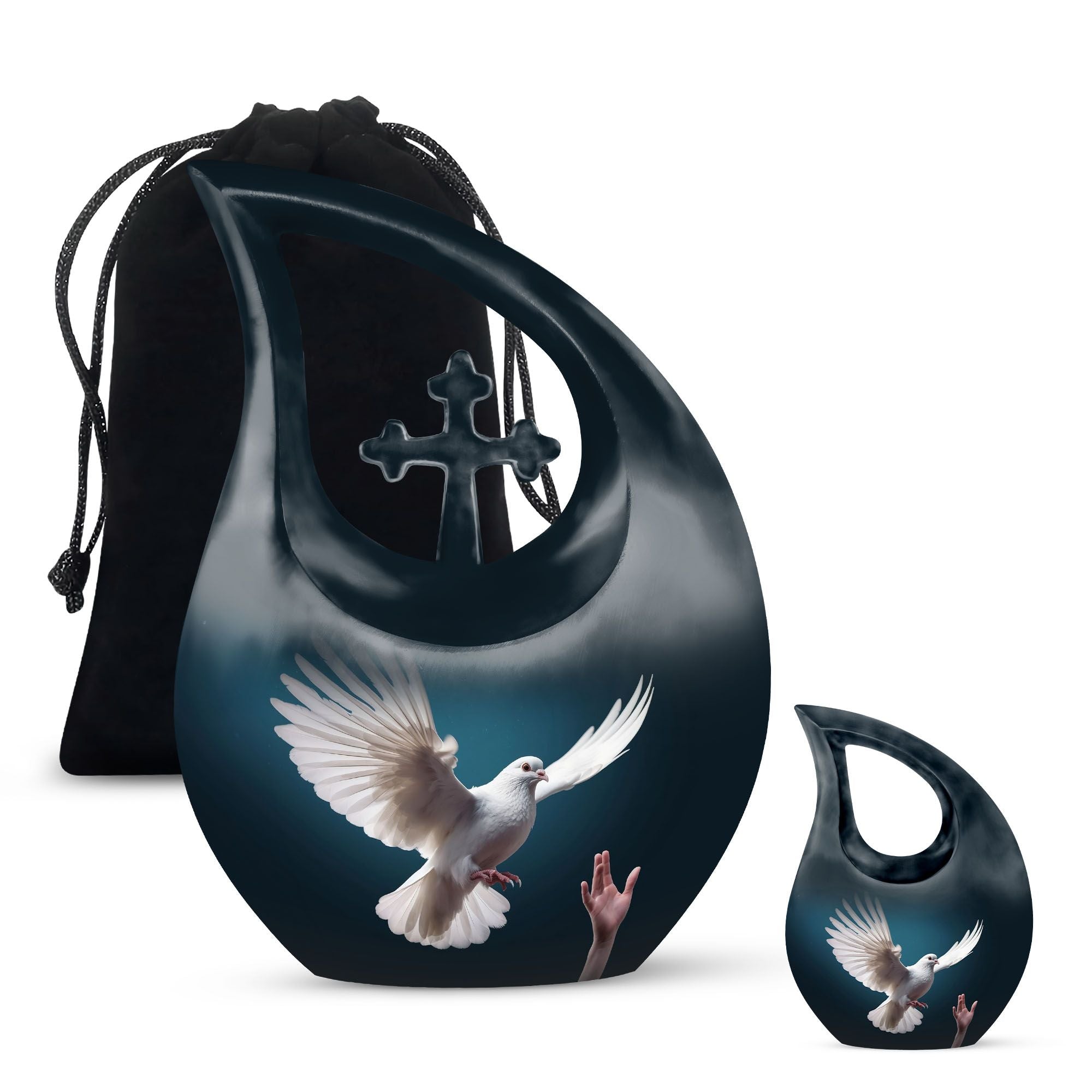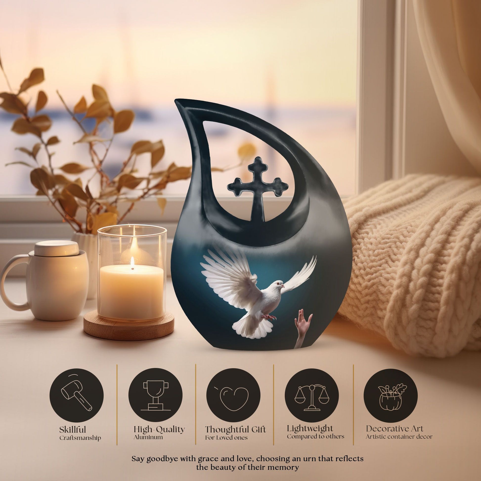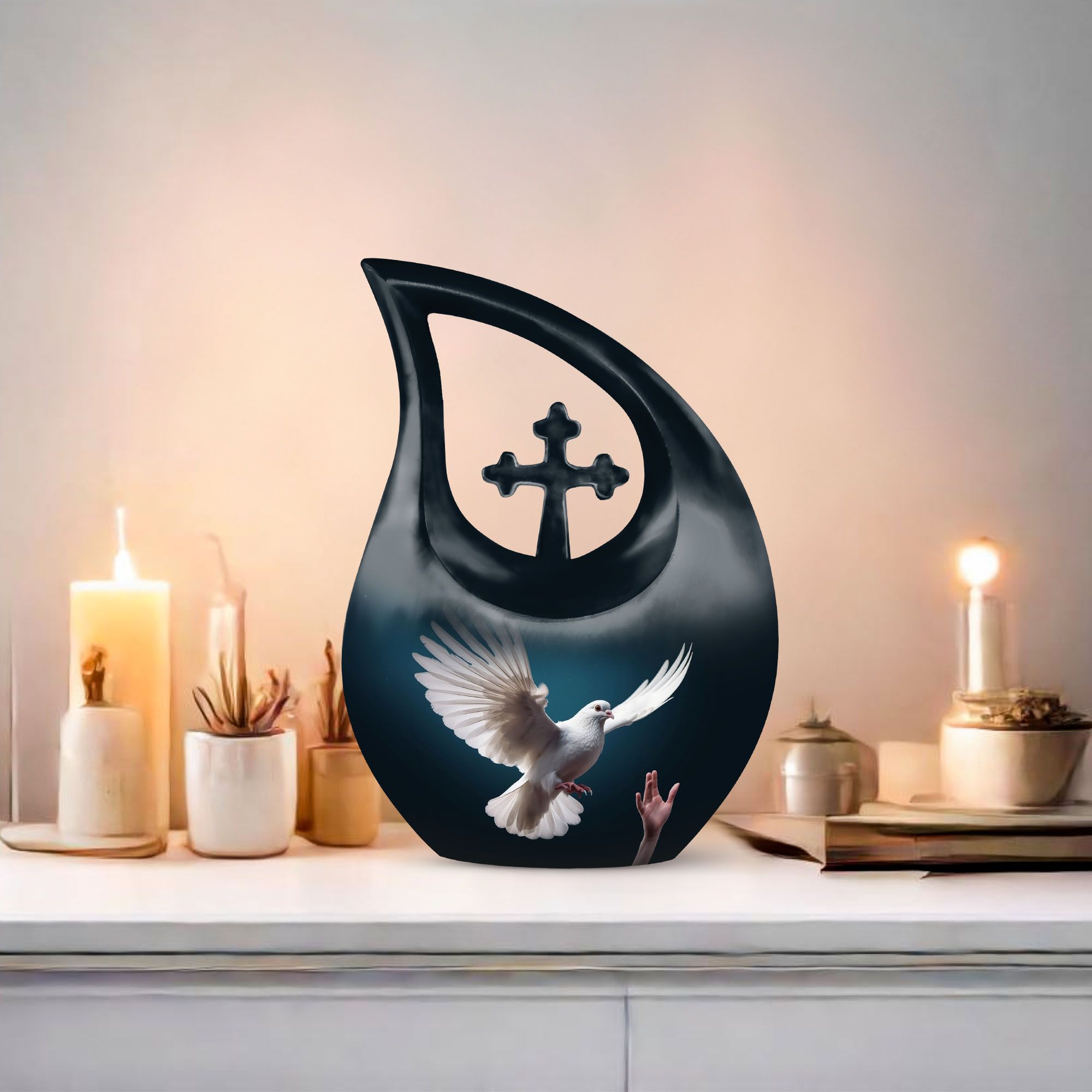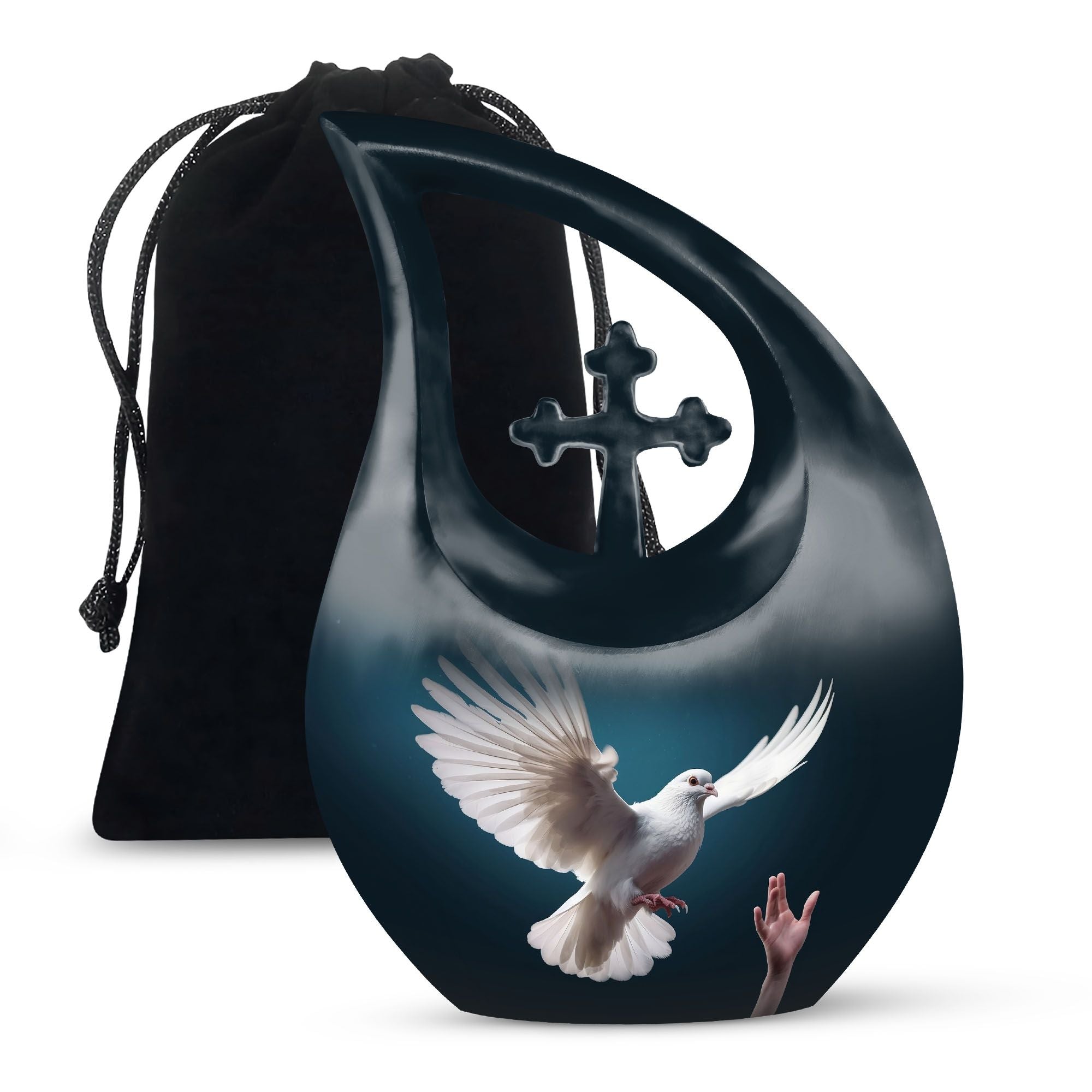Celebrate the eternal spirit of your loved one with our Black Urn for Loved Ones, a serene and meaningful tribute that represents love, purity, and everlasting peace. Featuring a graceful white dove — a universal symbol of hope and eternal rest — this urn is perfect for families seeking large adult urns for human ashes that bring both elegance and comfort.