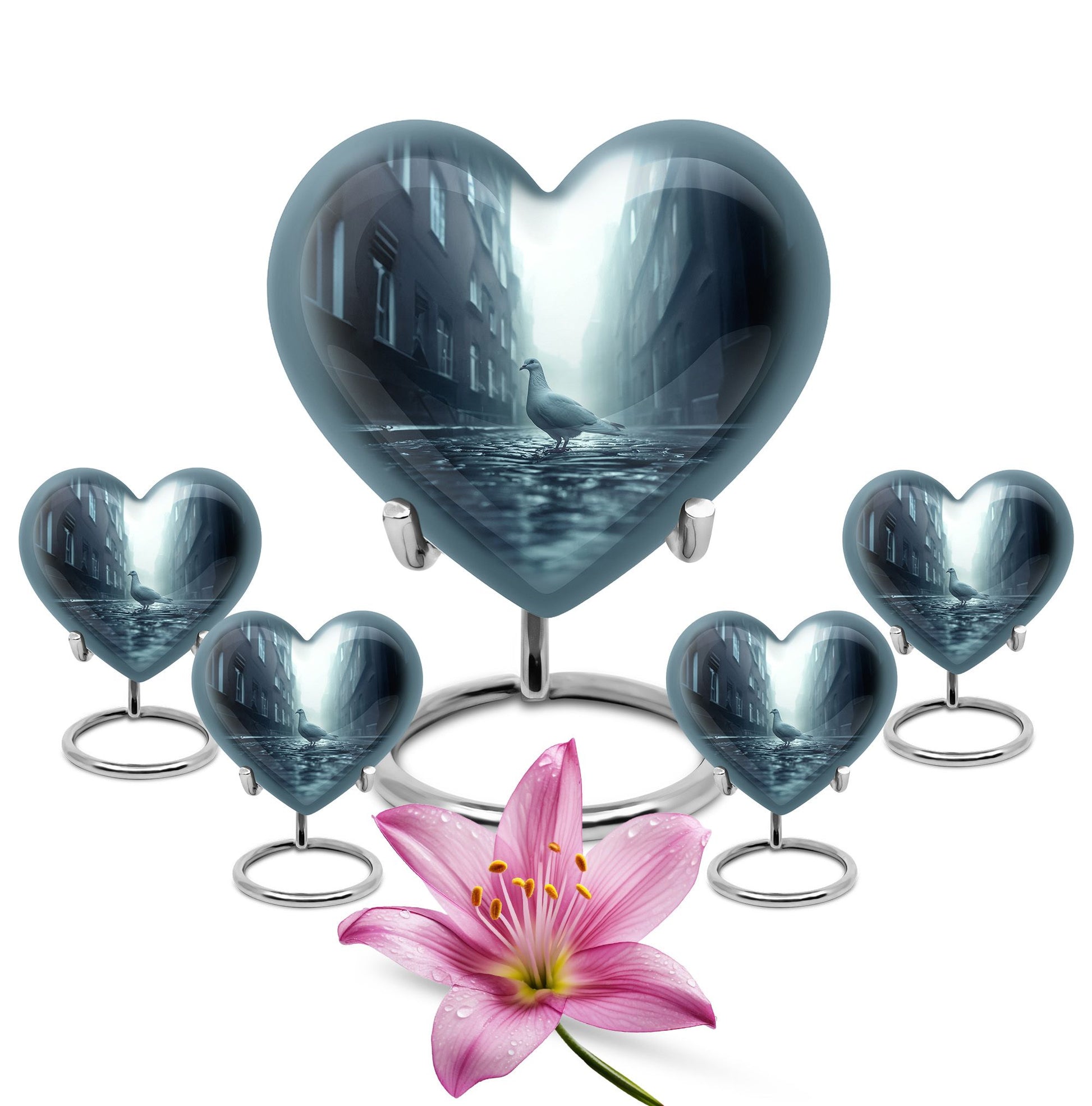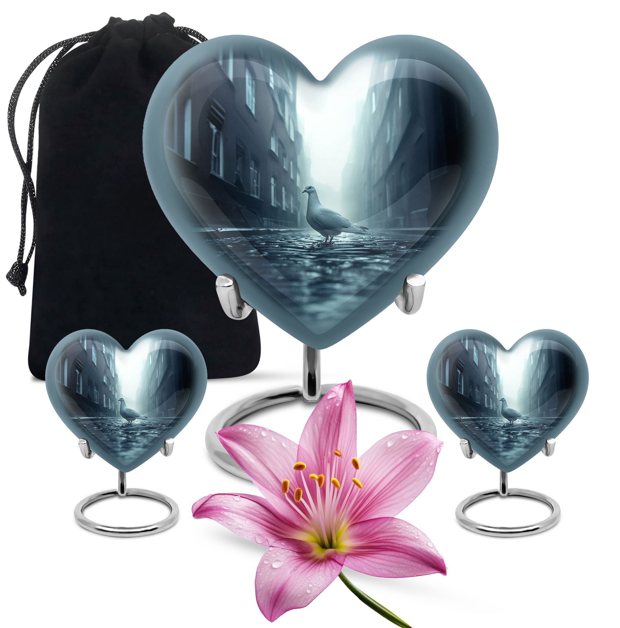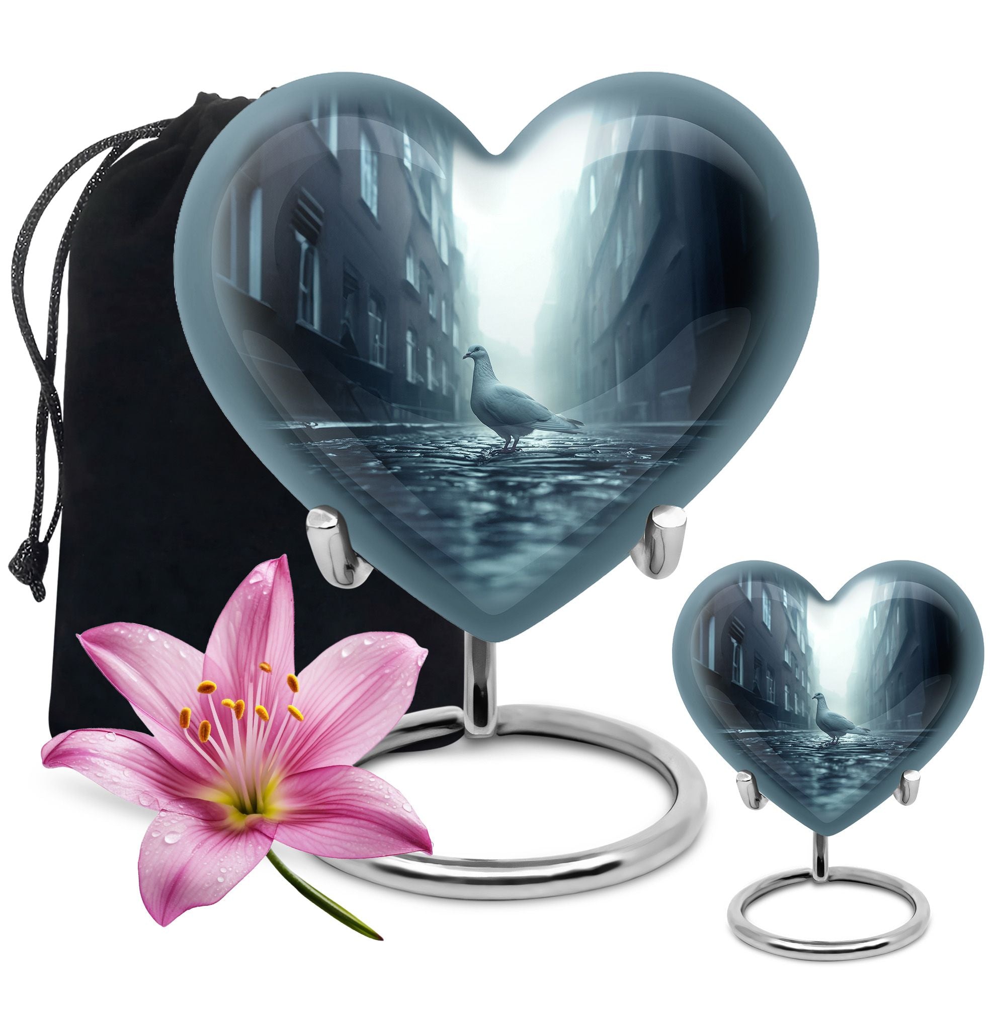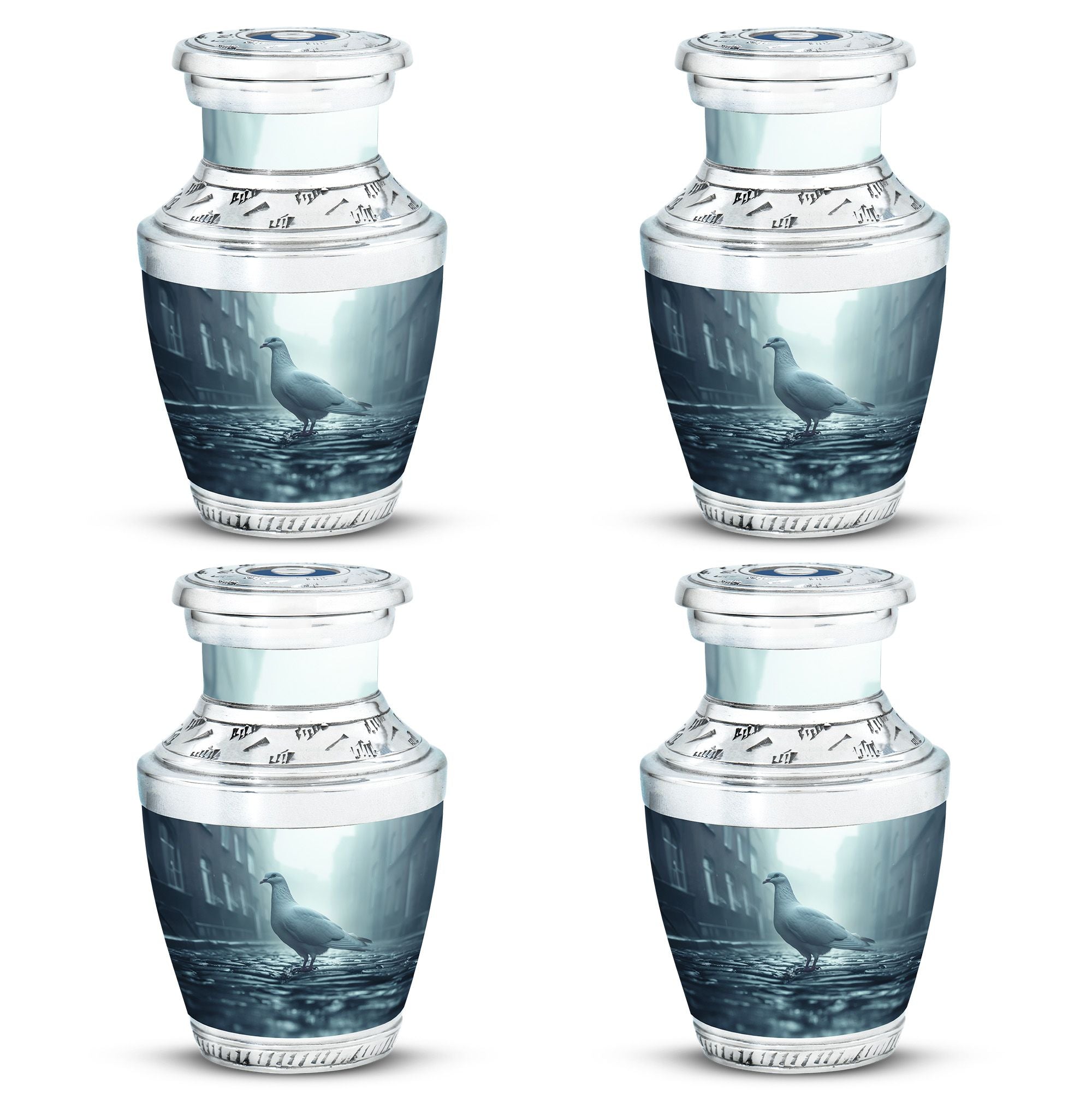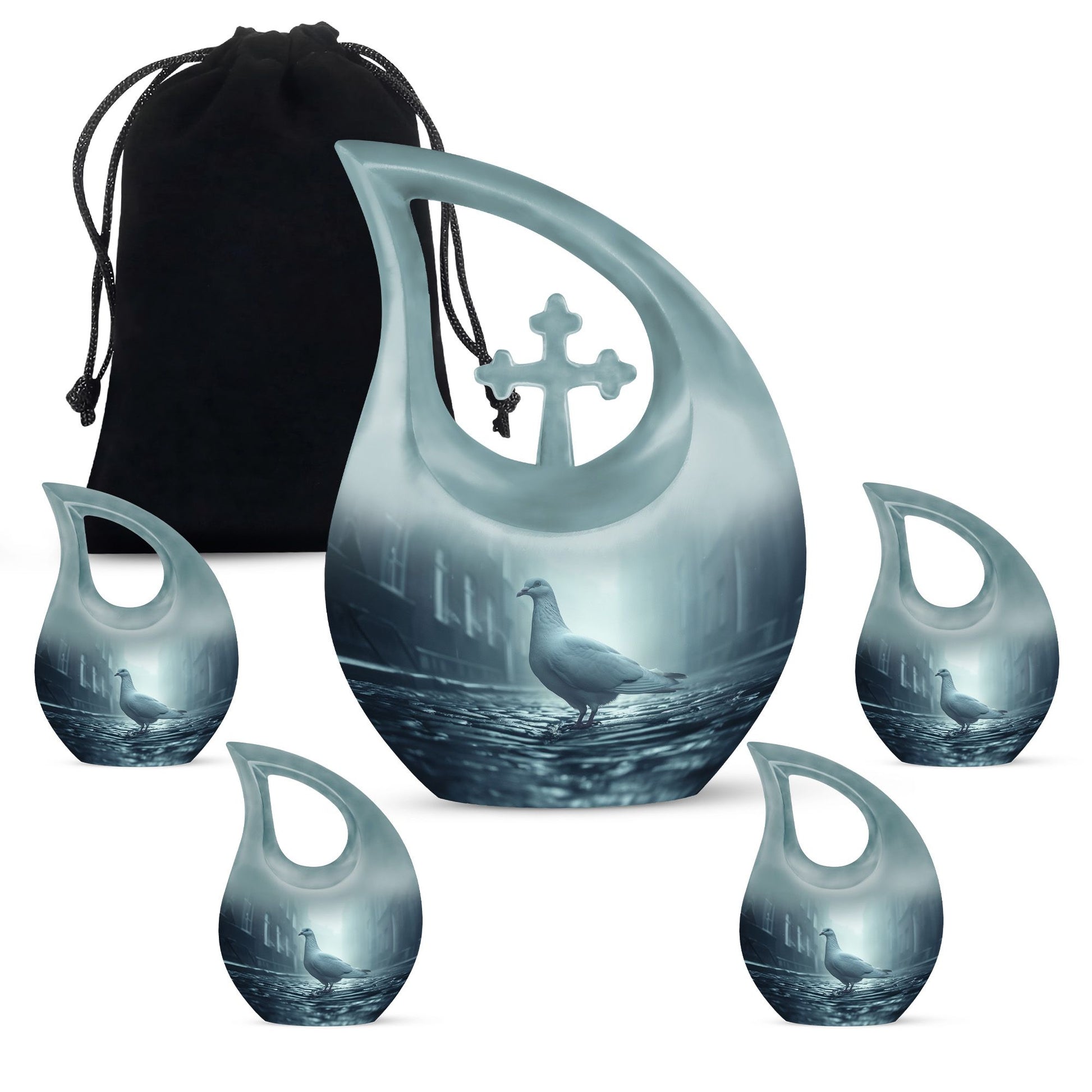 Crafted from durable aluminium, this mini urn blends elegant artistry with lasting strength. Its secure screw-top lid and 10-inch height with 200-cubic-inch capacity make it suitable as a small cremation urns for human ashes adult, adult size cremation urns, or urn for cremation. The graceful white dove motif symbolizes peace and remembrance, making it perfect for both display and intimate memorials, and also suitable as mini cremation urns or urns cremation.
