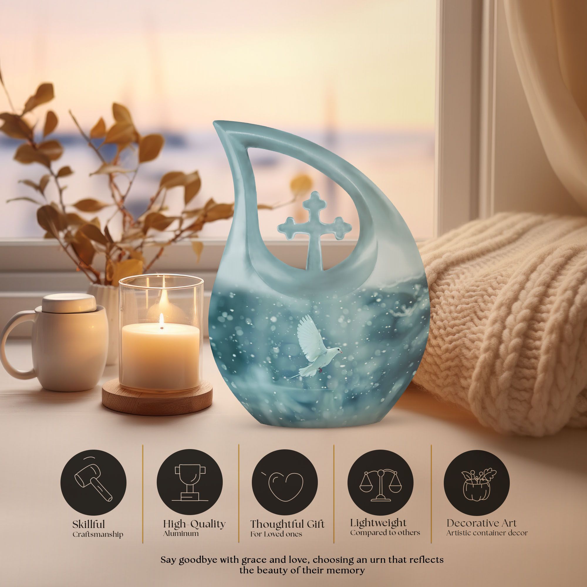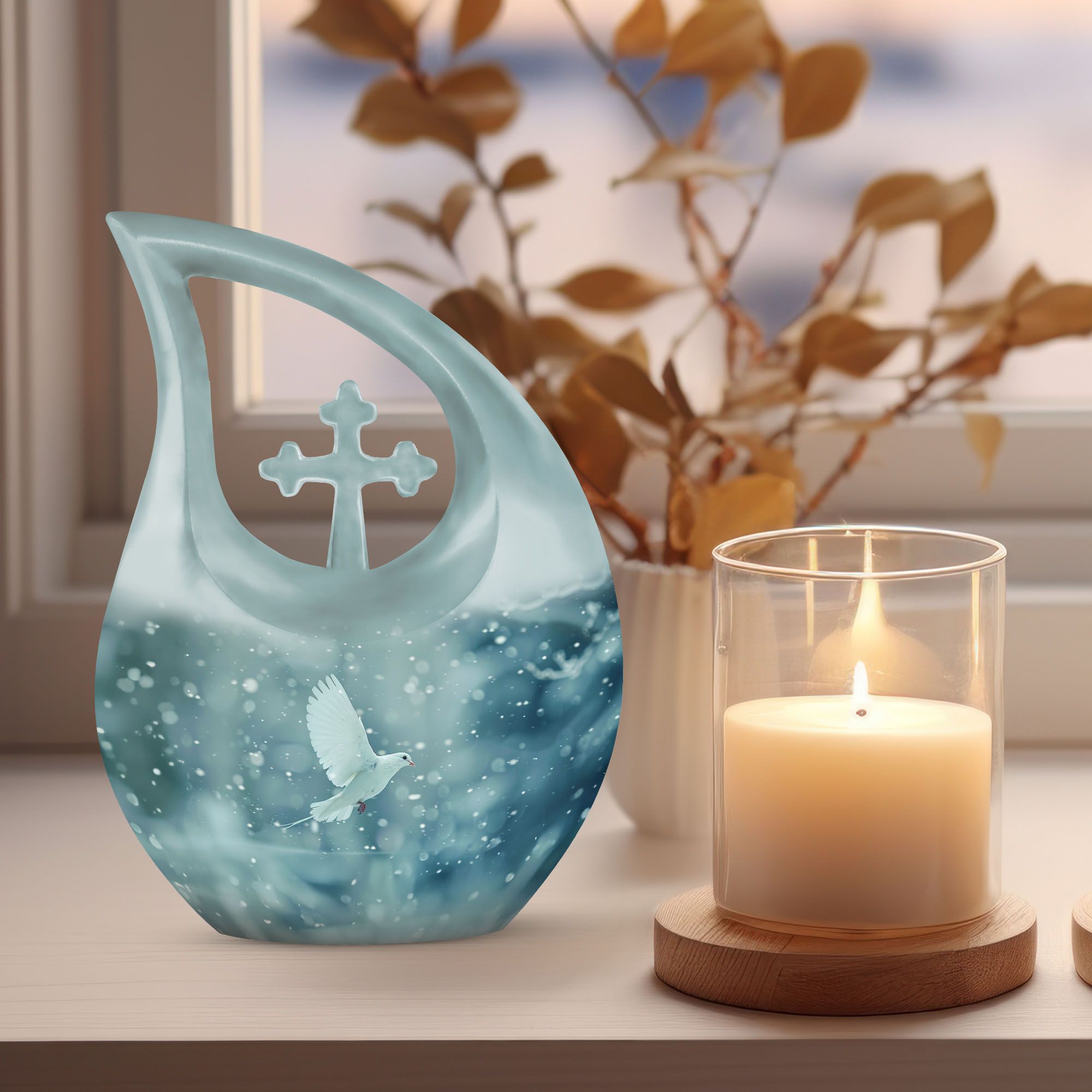 A symbol of purity and eternal peace, this funeral cremation urn stands as a timeless reminder that love continues beyond the horizon — a truly meaningful memorial urn for every family.