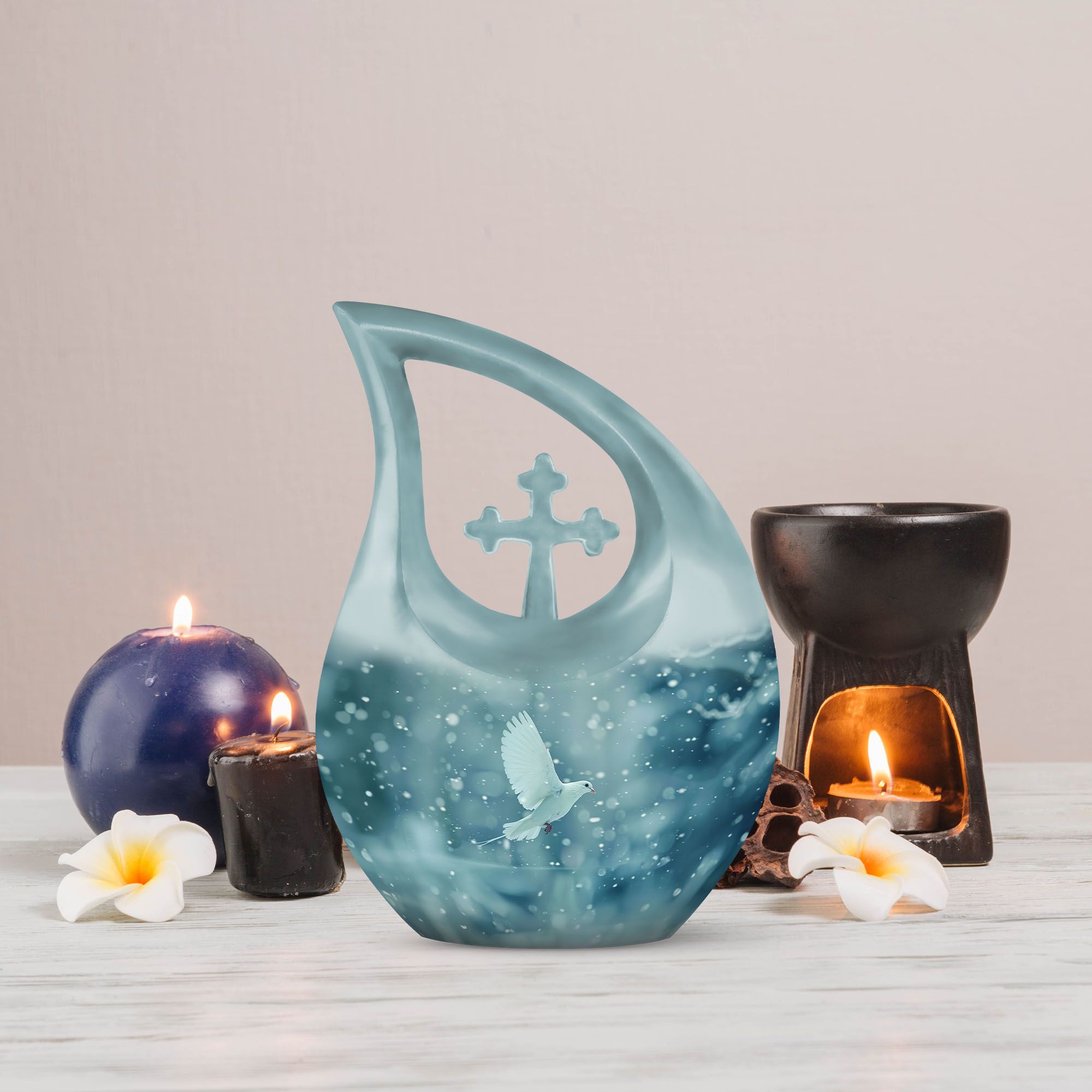 Honor cherished memories with the White Dove in Snow Fall Urn, a serene tribute symbolizing peace, purity, and eternal love. This funeral urn reflects hope and remembrance, offering families a comforting way to celebrate life. Ideal for both men and women, this funeral urn – memorial urn brings gentle elegance to any remembrance ceremony or home display.