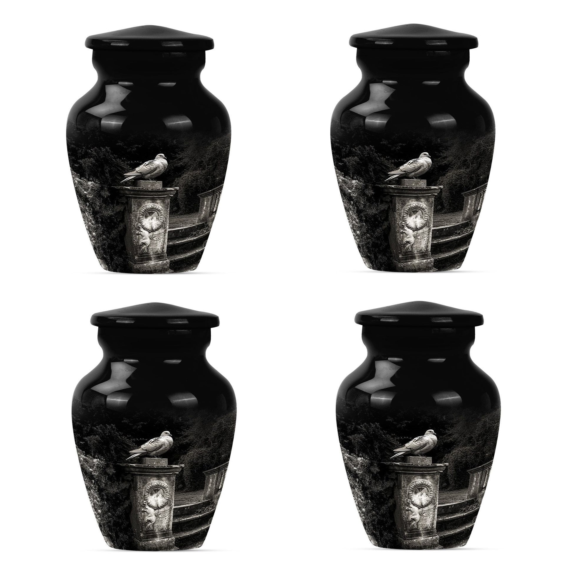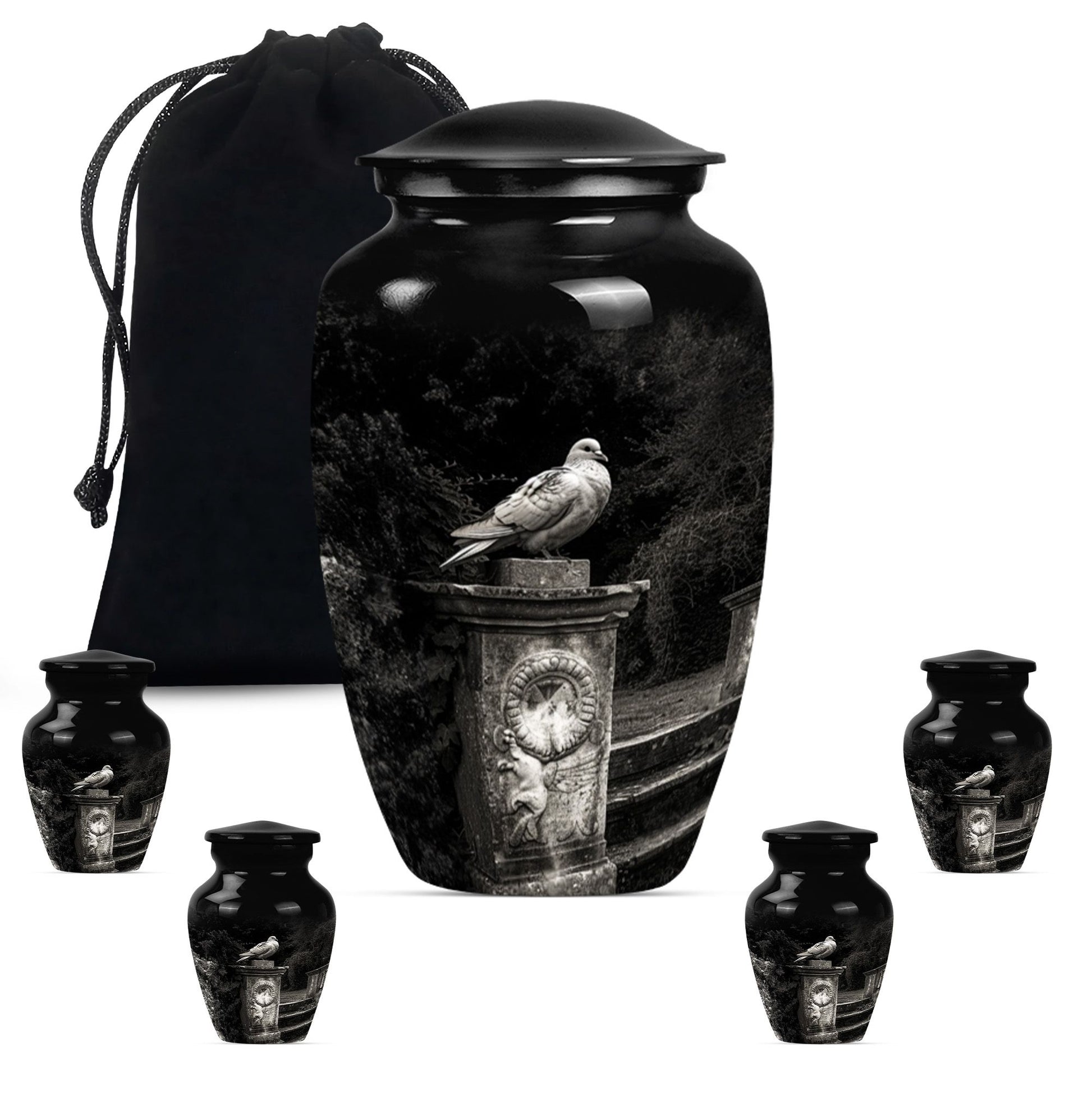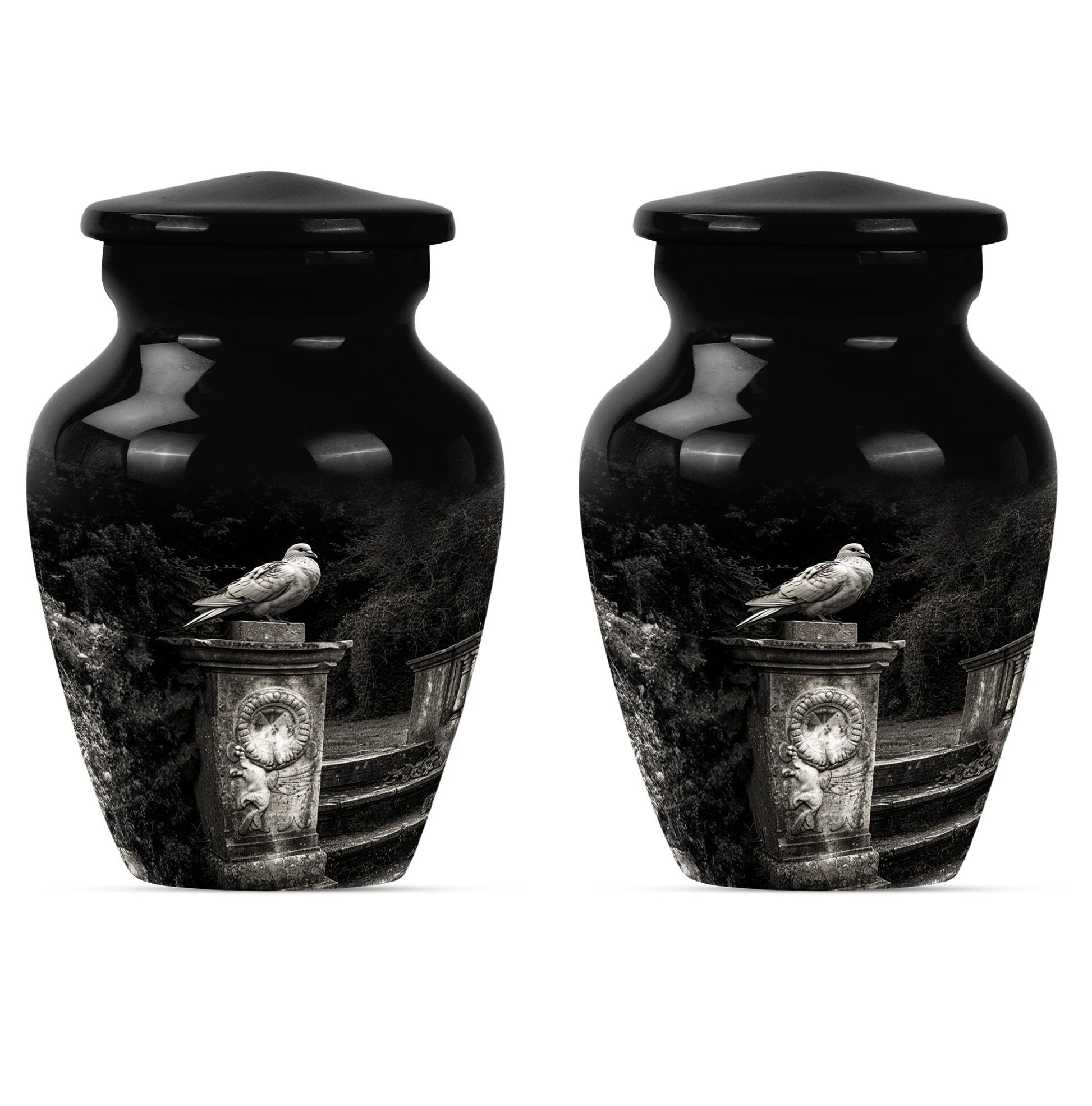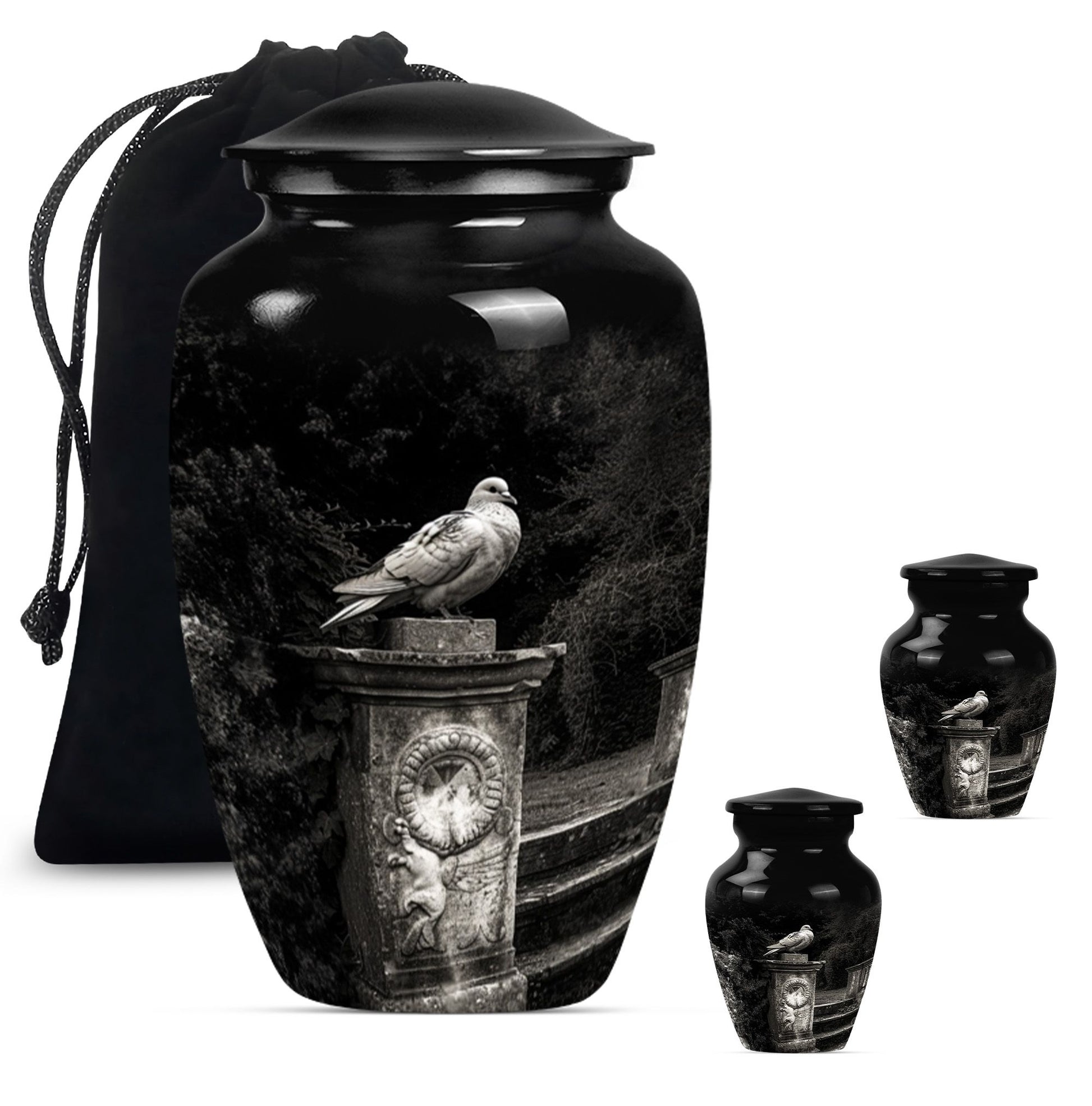 Enable peaceful rest for your beloved with our 10 Inch Dove Urn, a paramount pick from our range of large urns. Crafted meticulously from top-quality aluminium, this cremation urn presents an ethereal 'Purple Meadow' theme that radiates an air of serene tranquility. Balancing robustness and aesthetic charm, it weighs 3.3 pounds, a testament of its sturdy construction. With a capacity of 200 cubic inches, it offers sufficient containment for ashes, catering to diverse needs. Personalize this dove urn as you see fit. The package also includes a velvet pouch, providing a discreet and tasteful holder for the cremains. Ideal for mom or dad, this urn for human ashes features a cross design, signifying an eternal rest for your loved ones. It's a beautiful homage for those seeking memorial urns or burial urns that evoke love, loss, and remembrance with dignity and respect.