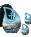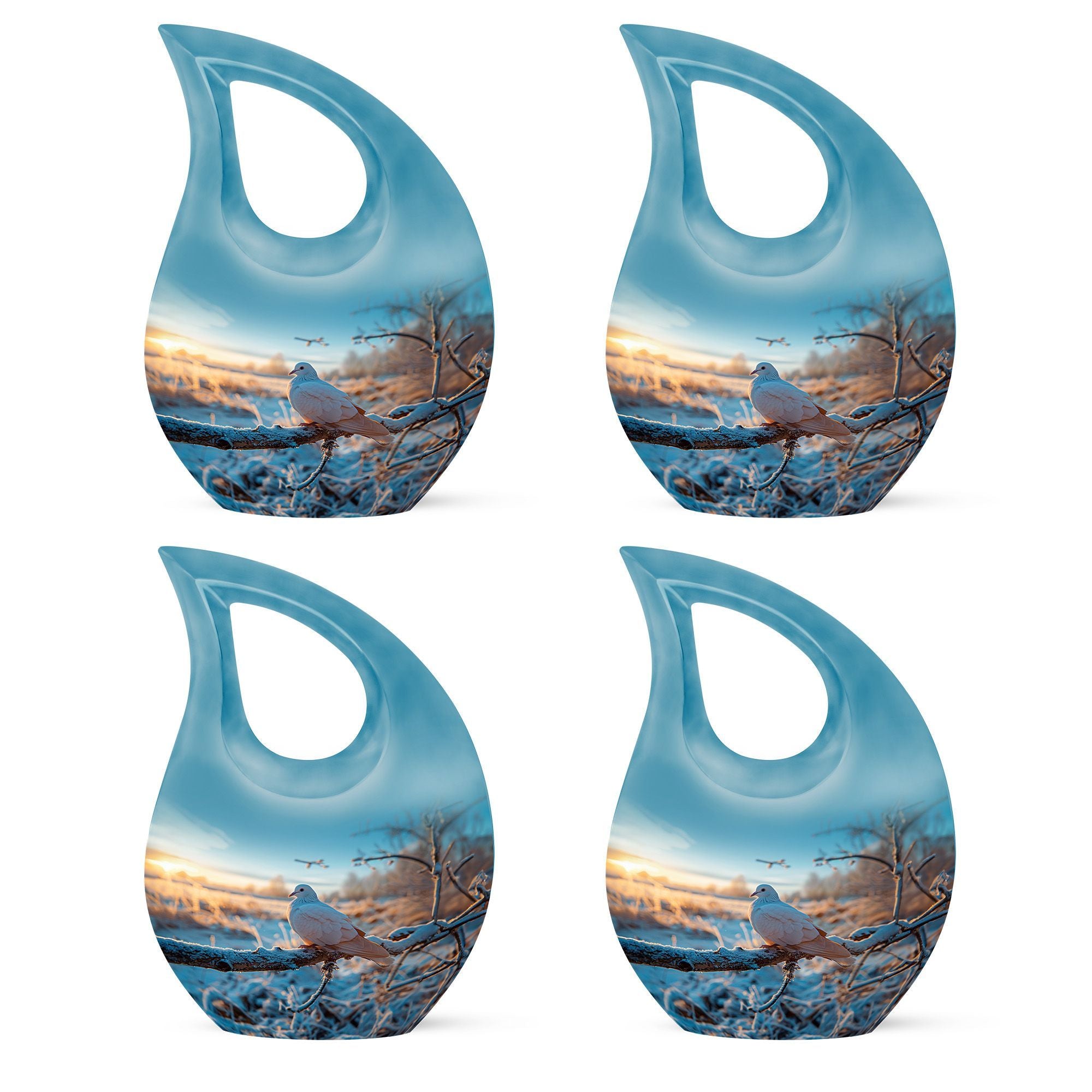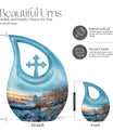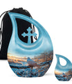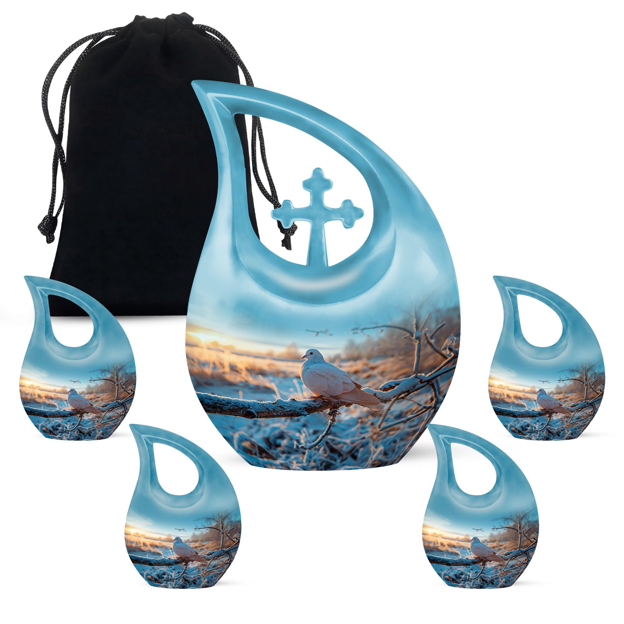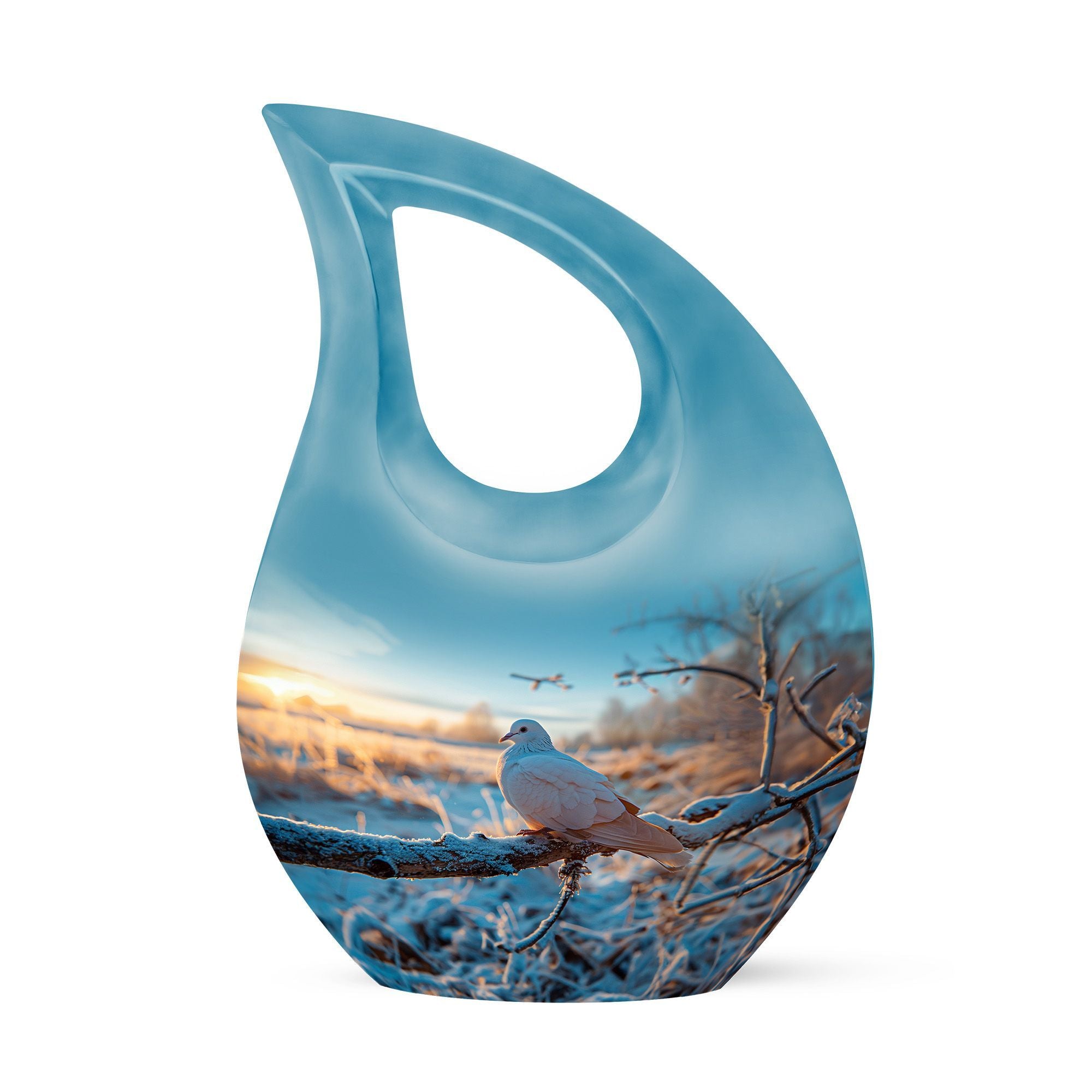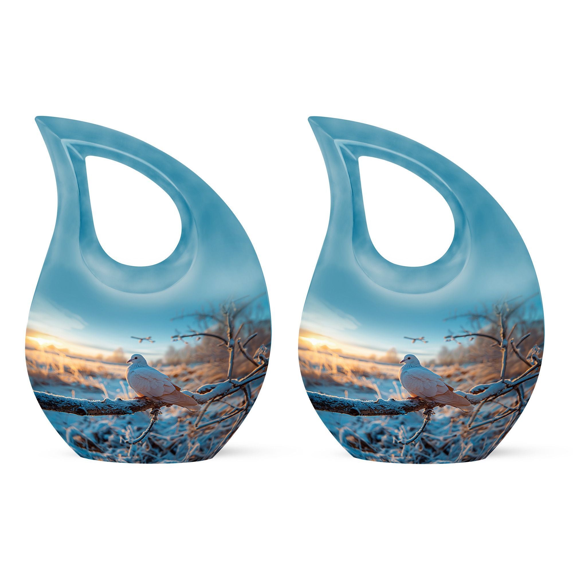 Commemorate your loved ones with this heartfelt Dove Urn, an essential part of Memorial Ceremony Supplies. A tangible symbol of love and memory, every detail of this Urn For Human Ashes speaks to its craftsmanship. Expertly fashioned from robust and beautiful Aluminium, this 10-Inch Large Urn stands as a testament to the dignity and respect we bestow upon our cherished ones. The exquisite Cross Drop theme gives the urn an air of spiritual serenity that smoothly aligns with the Dove, a universal symbol of peace. The urn has a capacity of up to 200 cubic inches, making it ideal for most adult ashes. Weighing a solid 3.3 pounds and with dimensions locked at an ideal 10 inches in height, this urn possesses the perfect balance between visual appeal and practical storage. The package also comes with a velvet pouch, which provides a dignified containment of the ashes. Add a touch of personal sentiment with the option to personalize the urn with engraved names, making each urn a unique keepsake. This urn can also be found under search terms such as Pink Urns For Human Ashes, Urn For Mom, Butterfly Urns For Ashes and Angel Urn. This describes the sense of sacred beauty and tranquility this urn brings to any memorial ceremony.