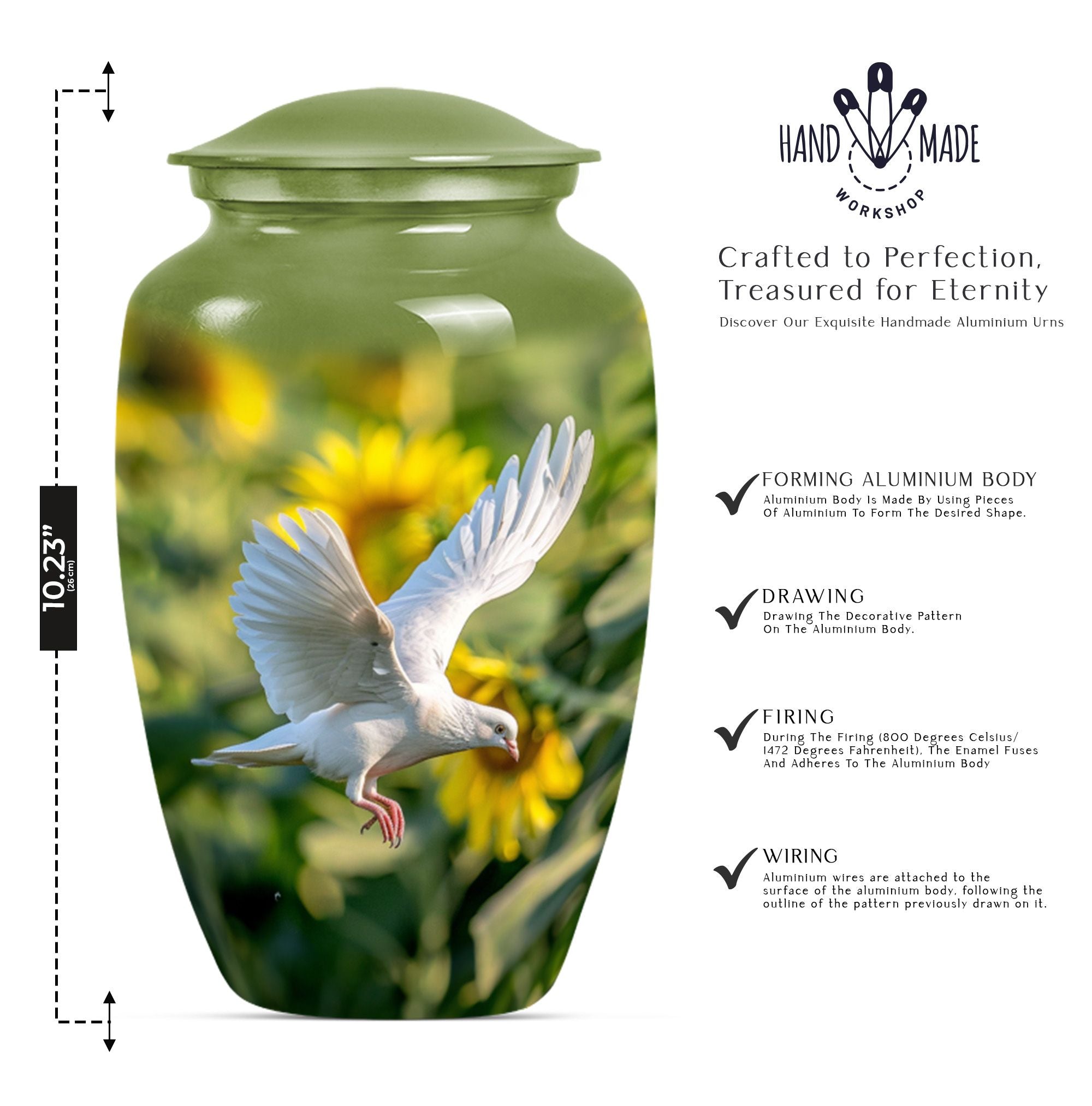 Celebrate and honor the cherished memories of your loved one with this White Flying Dove cremation urn, thoughtfully designed as an urn ashes for women. Its serene and elegant design makes it ideal for anyone seeking beautiful urns women can treasure forever.