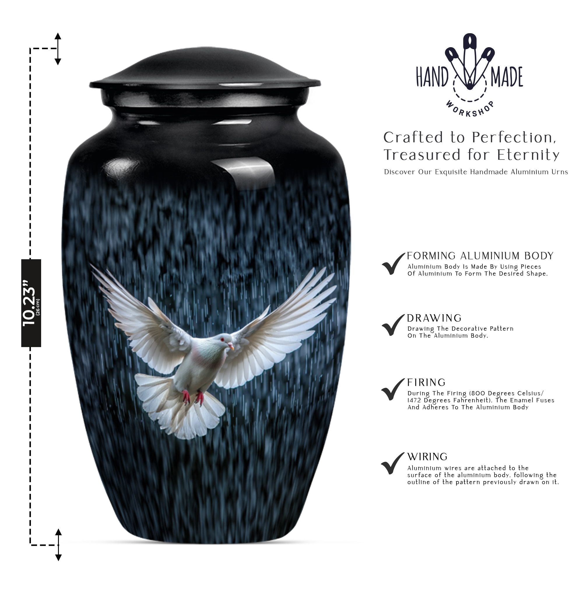 Expertly crafted from high-quality aluminium, the Flying Dove Urn showcases a timeless design that complements any home or memorial space. Its refined finish and thoughtful details make it ideal as both a urn for ashes adult male or adult urns for women, offering practicality and elegance. Whether displayed at home or placed in a memorial setting, this urn embodies both style and reverence.