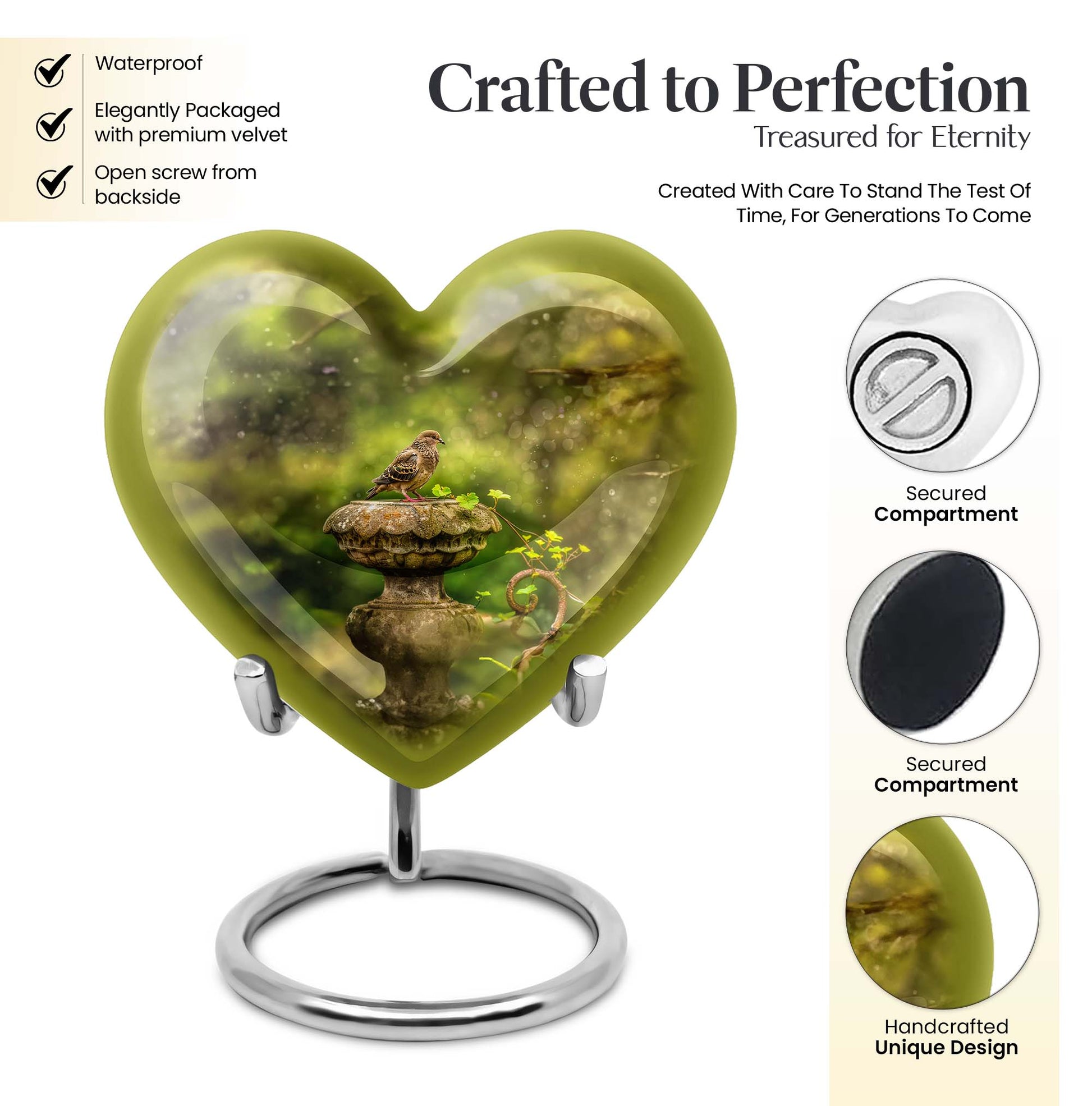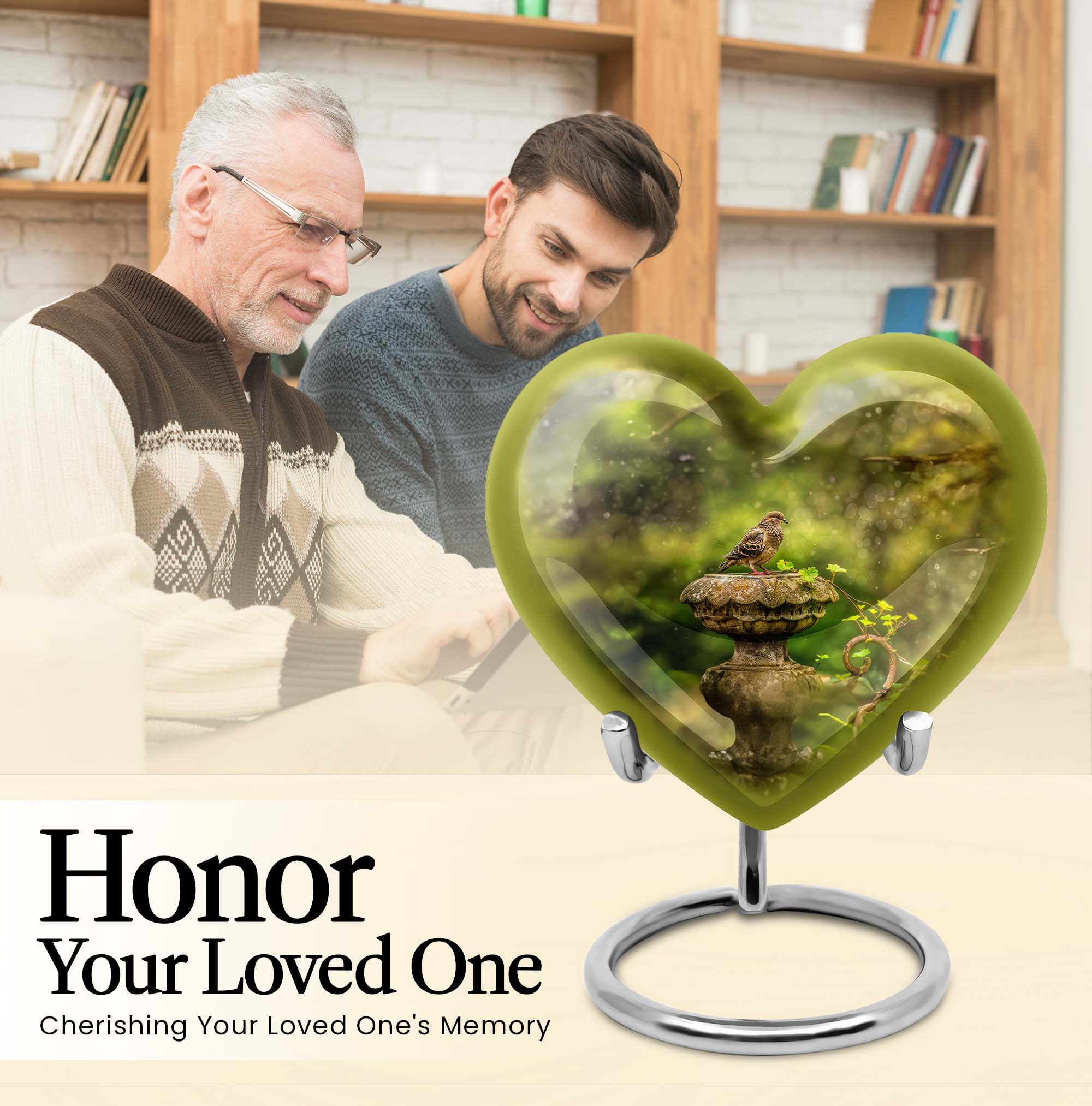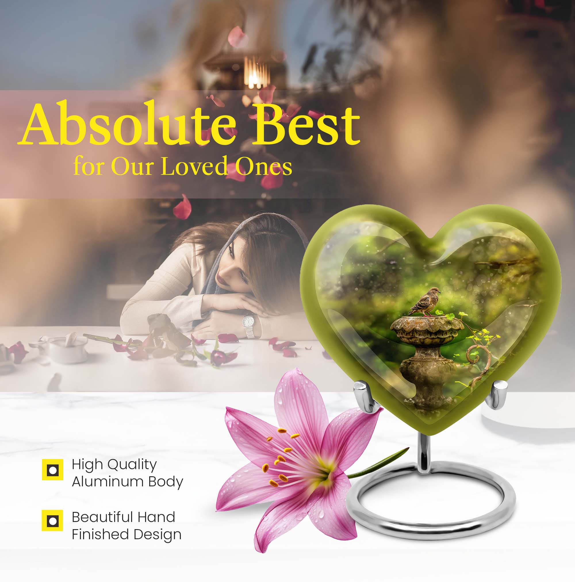 Pausing for a moment to remember the one you've lost can provide a sense of peace and closure. With this dove urn, you get a vessel that gives tribute to the departed's spirit and elegance. Our 10-inch large urn, tastefully finished with the theme of Purple Meadow, conveys a sense of tranquility and remembrance. Crafted from sturdy aluminium and weighing a gentle 3.3 pounds, the urn promises longevity. Its capacity, at 200 cubic inches, ensures adequate space for ashes. To further personalize your memorial, you can engrave names on the urn, making it an even more heartfelt homage. Moreover, each urn comes with a soft velvet pouch for dignified containment of ashes. Ideal for ground burial, this memorial urn for women ashes — a carefully constructed haven for your cherished memories — serves as a reminder of love, a symbol of respect. This product, utilizing the primary keywords of 'dove Urn' and 'urns for human ashes,' may be discovered using 'women urns,' 'Urn for Ground Burial,' and other similar search terms.