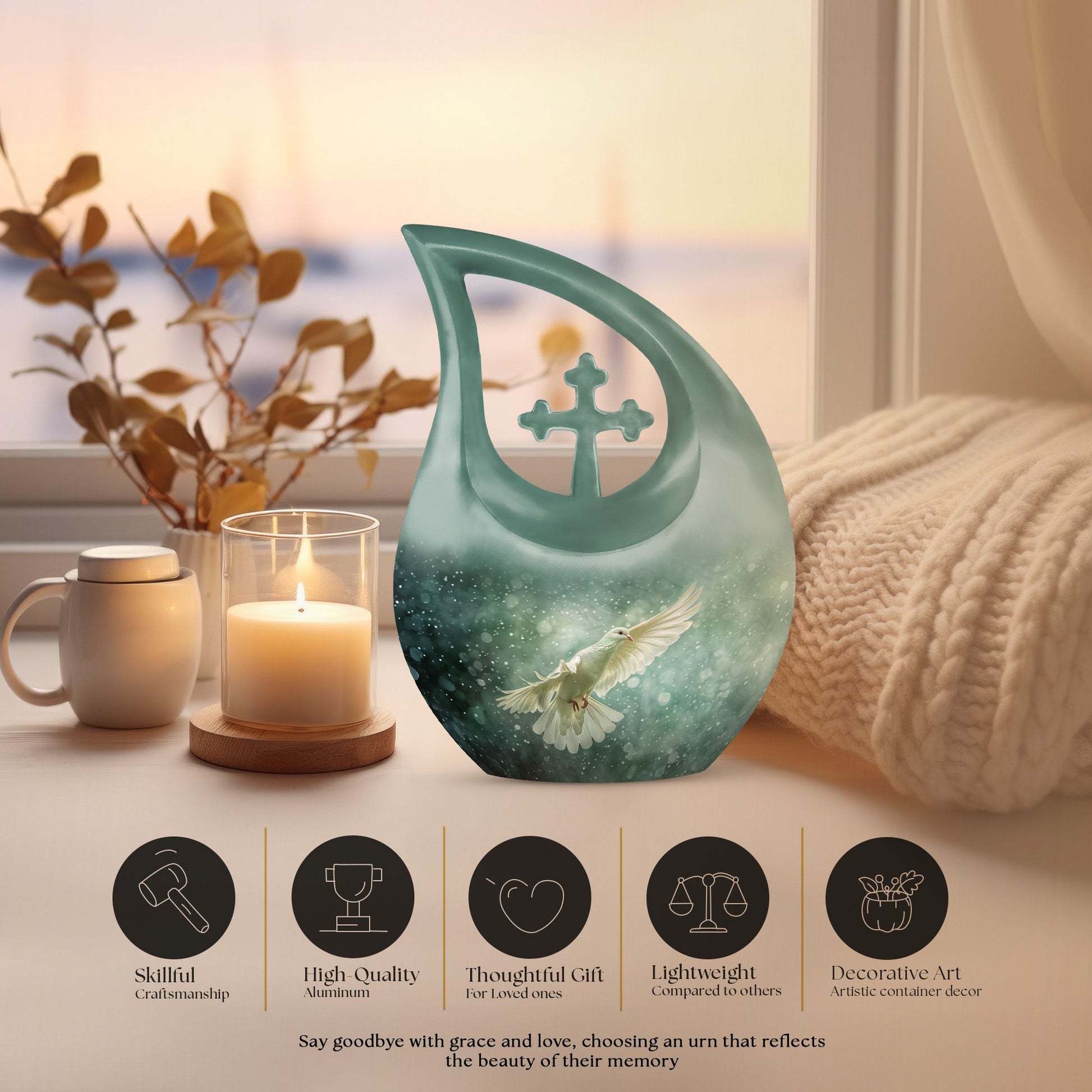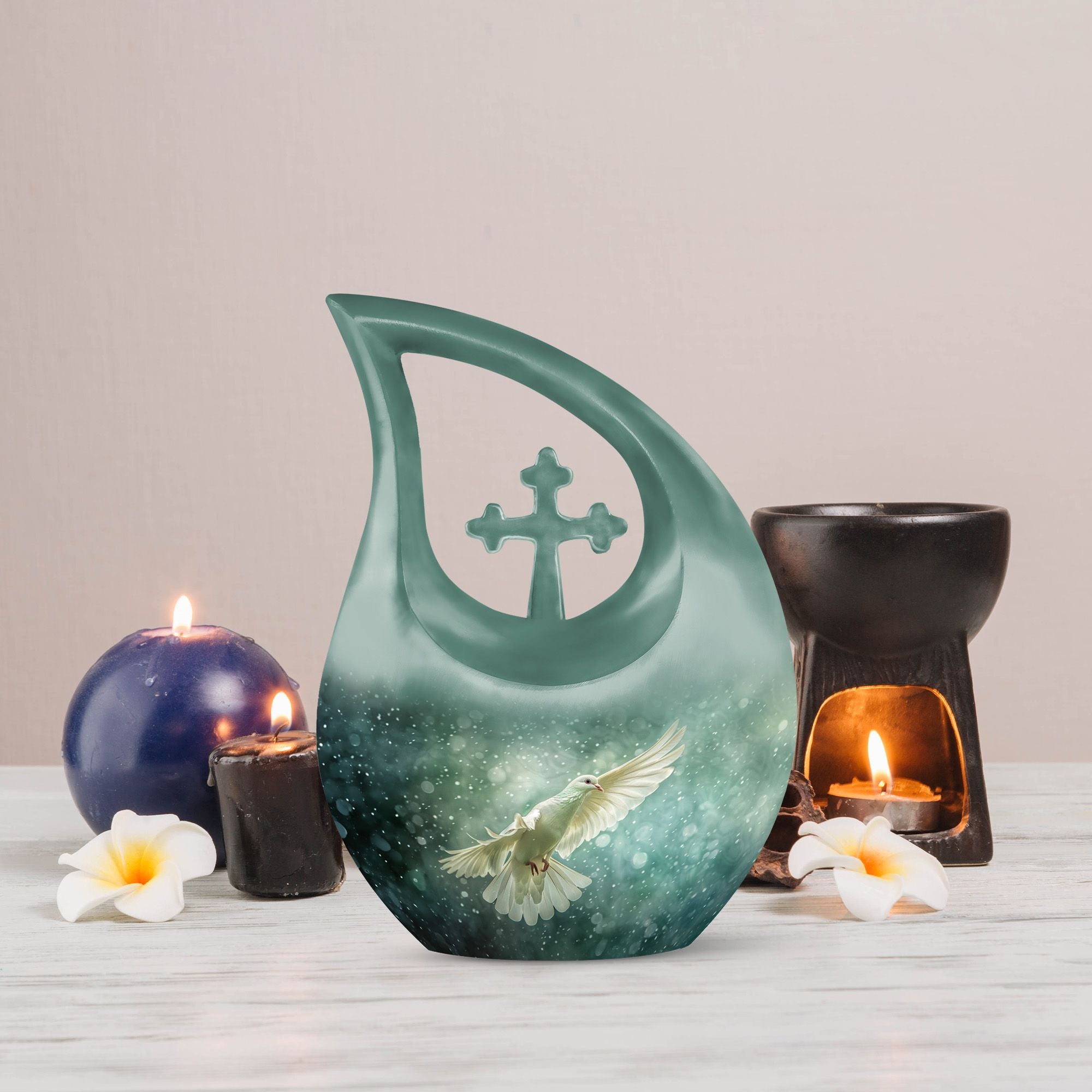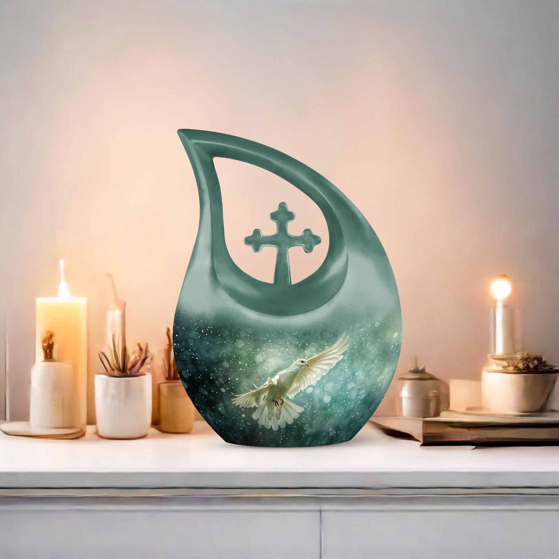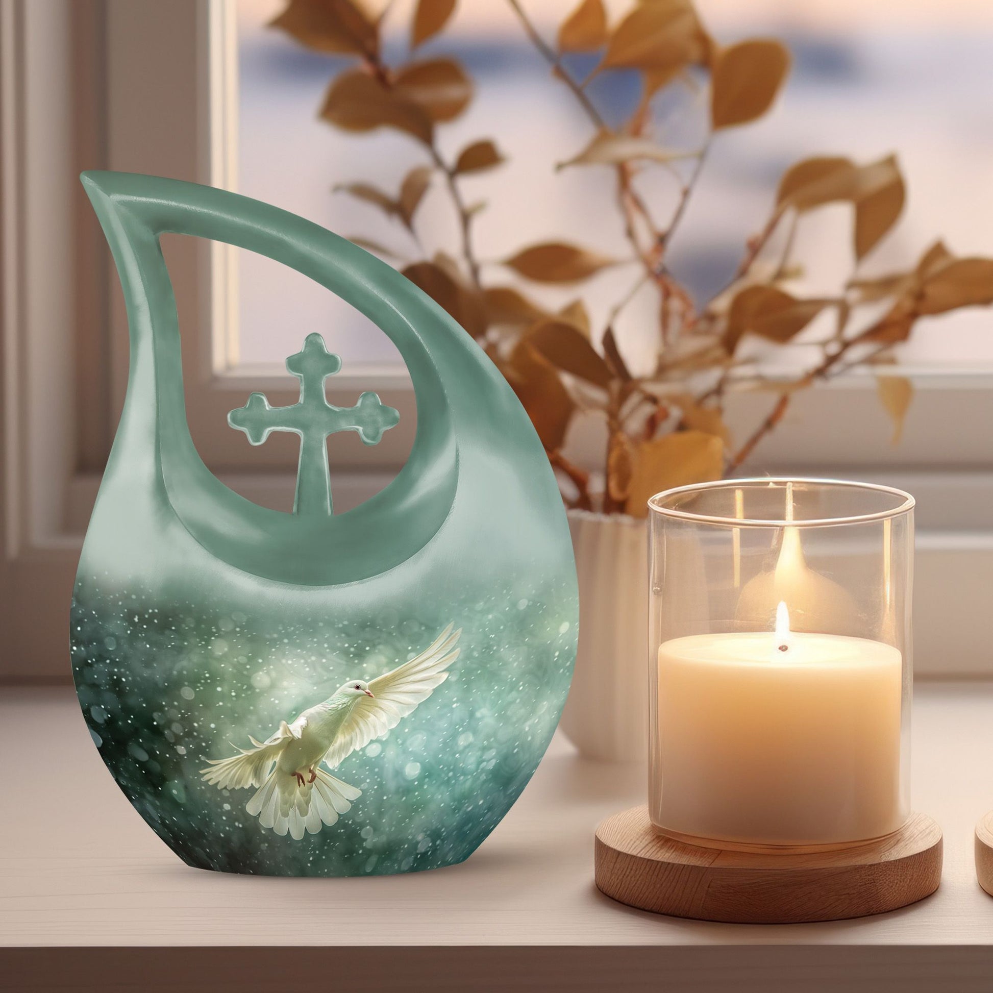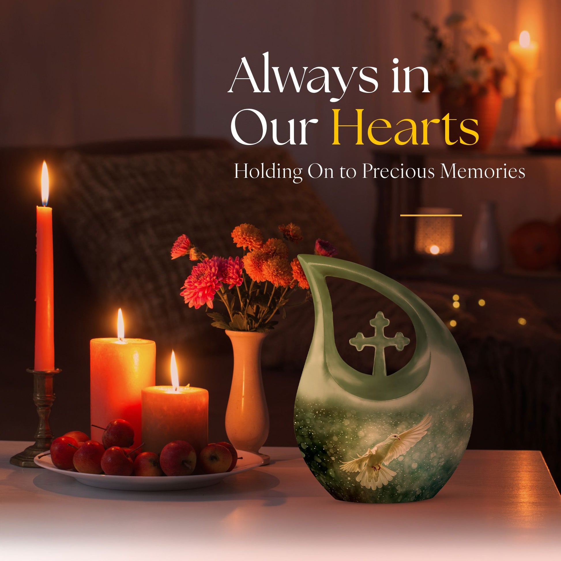 The White Dove Memorial Urn offers a peaceful and comforting tribute for families honoring Mom, Dad, or any loved one. Its soft dove imagery symbolizes hope and eternal love, making it a meaningful choice for those seeking funeral urns for human ashes small, a timeless funeral ashes urn, or a gentle funeral urn that brings serenity to any memorial setting.
