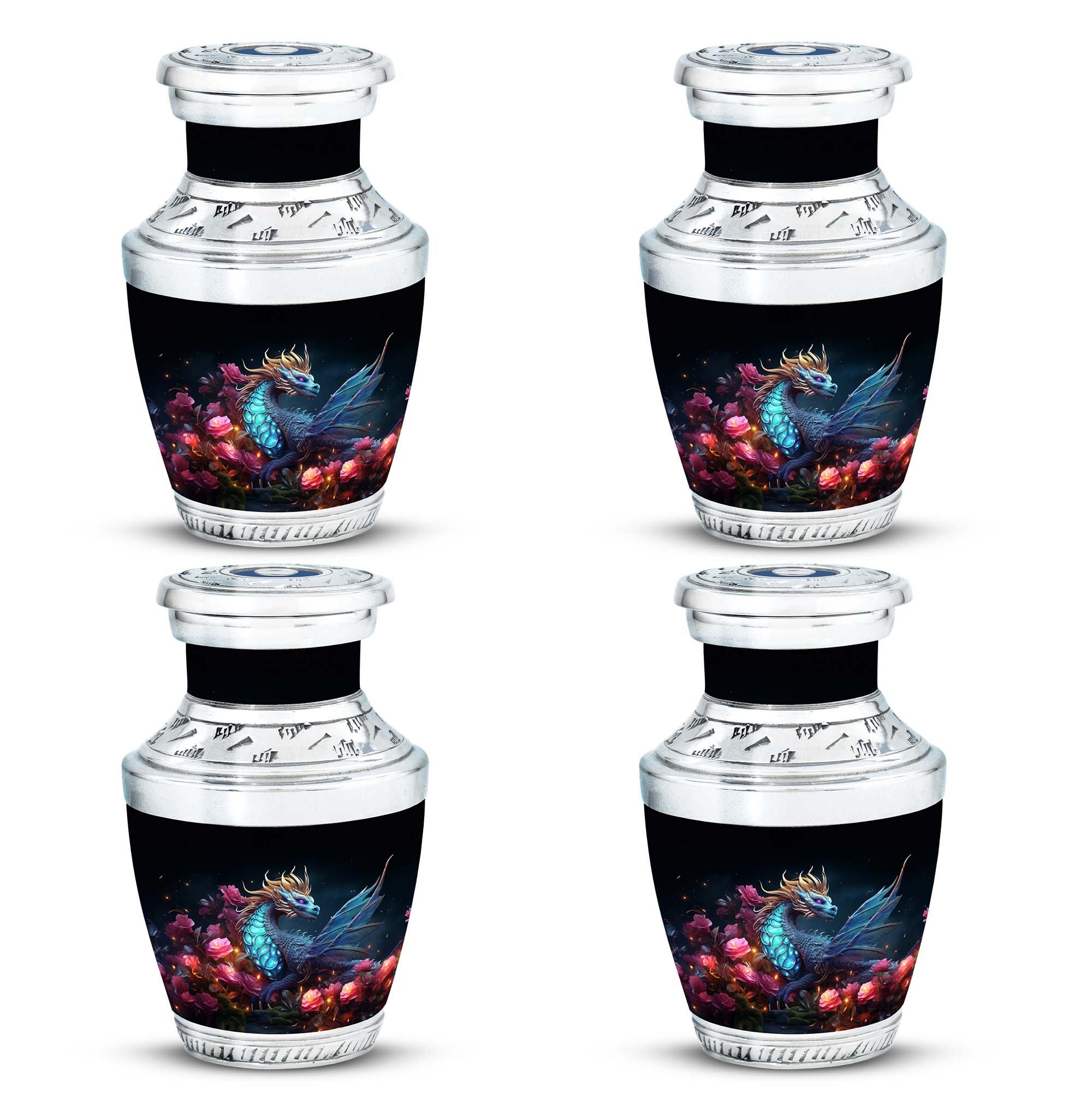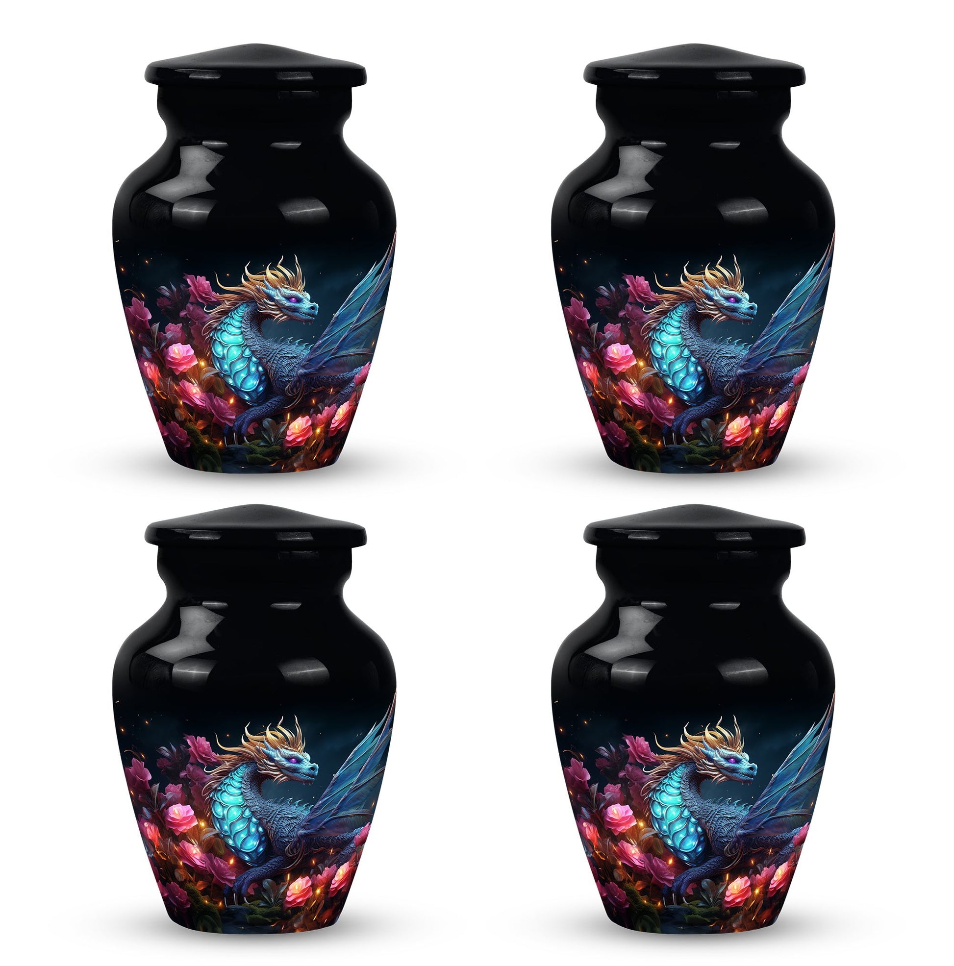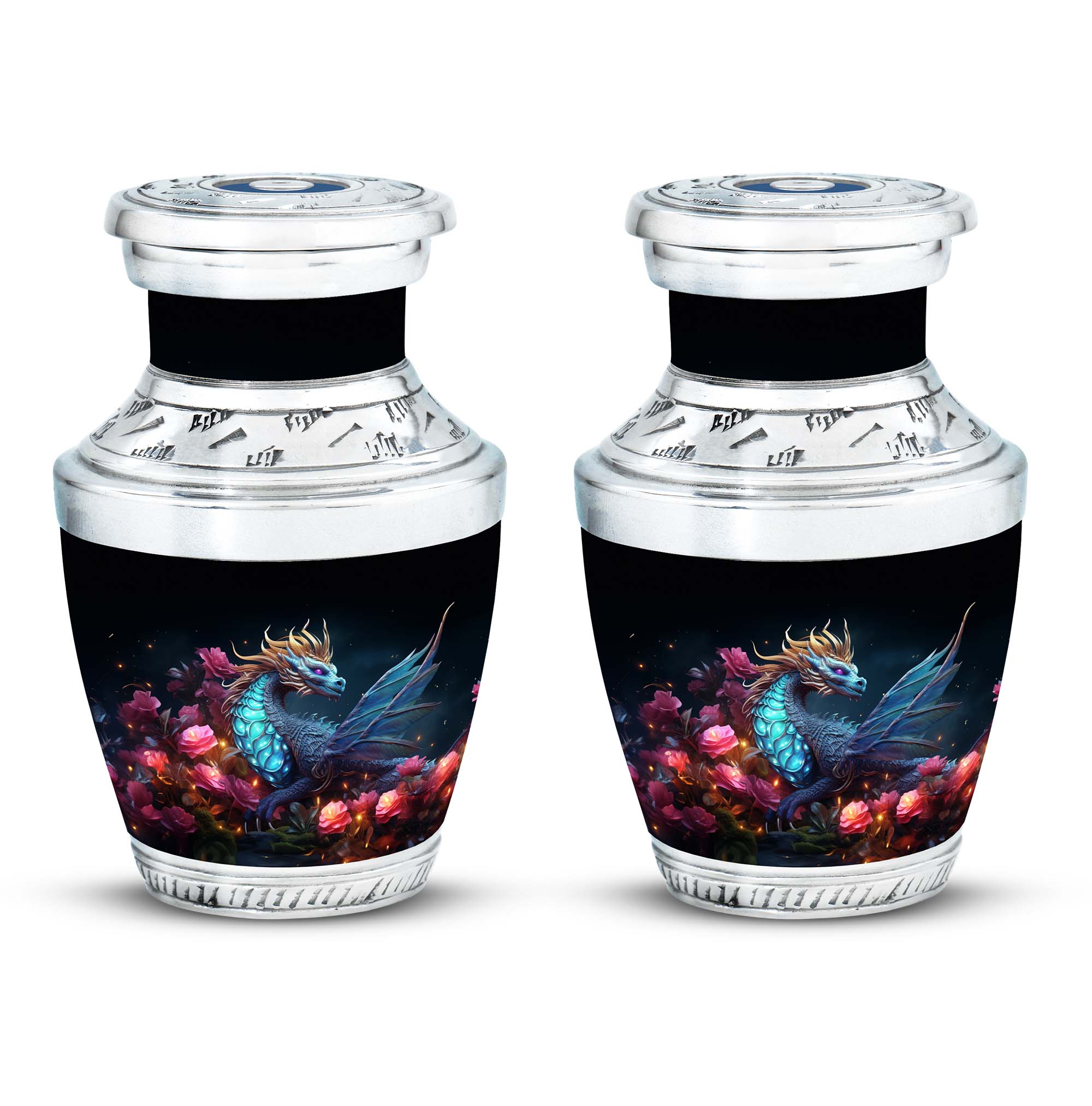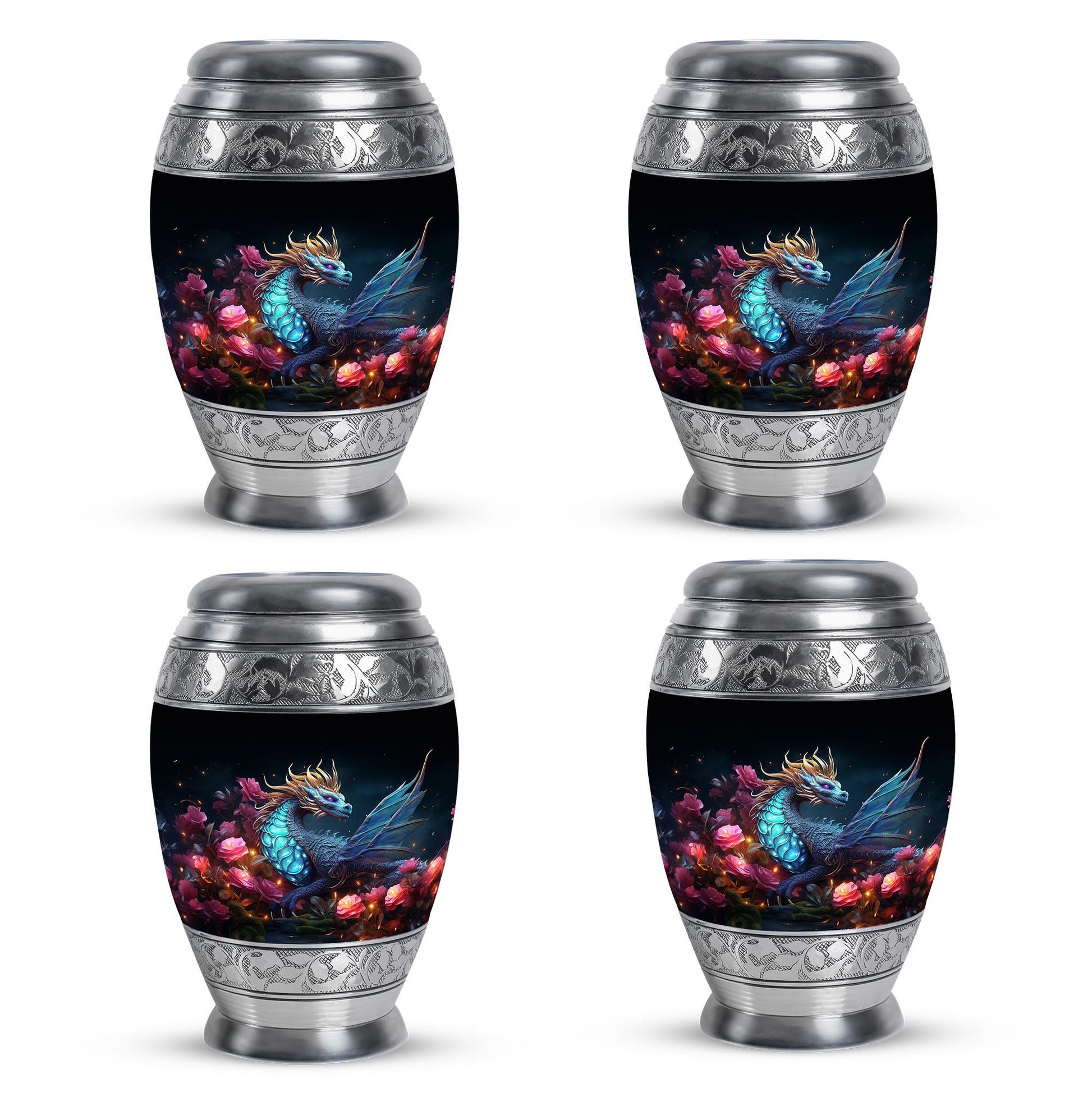 The Dragon Amidst Moonlit Roses cremation urn is a breathtaking symbol of strength, love, and transformation. Featuring a majestic dragon surrounded by moonlit roses, this urn embodies courage, eternal guardianship, and devotion. It’s a perfect choice for families who wish to celebrate the enduring spirit of a loved one through art and symbolism.