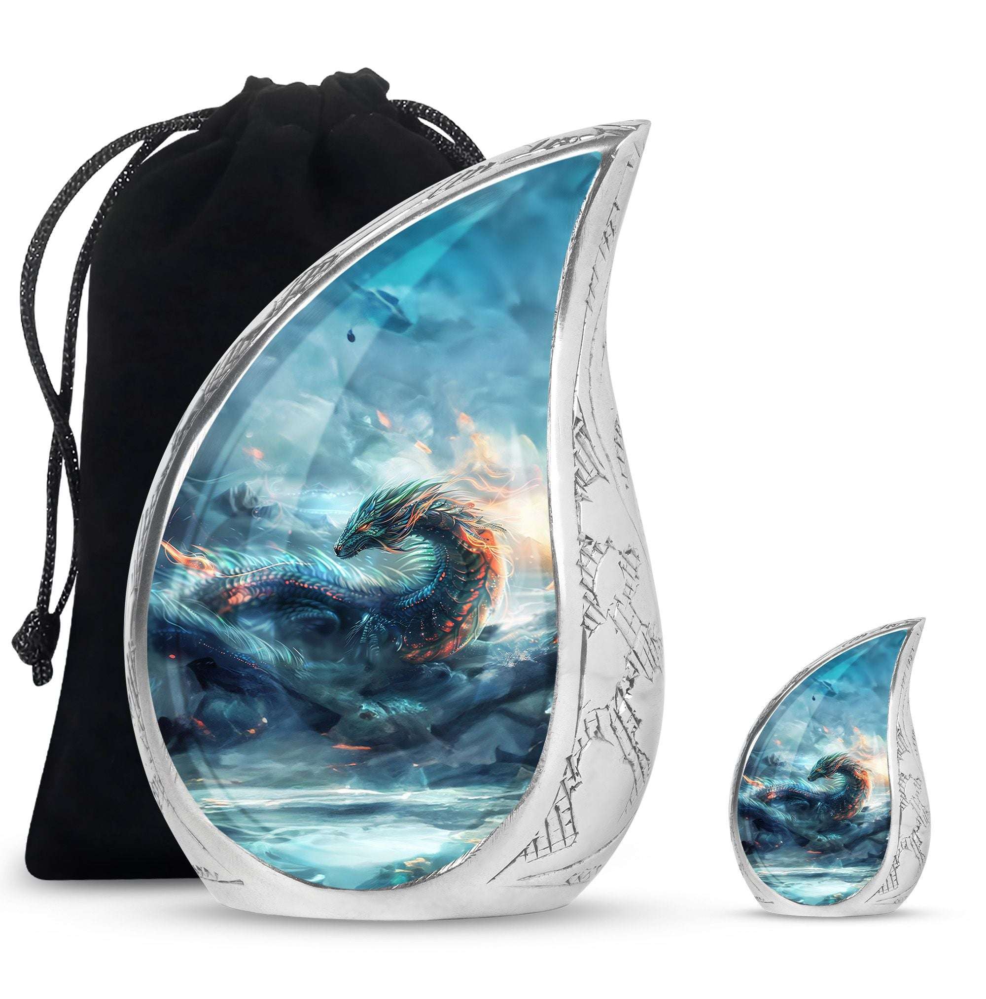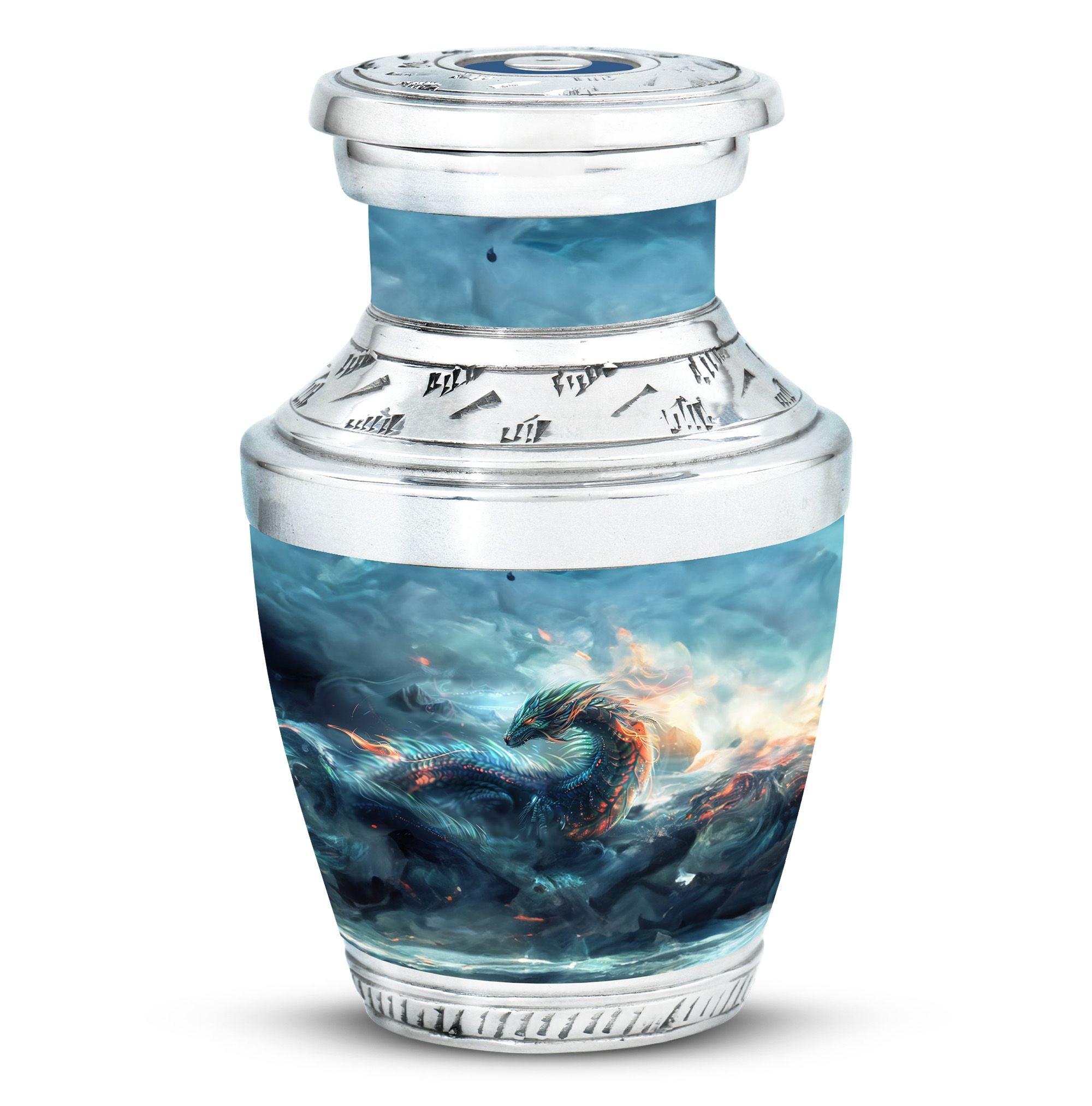 Crafted from premium aluminium, this urn combines durability with artistry. Its fierce yet graceful dragon design makes it suitable as a women adult urn, urn for adult male & female, or beautiful urns women cherish in remembrance. A secure screw-top lid ensures ashes remain safe, while its elegant finish makes it perfect for display or burial. Whether chosen as small urns women prefer or tiny urns for women & men, this piece blends function with timeless symbolism.