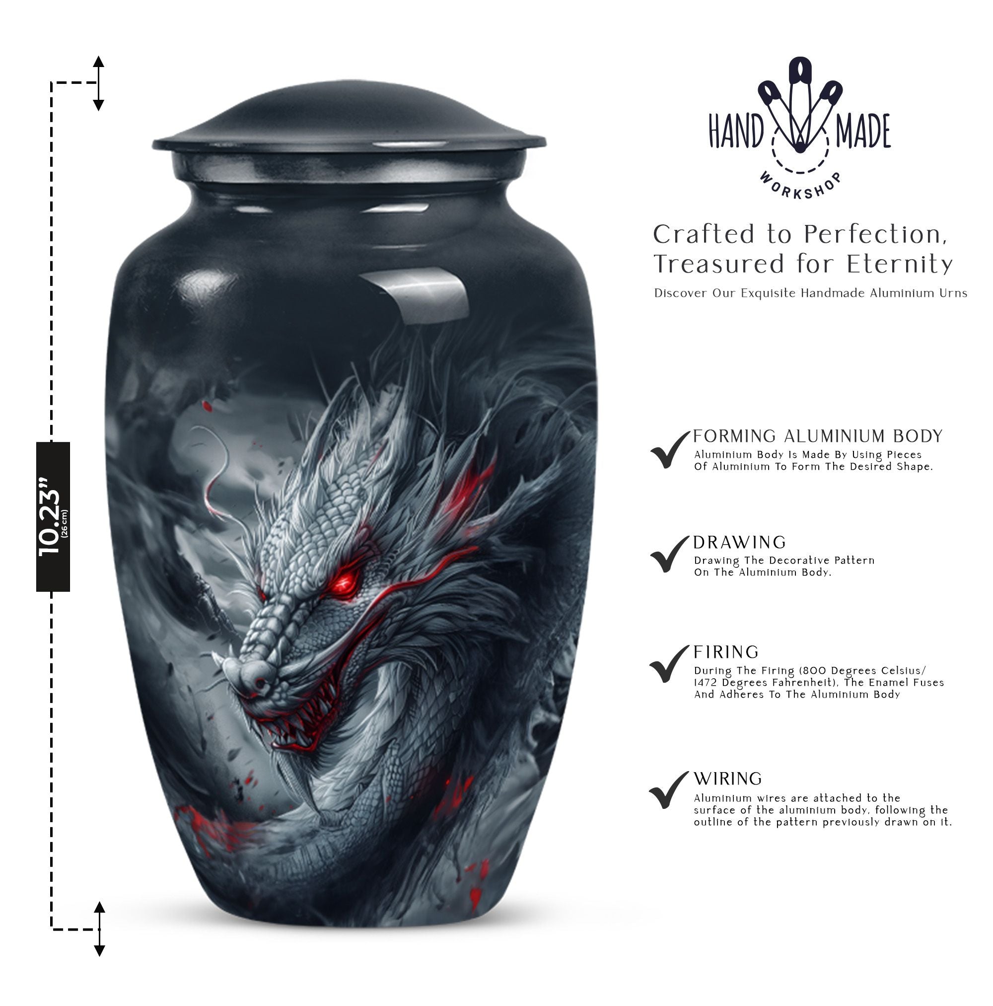 Honor the spirit and legacy of your loved one with this powerful Dragon Cremation Urn, a symbol of strength, protection, and transformation. Featuring a mystic dragon design, this urn offers a unique and meaningful tribute for both men and women, blending artistic detail with lasting craftsmanship.
