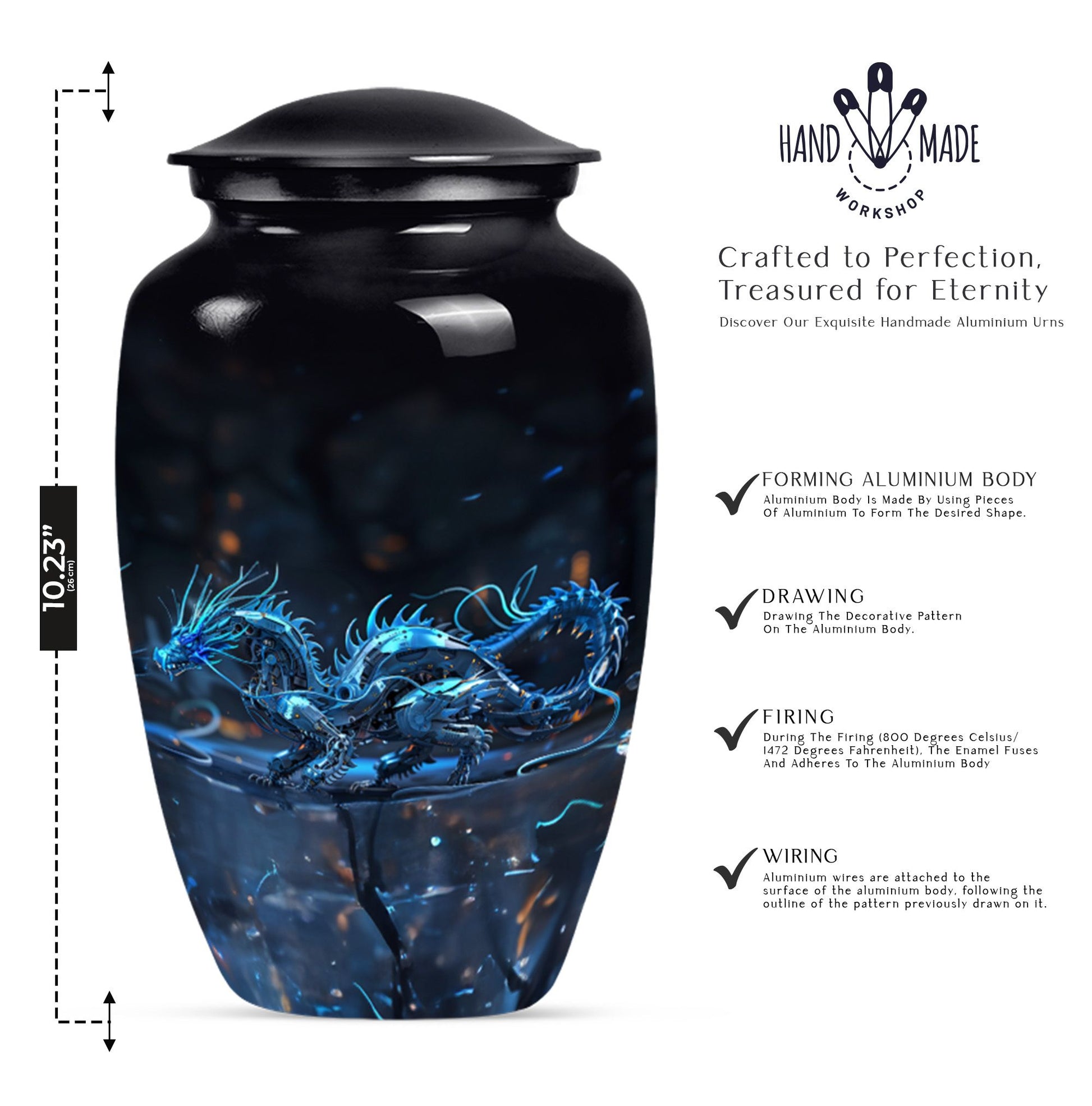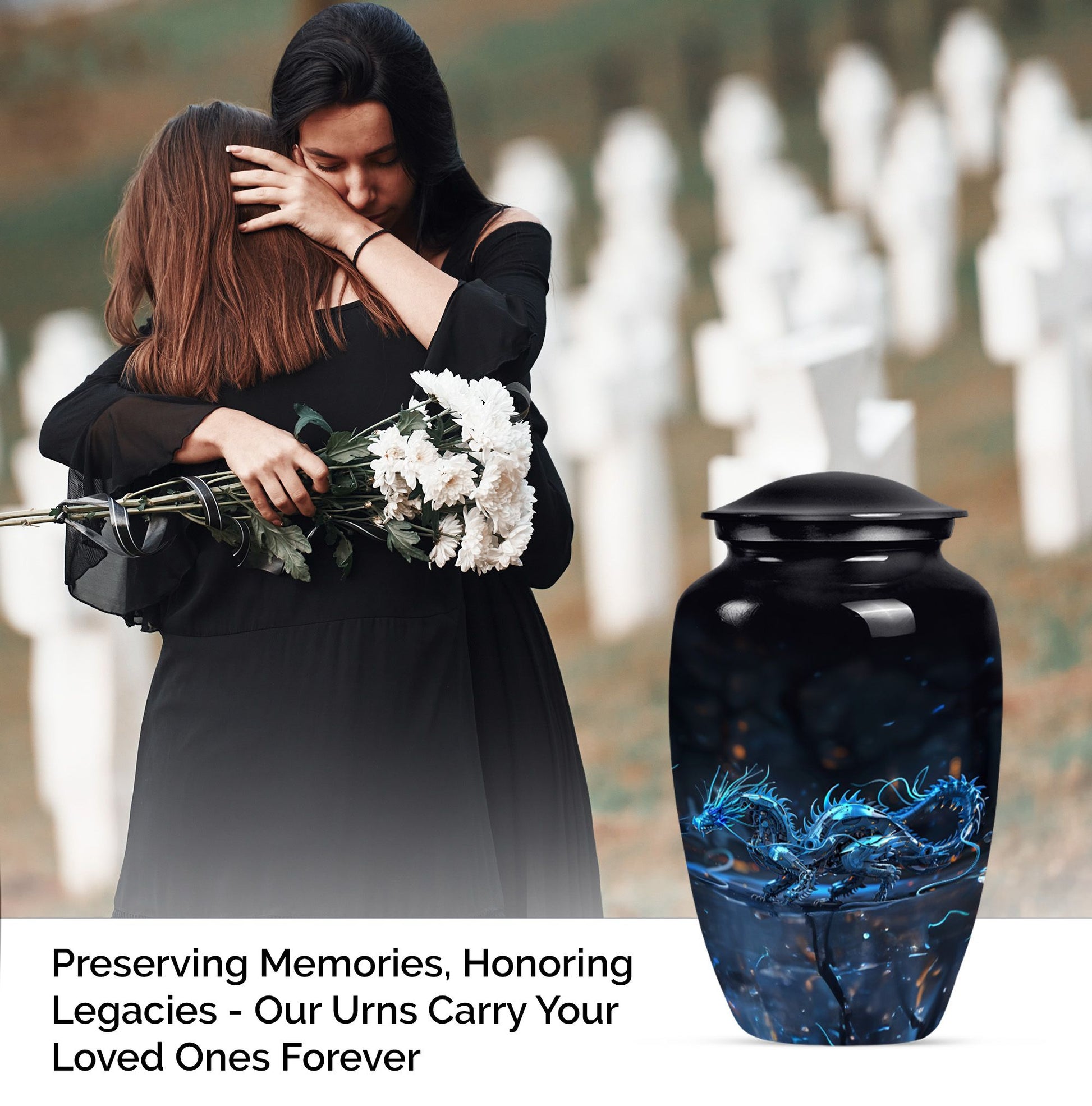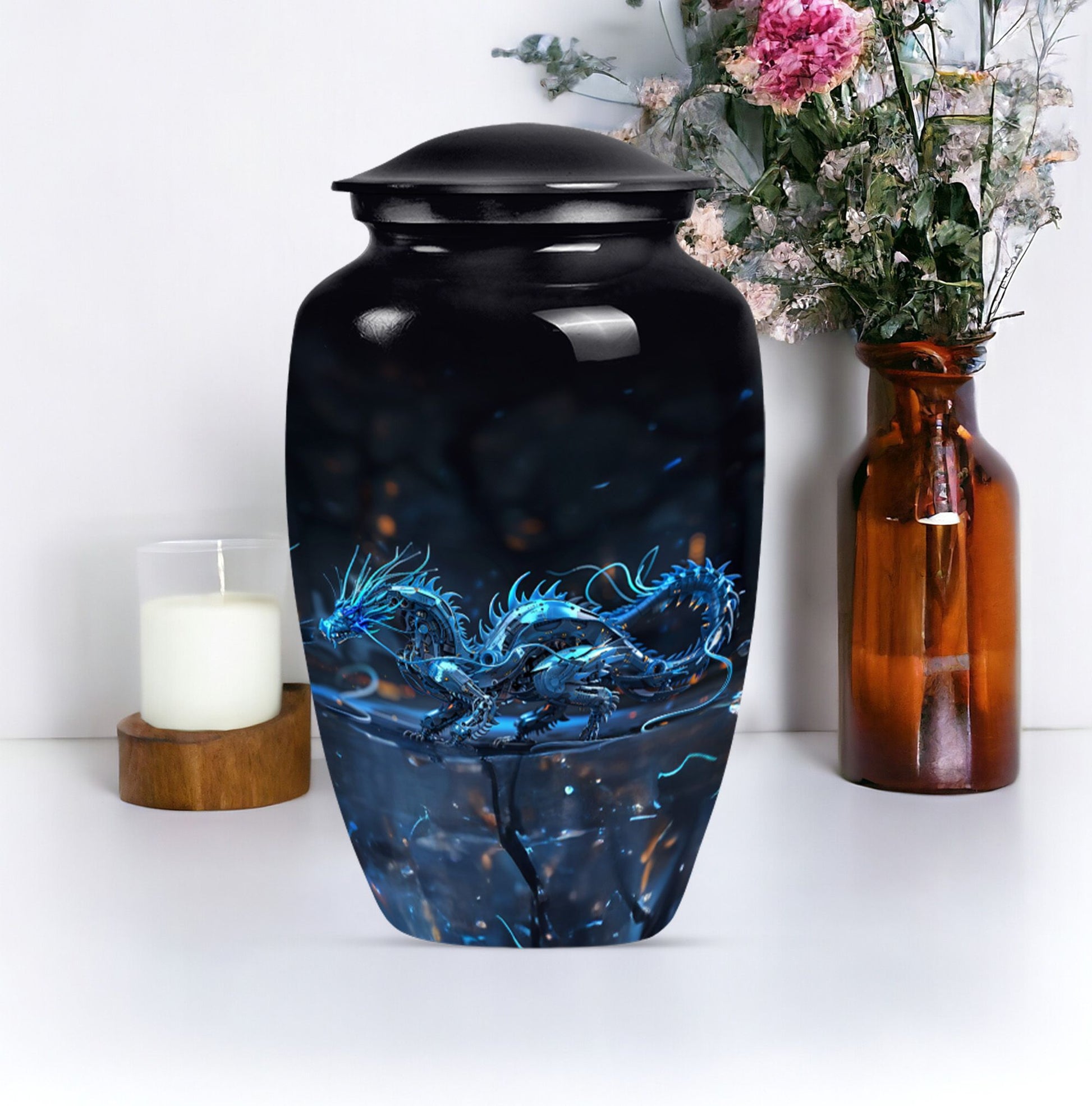 Honor a life of courage, love, and strength with the Dragon Large Cremation Urn for Cherished Memories — a powerful memorial piece designed to celebrate those who left a lasting mark on our hearts. Featuring an intricate dragon design symbolizing protection and eternal spirit, this urn brings beauty and meaning to your tribute.