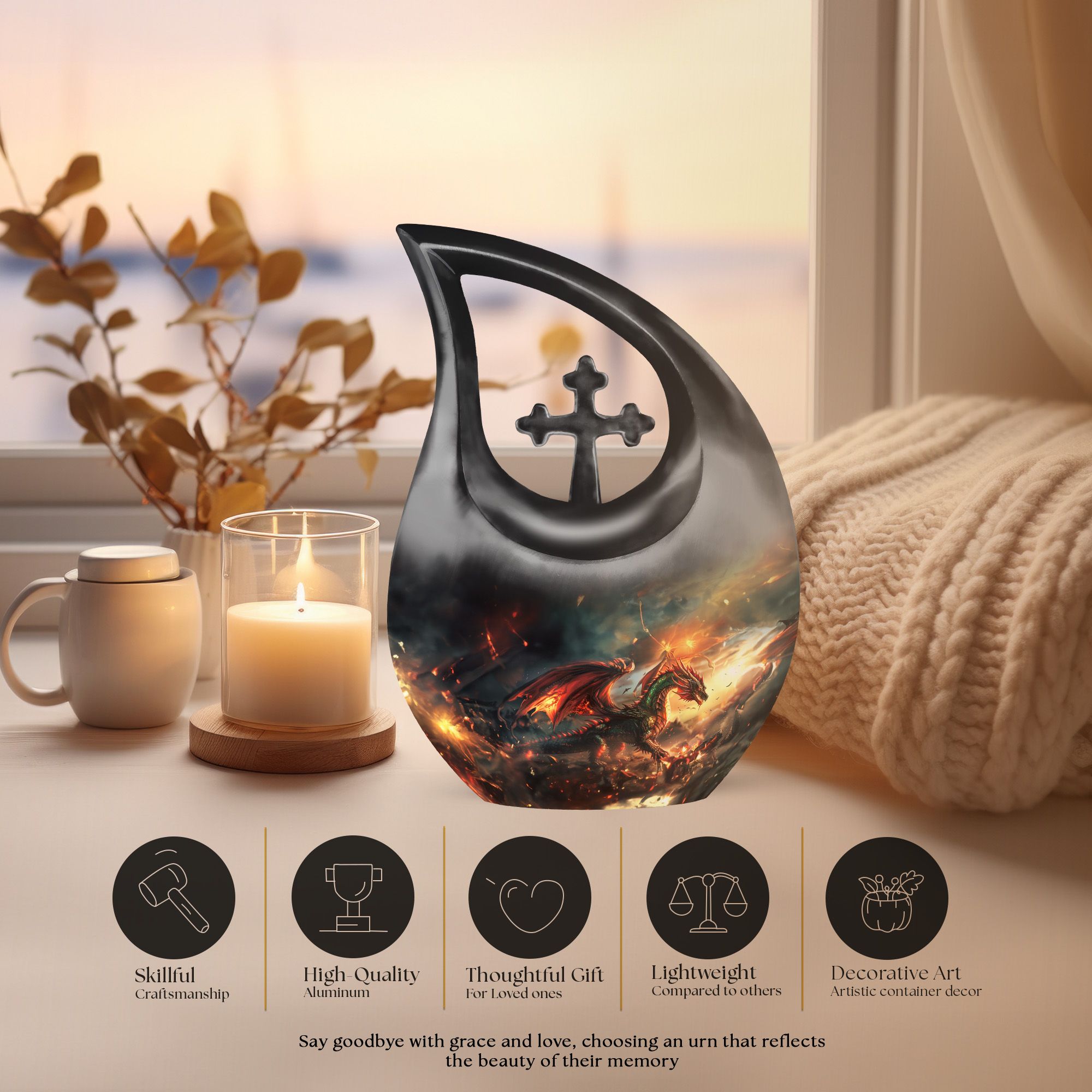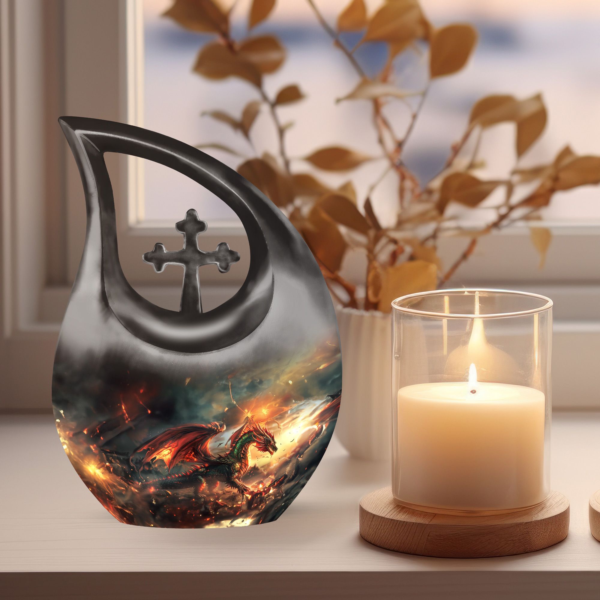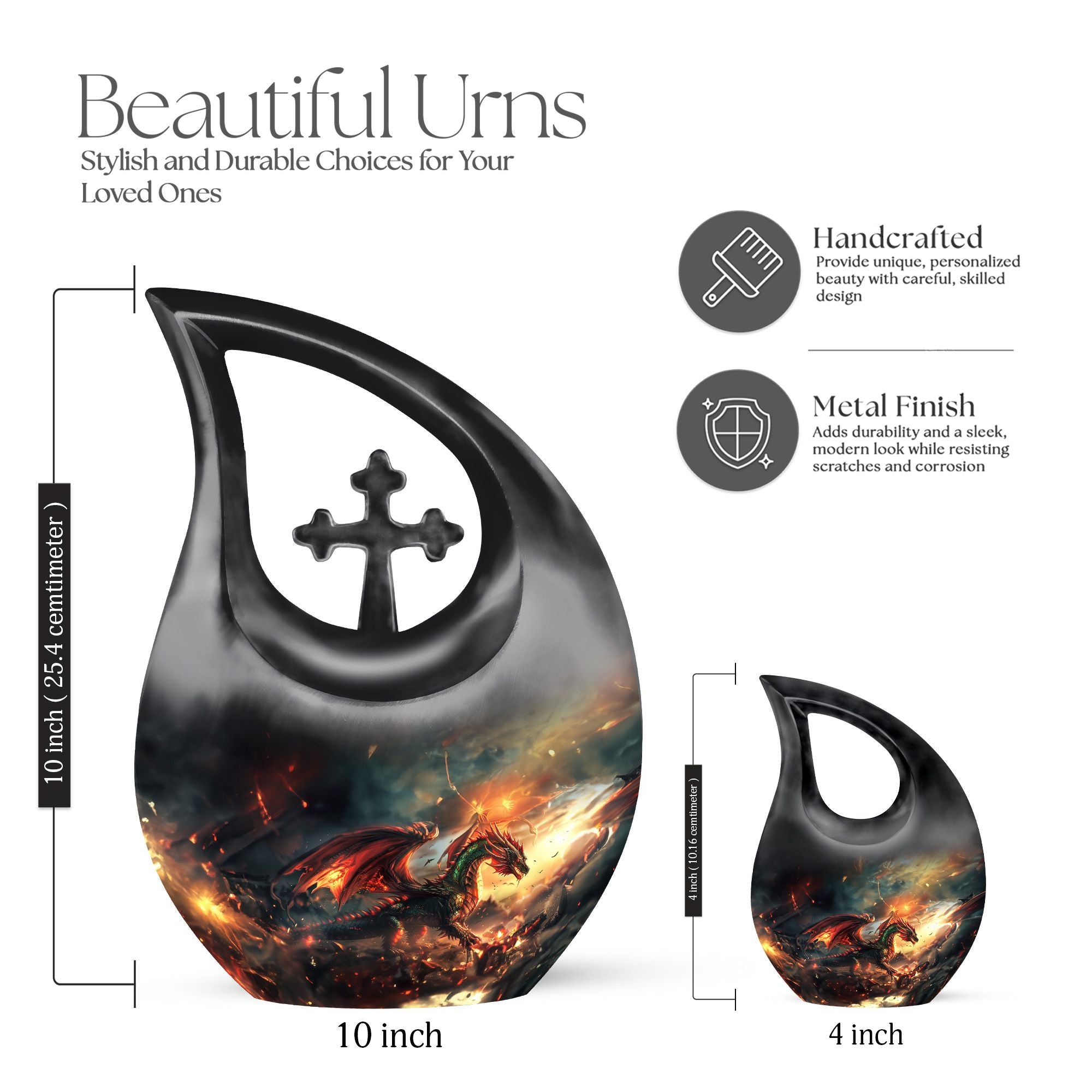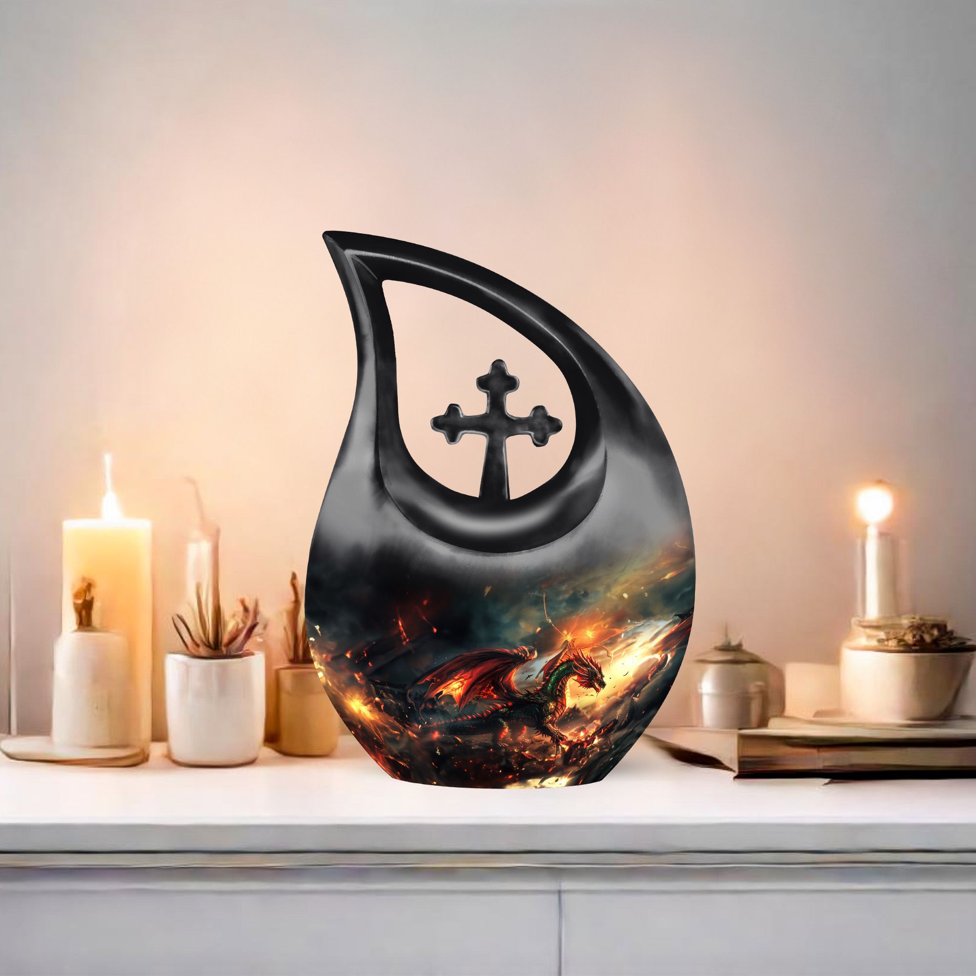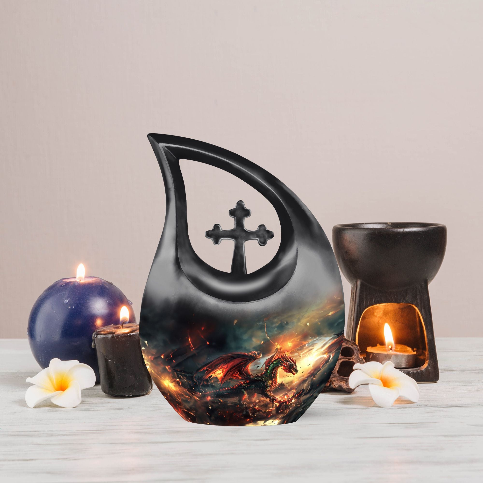 The Fire Dragon Cremation Urn – 10 Inch Memorial Urn for Human Ashes offers a powerful and symbolic tribute to your loved one. Embodying courage and eternal protection, it provides a comforting resting place suitable for urns for ashes adult female as well as a dignified urn for human ashes adult male.