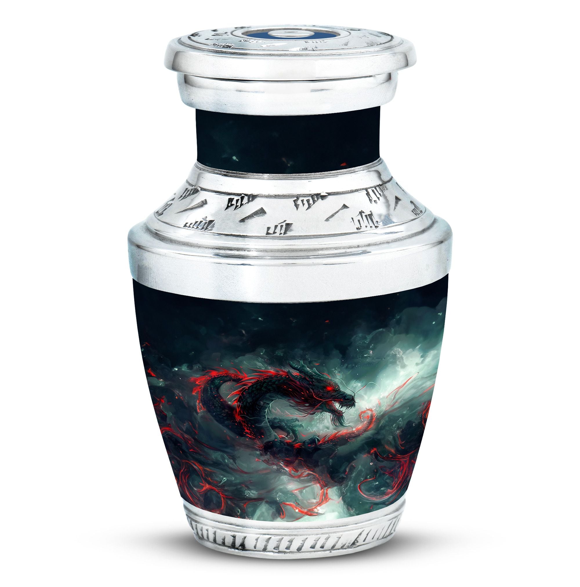 Made from durable aluminium, this urn blends craftsmanship with symbolic design. Its intricate dragon motif represents power and eternal spirit, making it a fitting choice for funeral urns for adult ashes men or adult urns for human ashes women. The secure screw-top lid ensures ashes are protected with care, while its elegant finish makes it suitable for display or burial. Whether chosen as a mini small urn for men or a mini urn for ashes for women, it provides a heartfelt way to keep loved ones close.