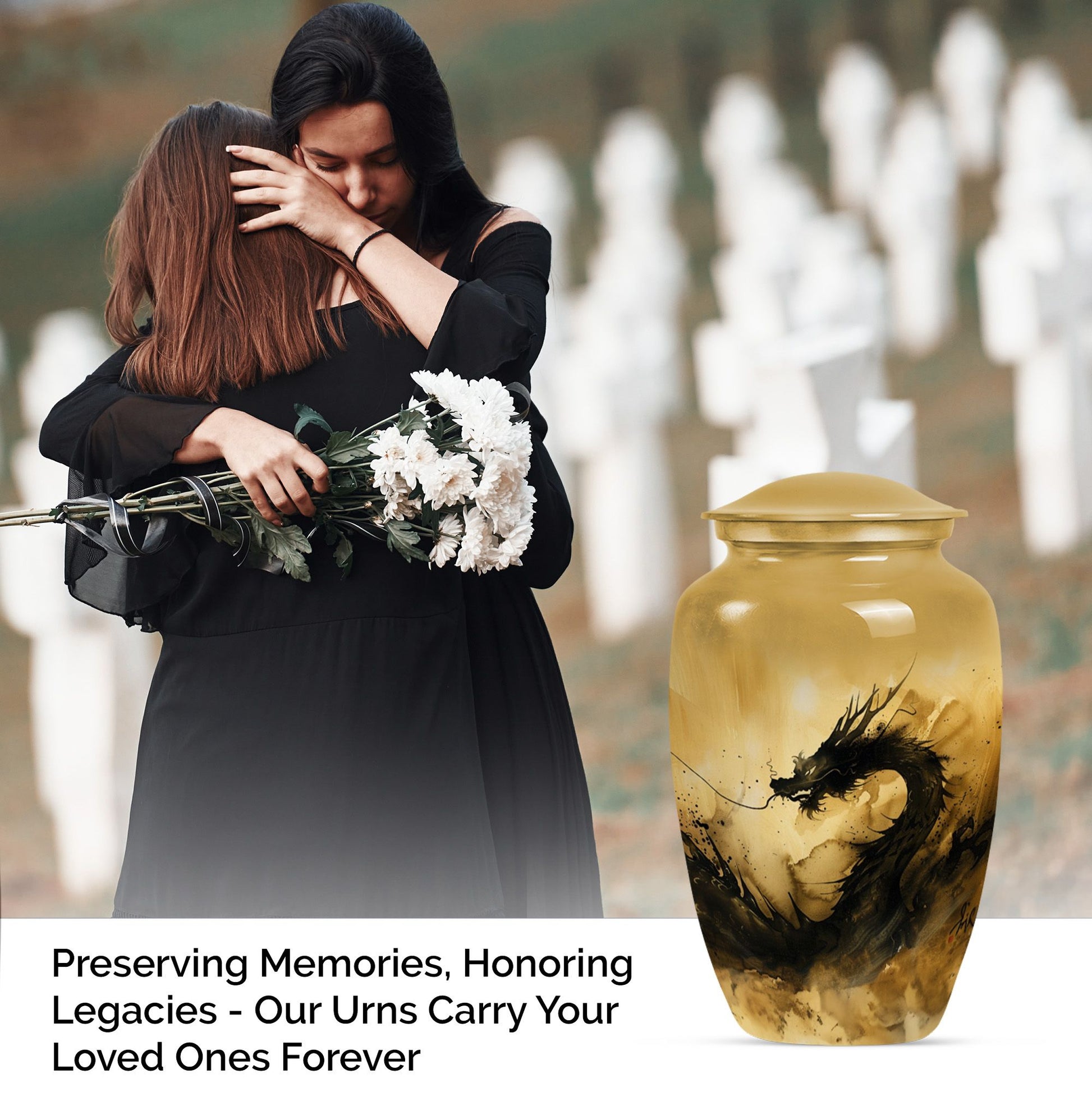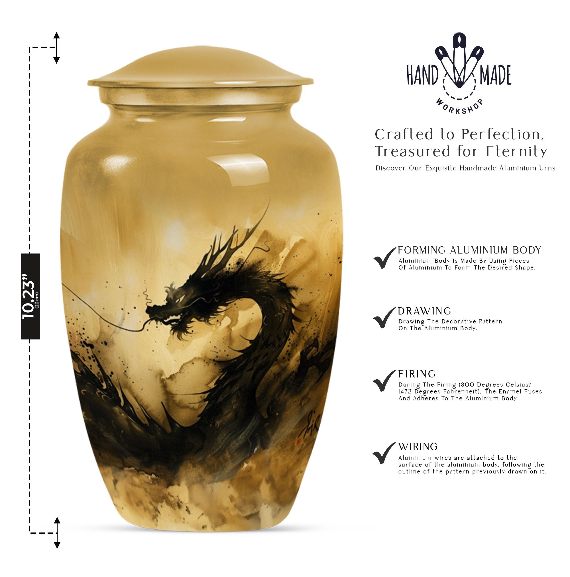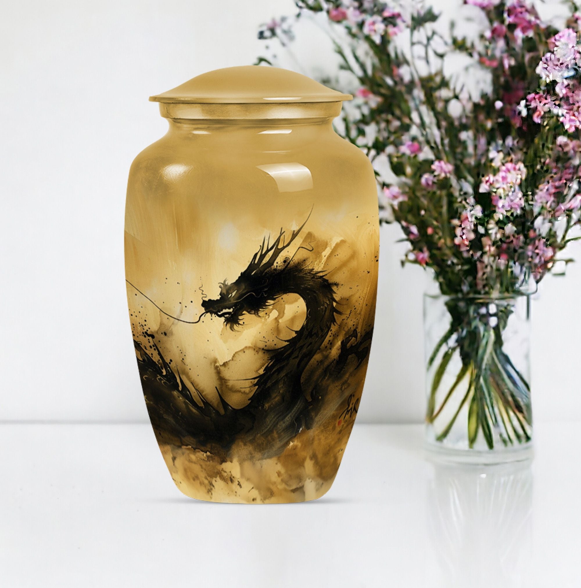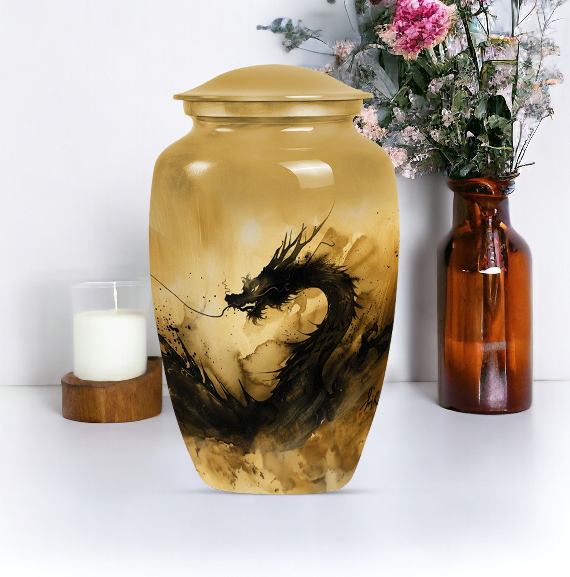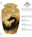 Celebrate the strength and spirit of your loved one with this intricately crafted Dragon Cremation Urn, a symbol of power, protection, and eternal remembrance. Designed to bring comfort during a time of loss, this funeral cremation urn for adult human ashes offers both visual beauty and lasting quality.