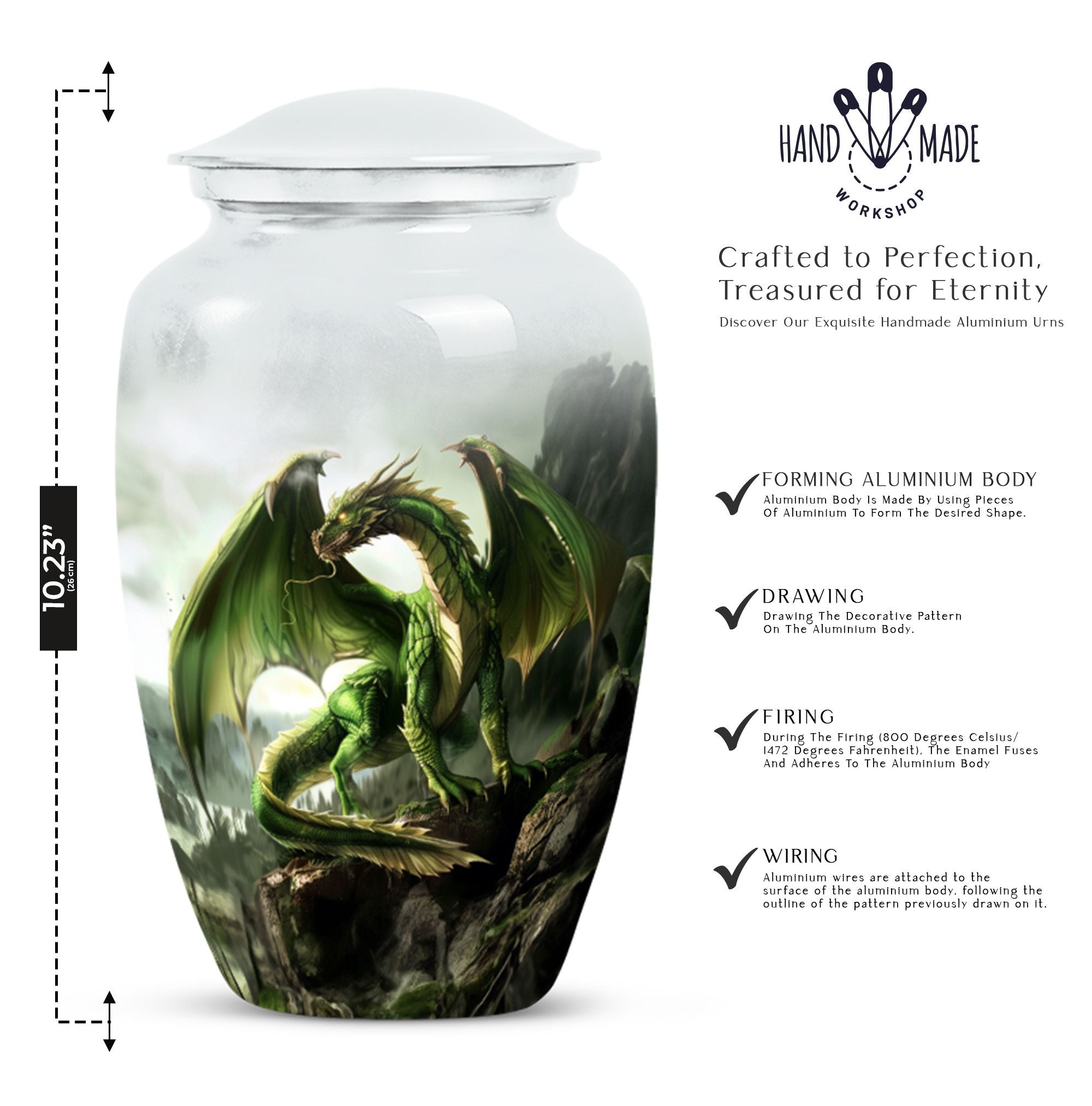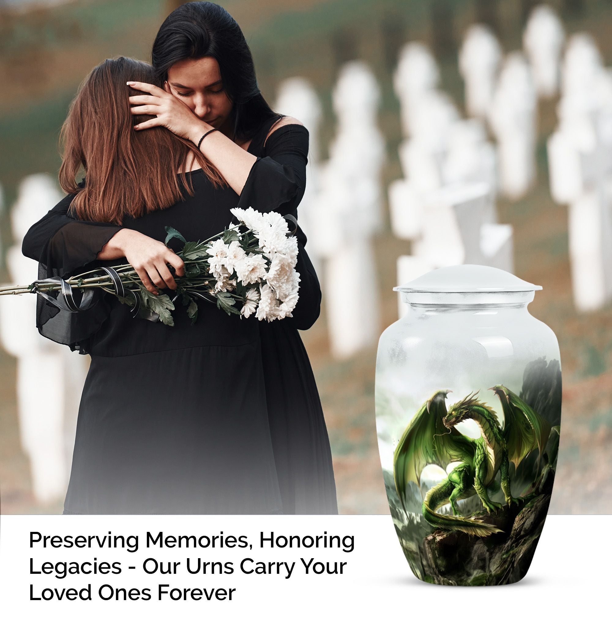 Honor his strength and spirit with the Dragon Tribute Memorial Cremation Urn, designed for those who embodied courage, resilience, and grace. Featuring a striking dragon motif, this urn serves as a powerful and meaningful resting place for a beloved man.