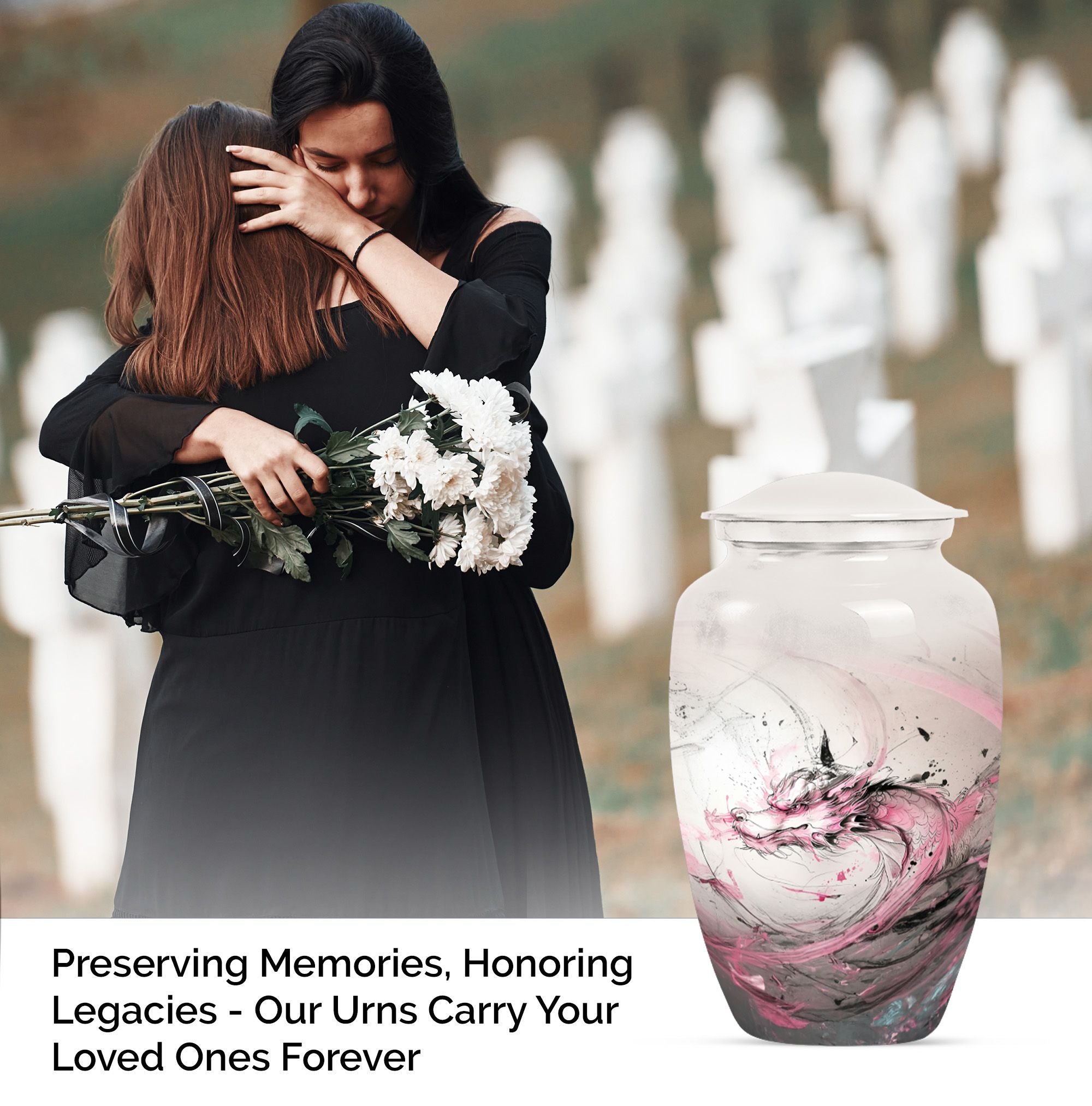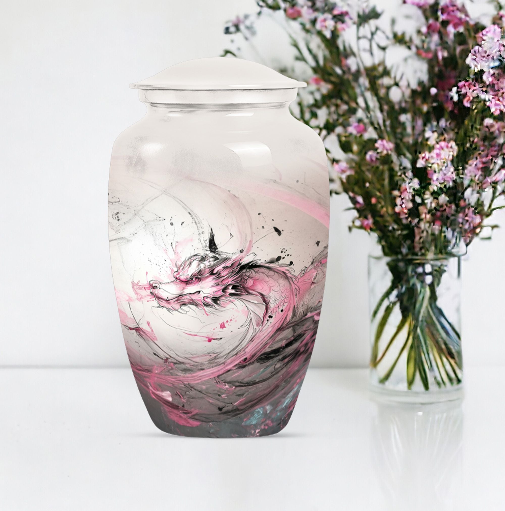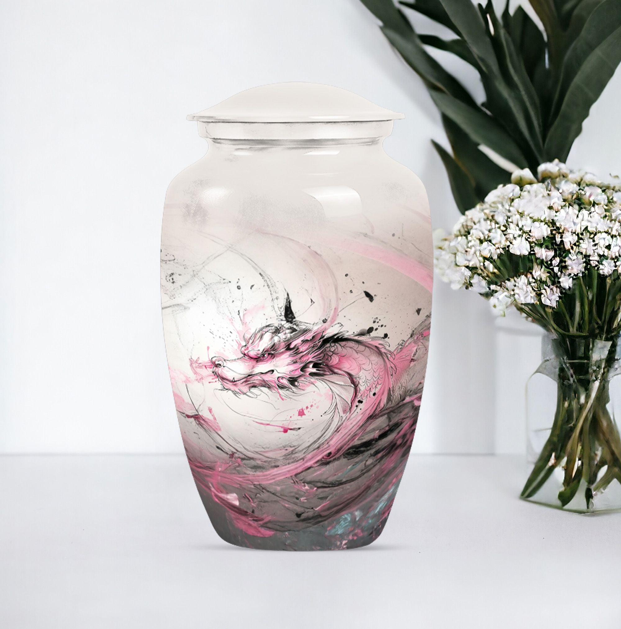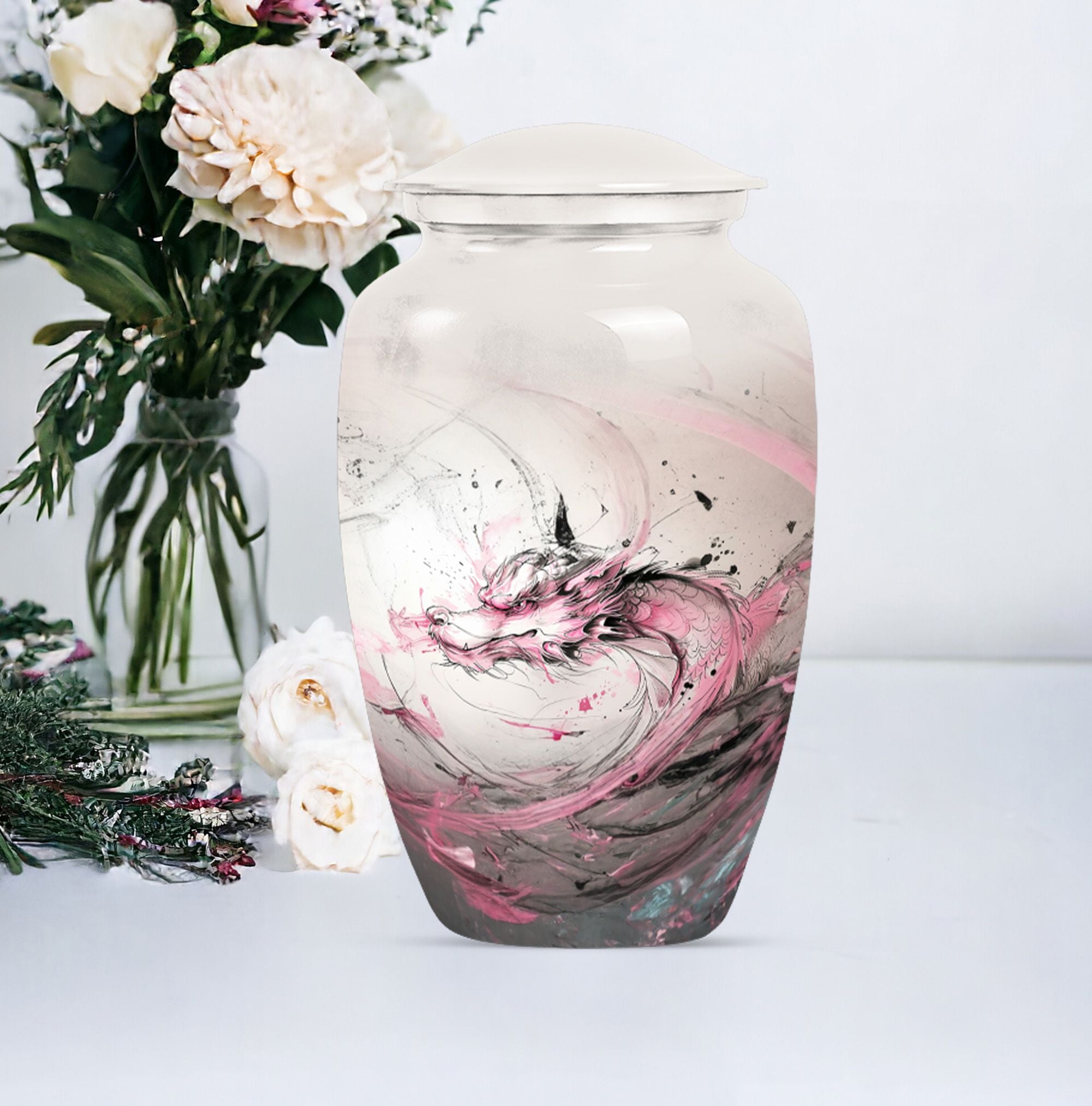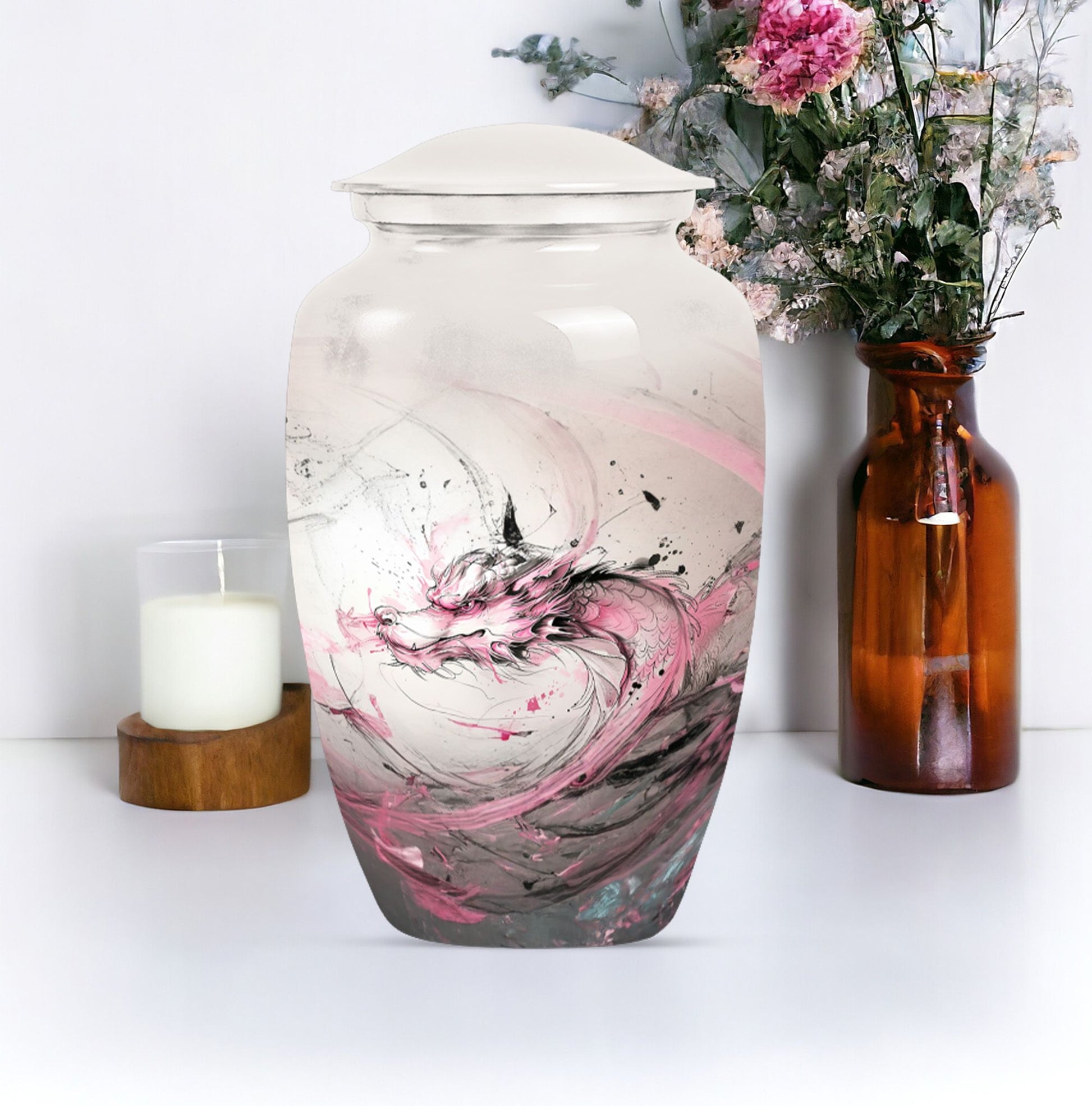 Honor your loved one with the majestic beauty of this Pink Dragon urn, a powerful tribute designed to reflect strength, grace, and individuality. Crafted for those who seek a unique memorial, this urn combines artistry and function in a beautifully detailed design.