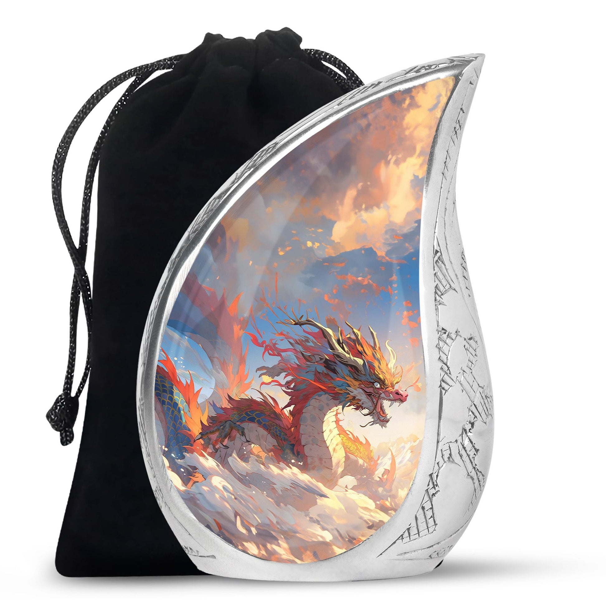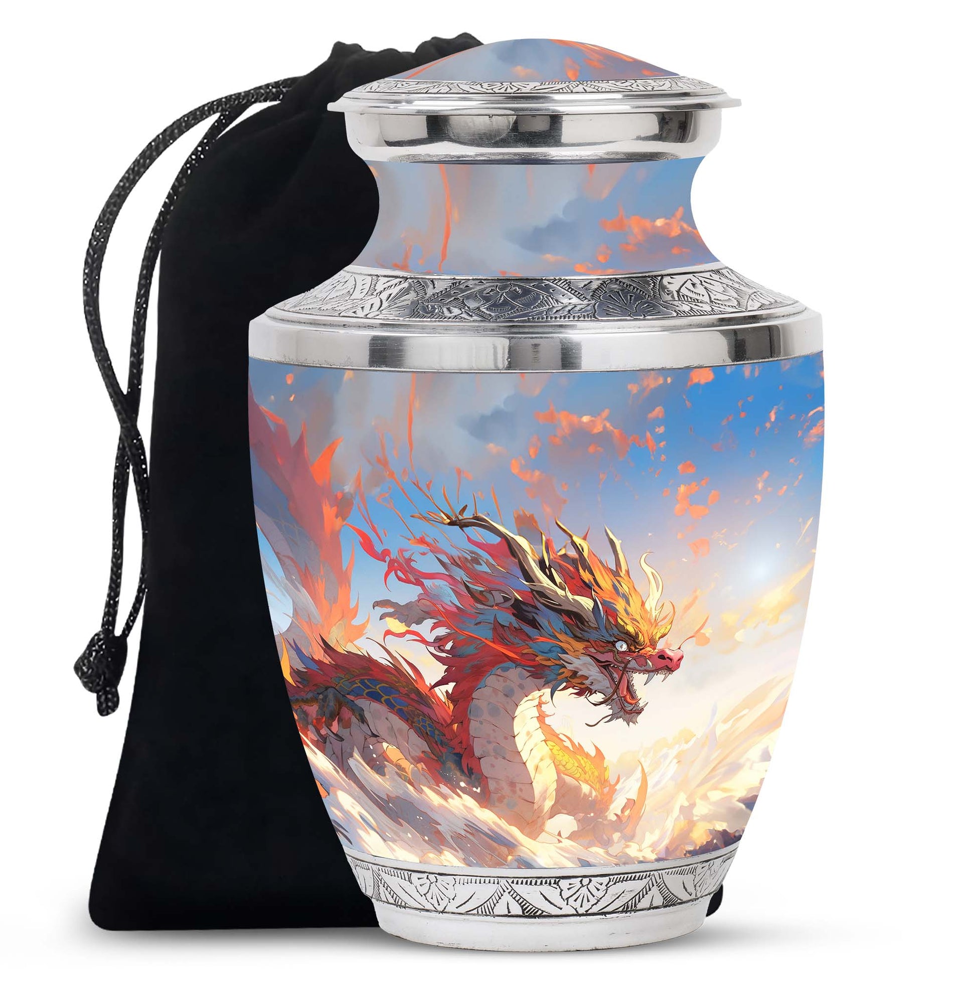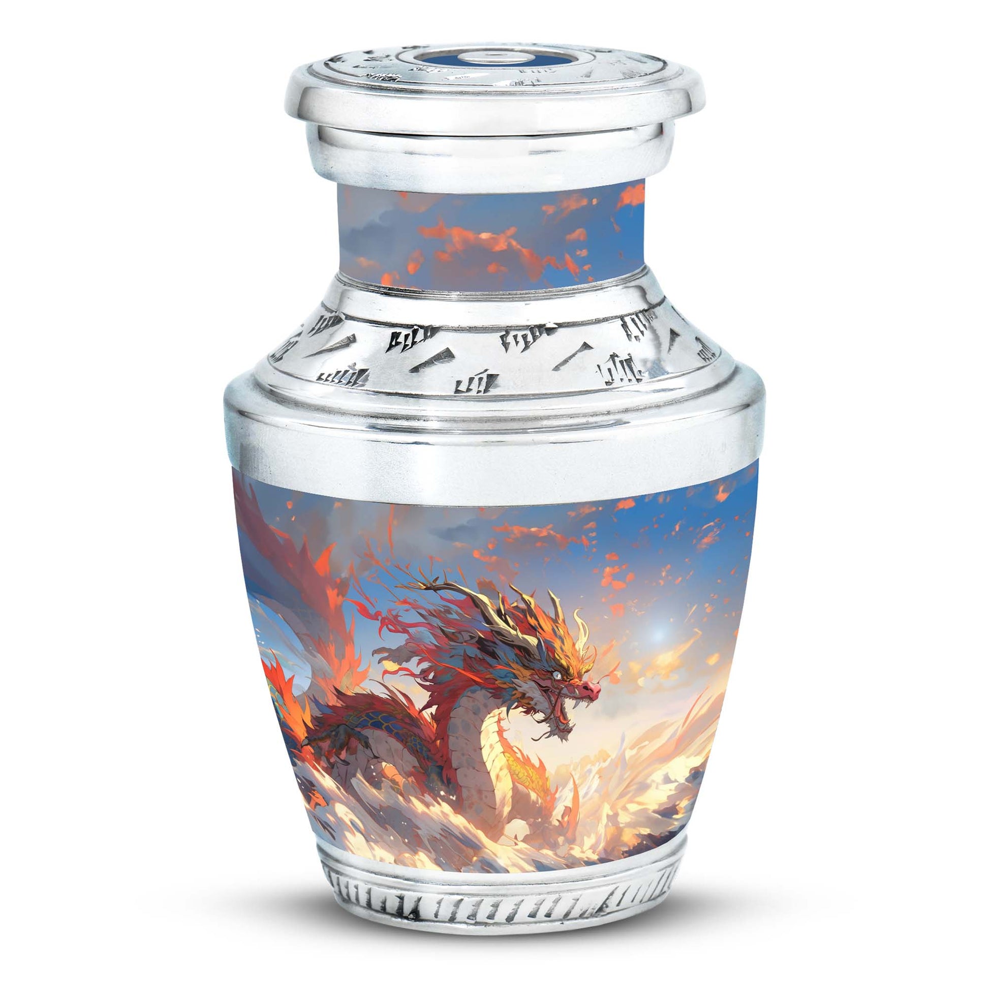 Expertly handcrafted, this urn for adult male is designed with both artistry and durability in mind. The fiery dragon motif wraps gracefully around the urn, symbolizing strength and guardianship. Made from premium aluminum, it ensures longevity and safety for the ashes it holds. Whether used as a small urn for ashes adult male or cherished among beautiful urns women, it’s perfect for any home or memorial space.