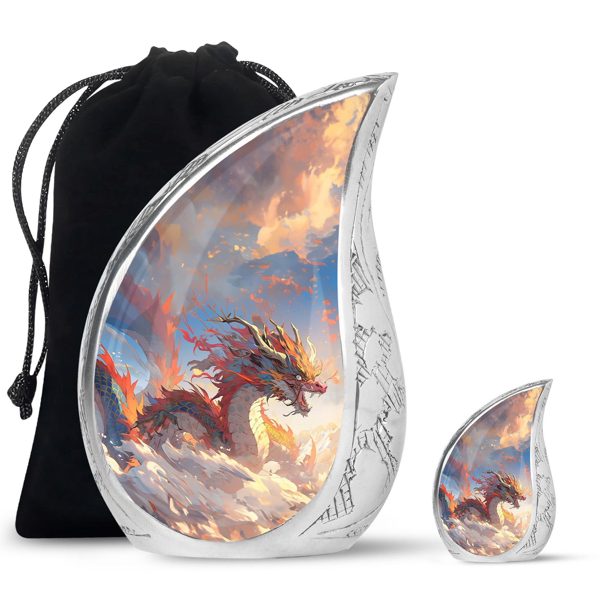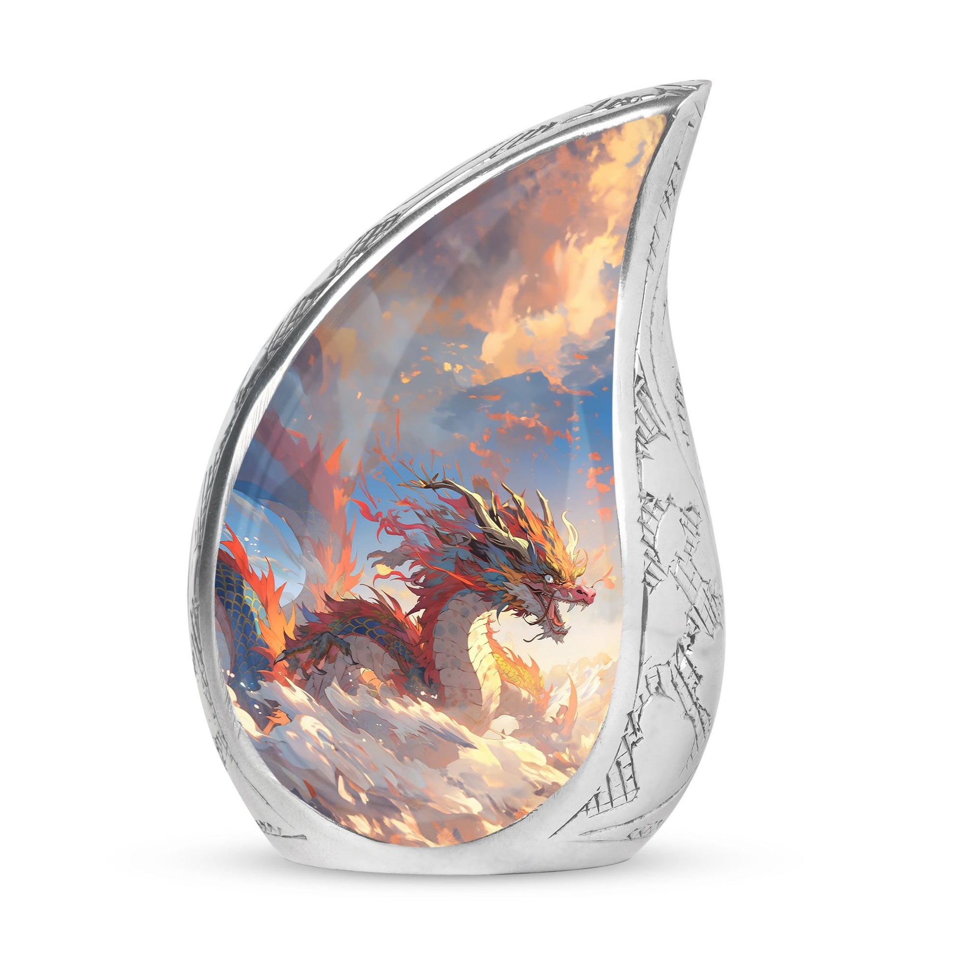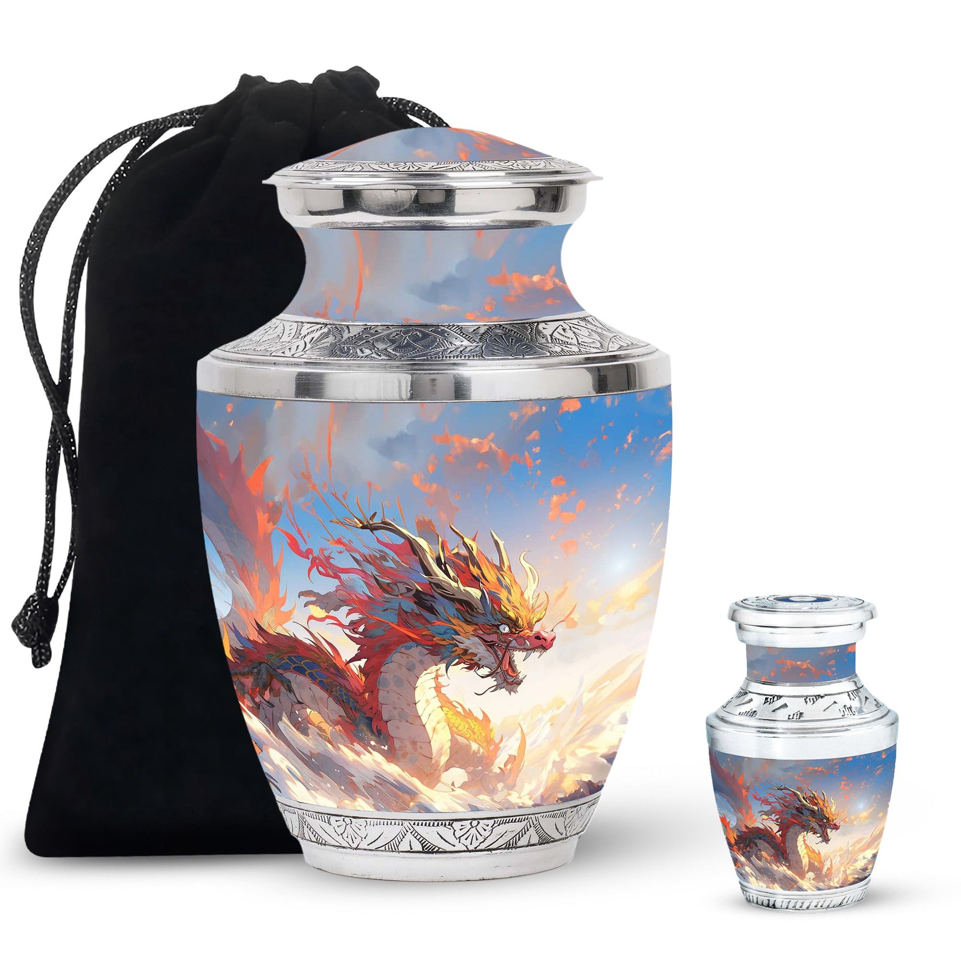 Expertly handcrafted, this urn for adult male is designed with both artistry and durability in mind. The fiery dragon motif wraps gracefully around the urn, symbolizing strength and guardianship. Made from premium aluminum, it ensures longevity and safety for the ashes it holds. Whether used as a small urn for ashes adult male or cherished among beautiful urns women, it’s perfect for any home or memorial space.