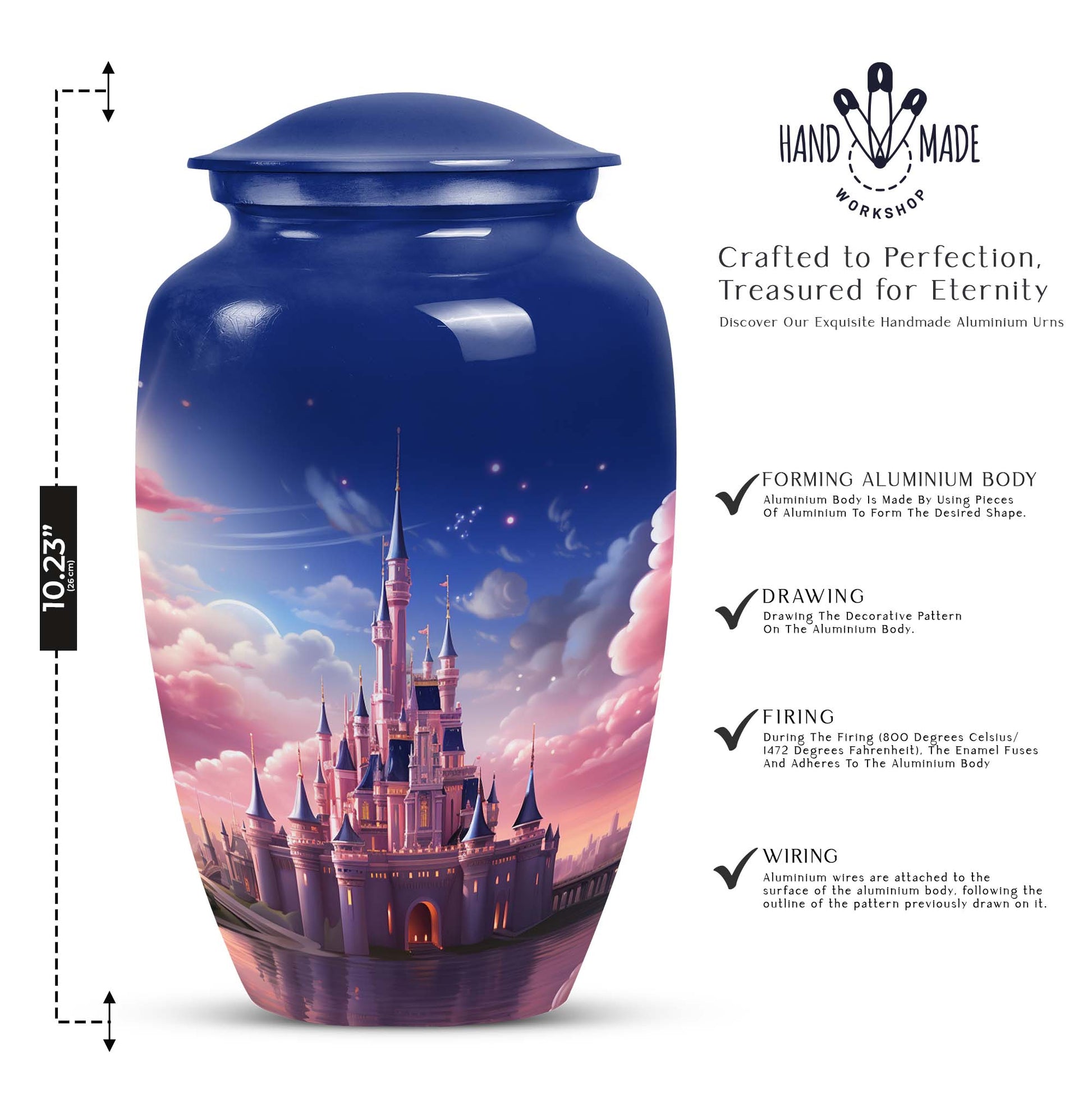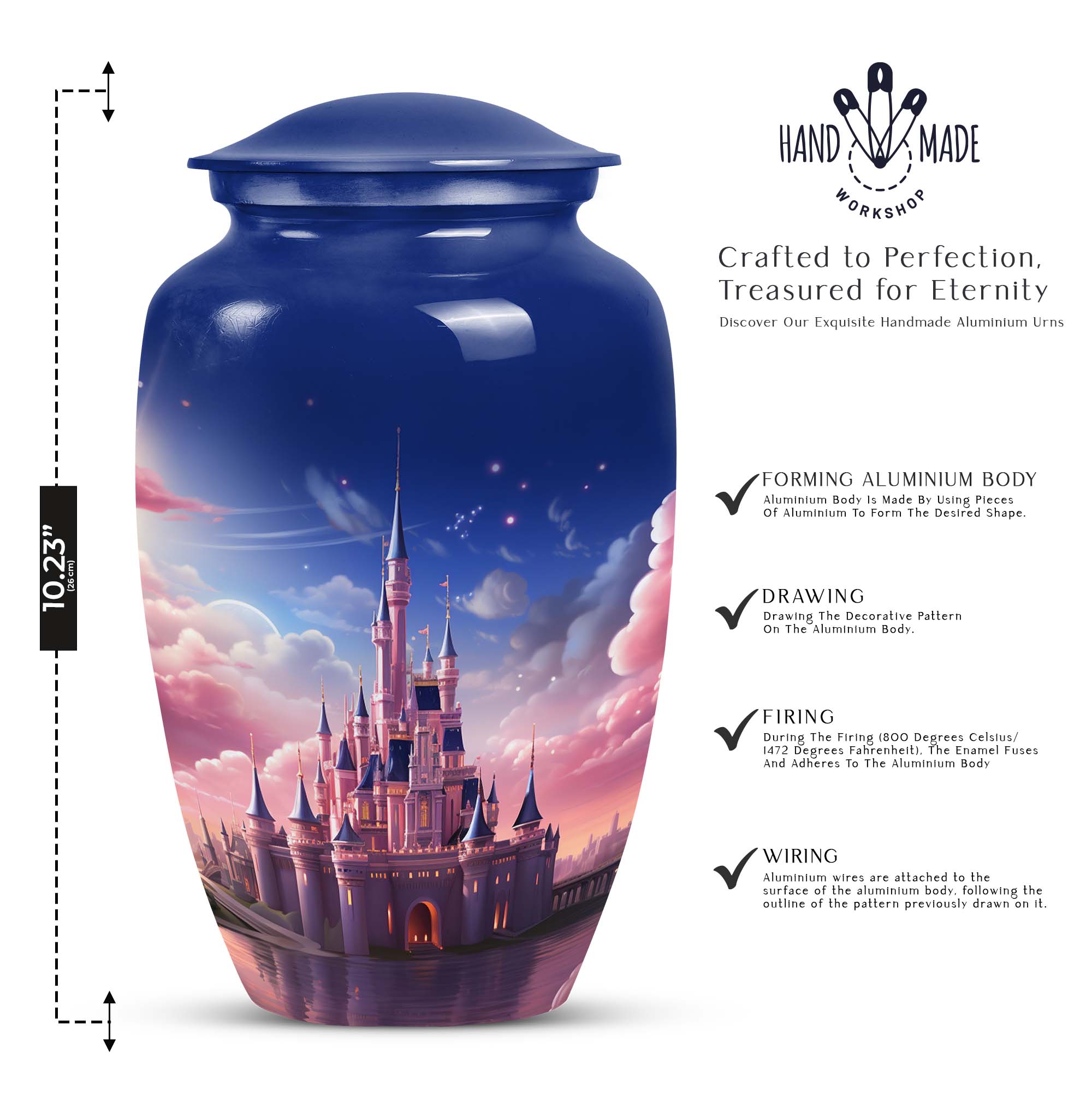 Illuminate your path of remembrance with the Dream Castle In The Sky - an exquisite Urn for Ashes. Crafted with the utmost reverence, this eternal resting place serves as a symbol of infinite love. This vessel of tranquility is well-suited for adult human ashes, ensuring a long-lasting tribute to your departed loved ones. Our ash urns are painstakingly designed with meticulous attention to create an enduring memorial for those who touched our lives. Unlike regular cremation urns for humans, this Dream Castle In The Sky boasts a distinctive design, providing the departed a solemn sanctuary among the celestial realms. Indulge in the benefits of our discrete urns for adults, which bridge the gap between earth and sky and evoke a sense of tranquility. Commemorate your departed loved ones with our unique burial urns for adult human ashes - the epitome of eternal homage. The Dream Castle In The Sky, far from ordinary, offers a soulful way to remember our dearly departed.