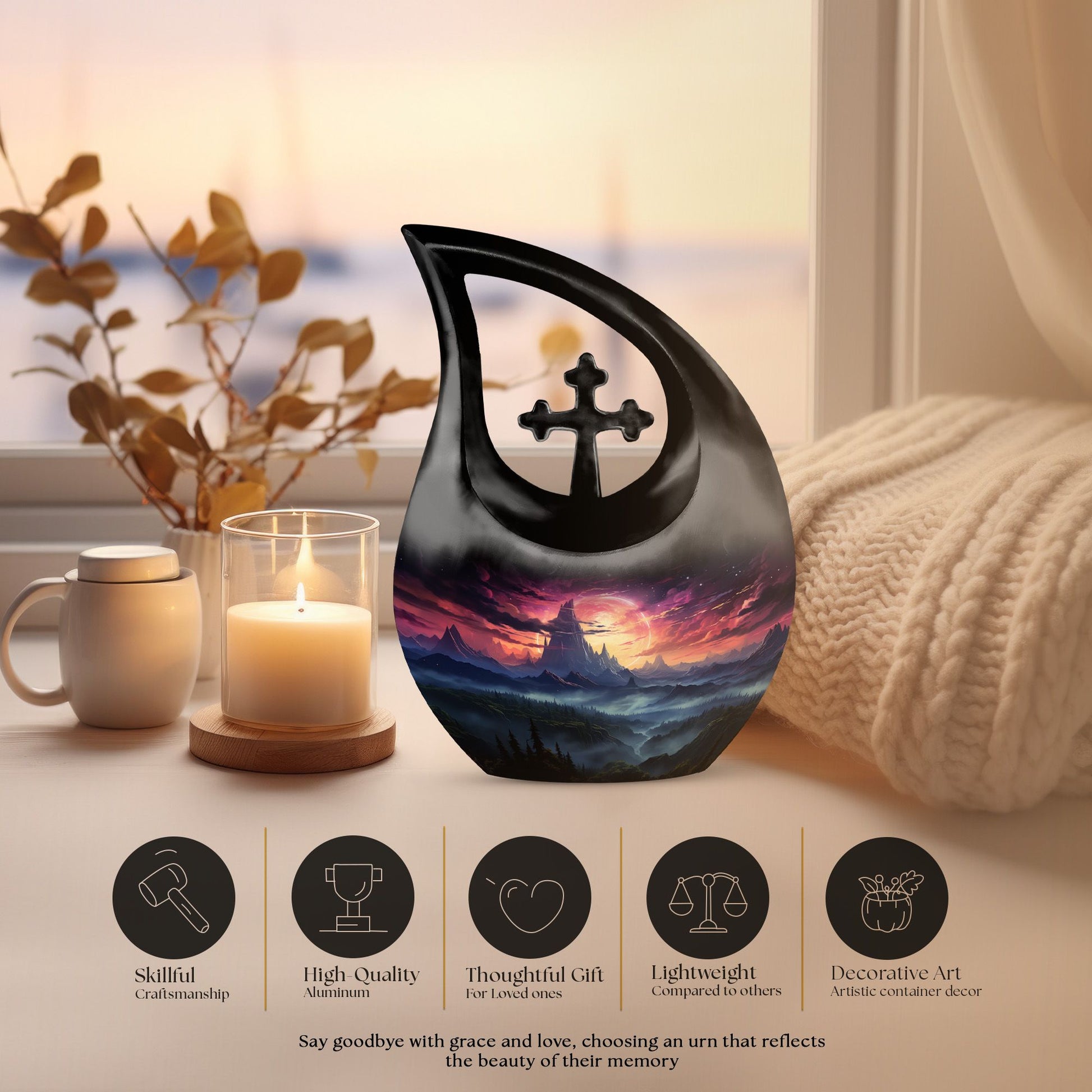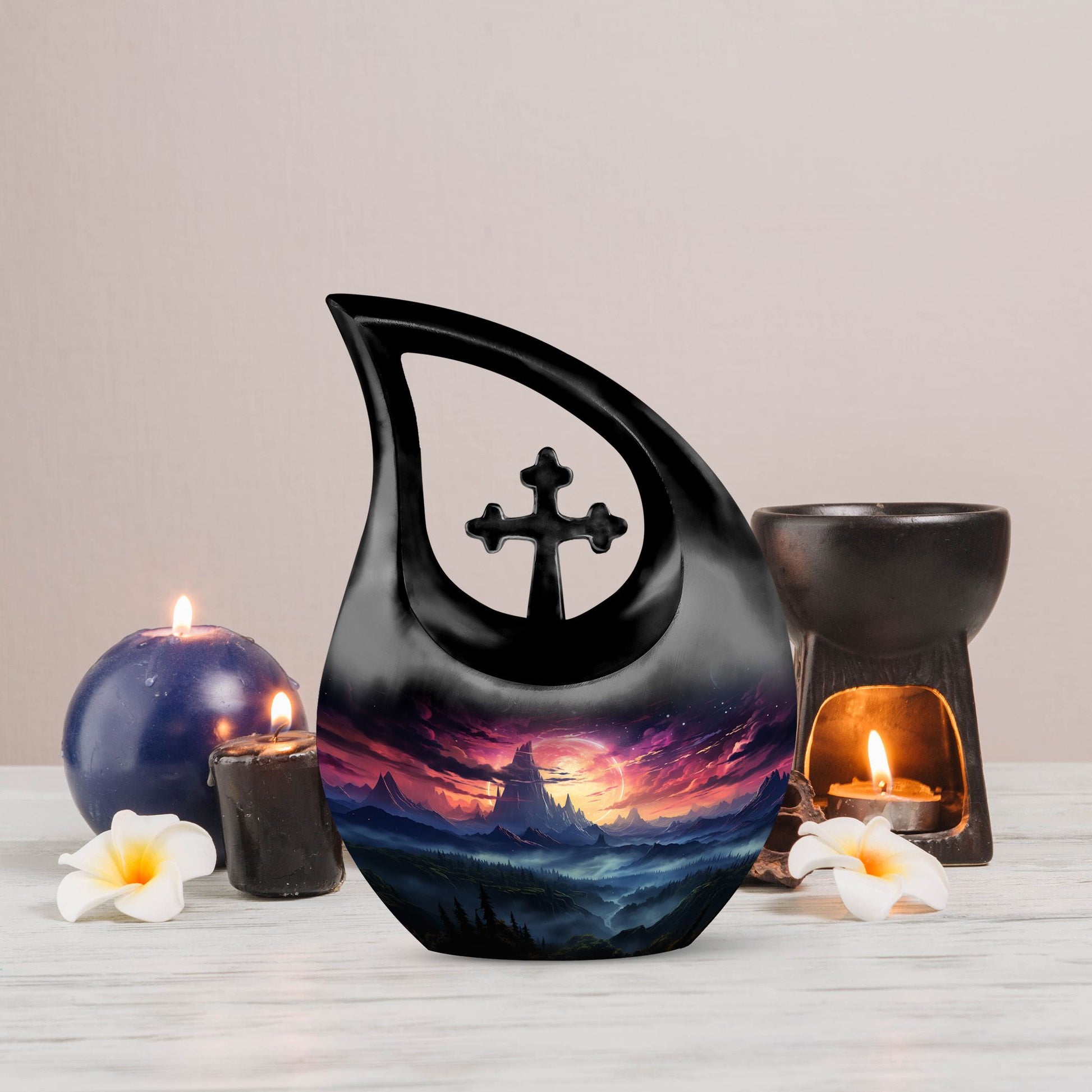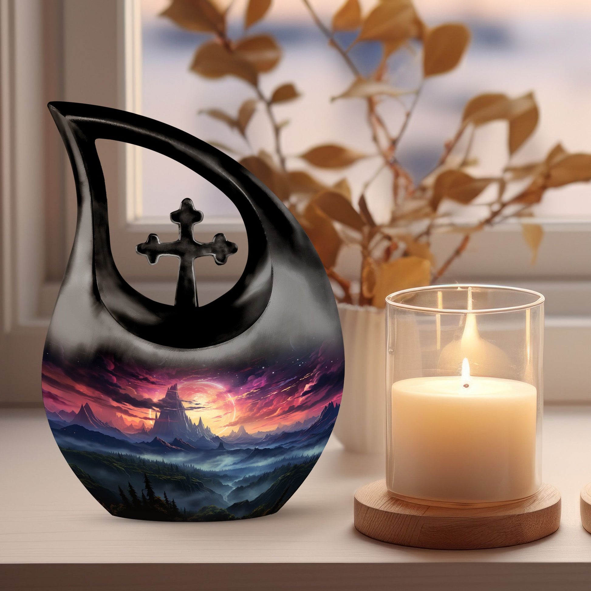 Honor the everlasting memory of a beloved woman with this Custom Landscape Cremation Urn, a heartfelt vessel designed to celebrate a life beautifully lived. This elegant piece serves as a gentle reminder of love, warmth, and cherished memories, making it one of the most meaningful funeral urns for women and adult urns for human ashes women. The serene landscape design symbolizes peace and eternal rest, offering comfort to families during remembrance.