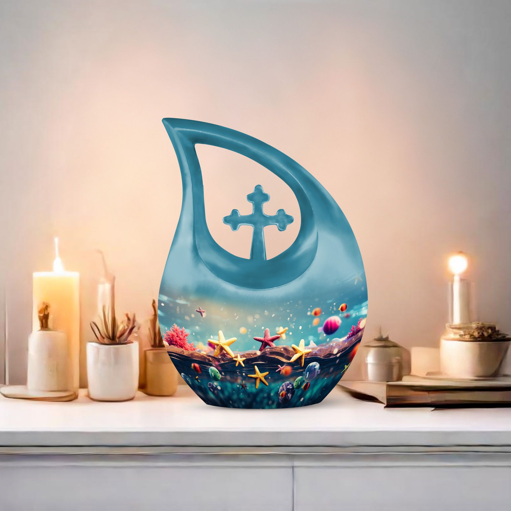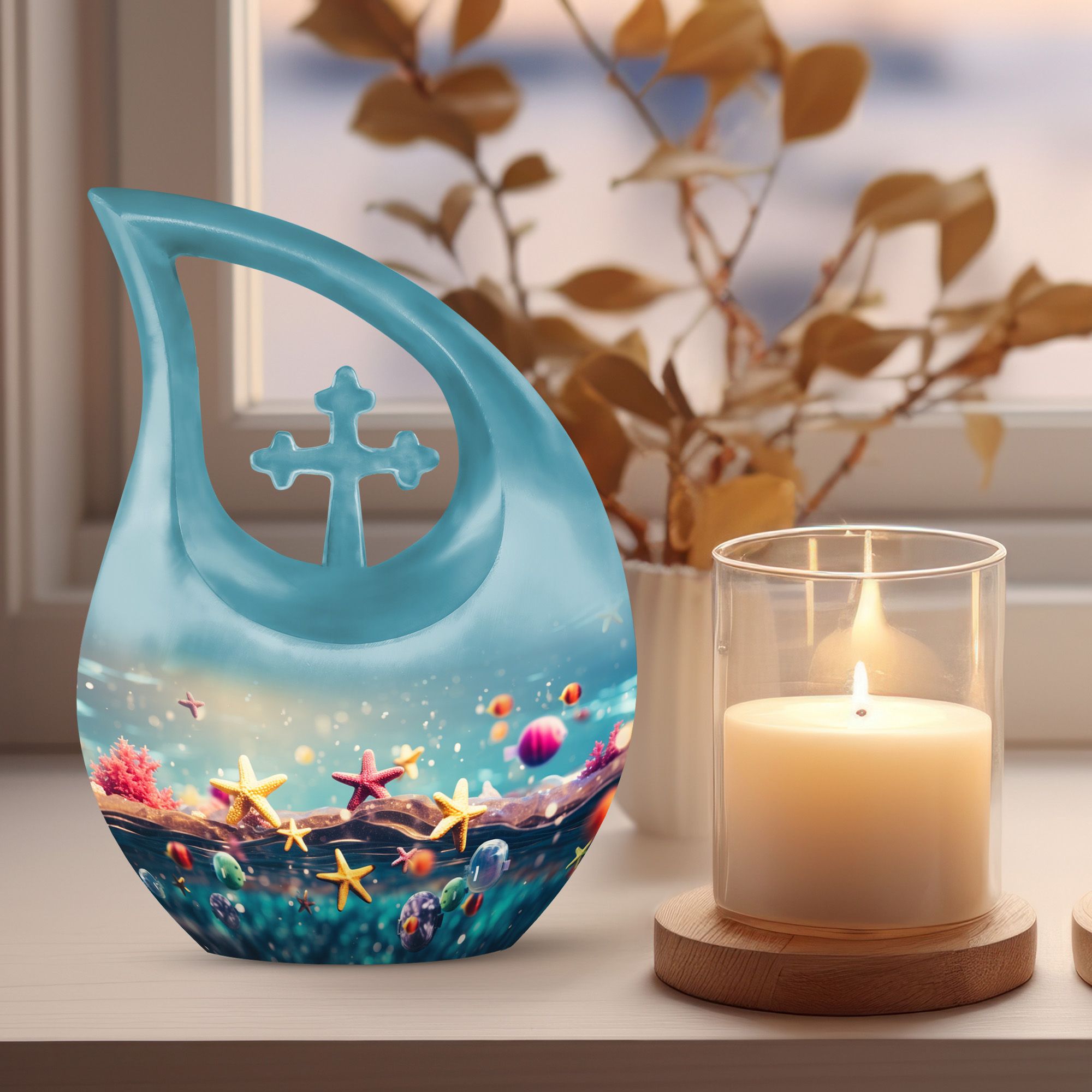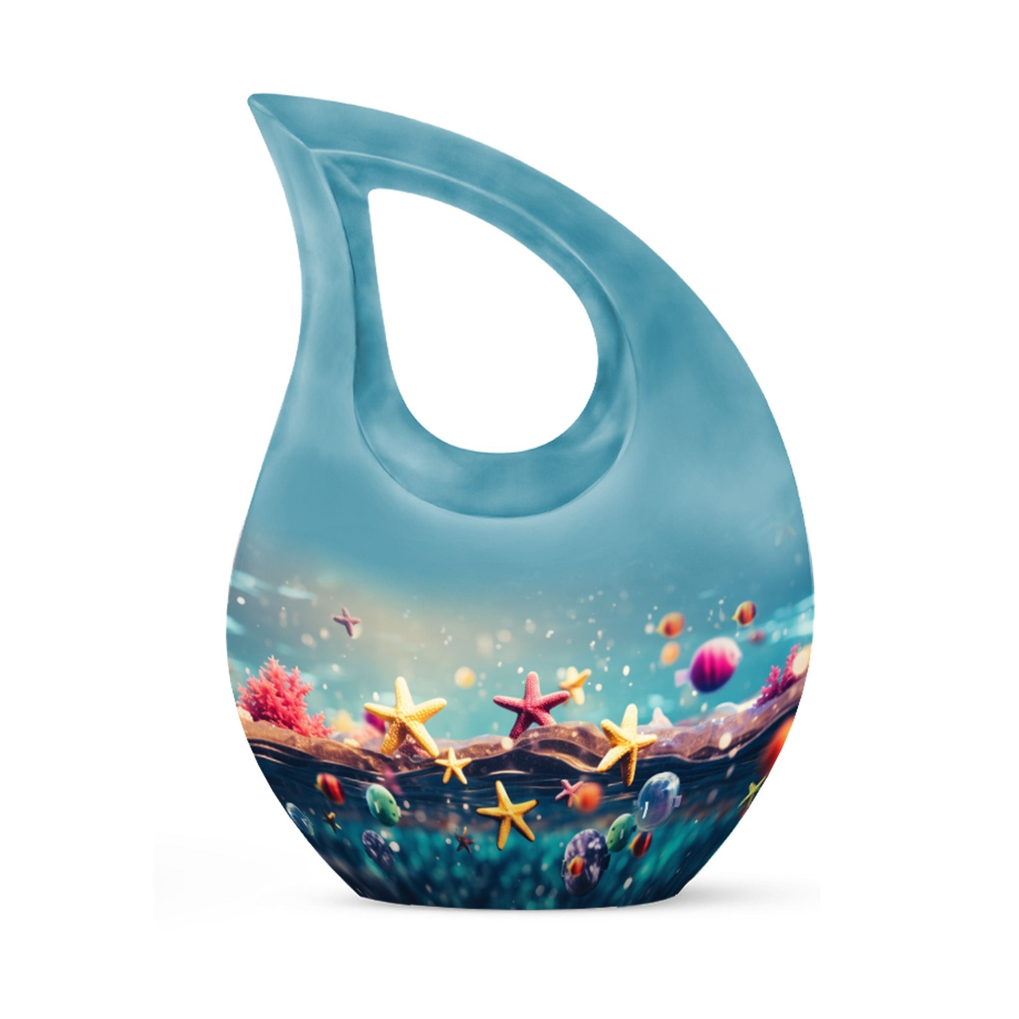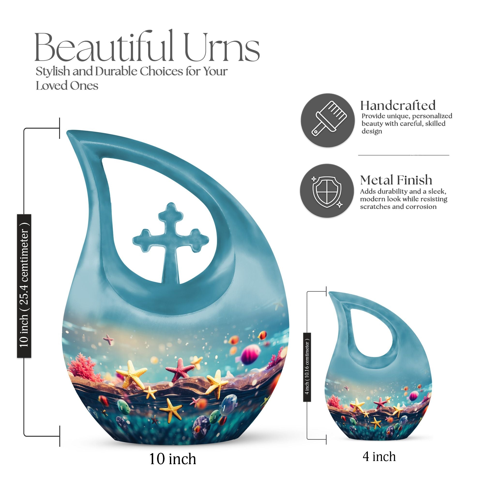 Honor your loved one's memory with this Starfish Memorial Urn for Cremation, a peaceful underwater-themed tribute symbolizing serenity, depth, and eternal connection. This thoughtfully crafted urn combo set is ideal for families seeking an urn for human ashes adult female, cremation urns for human ashes adult male, or a dignified option for burial urns for human ashes adult male.