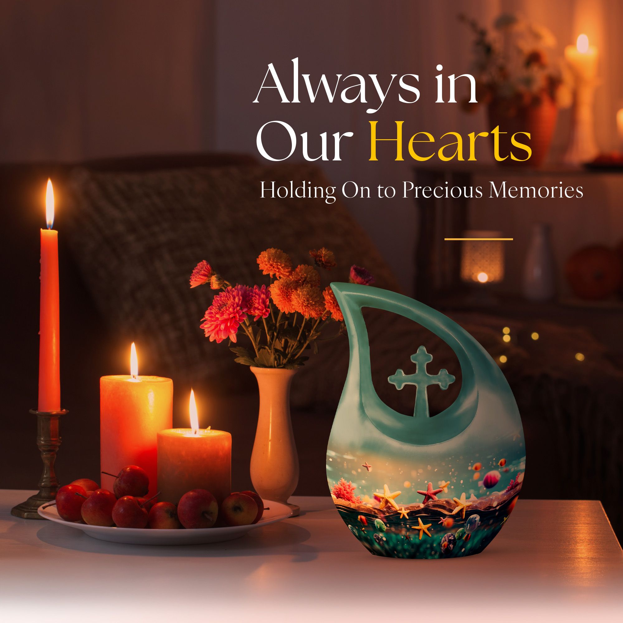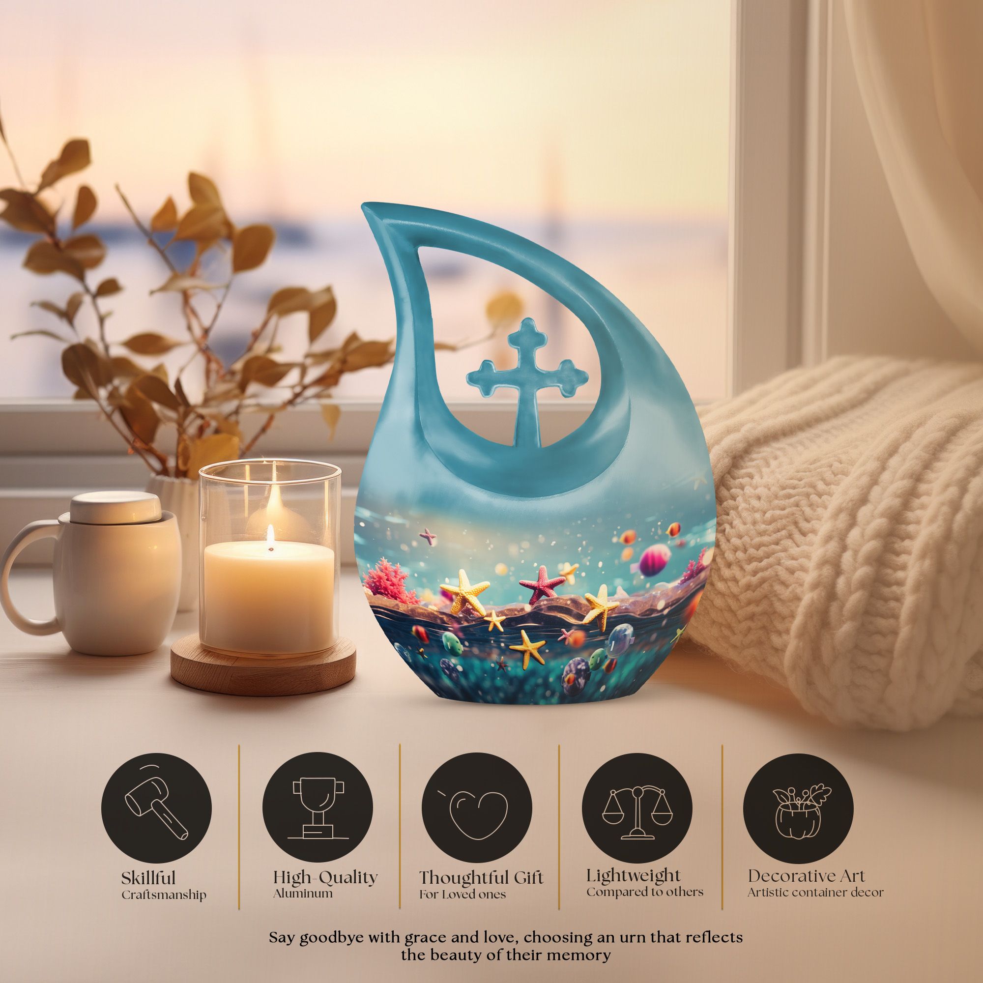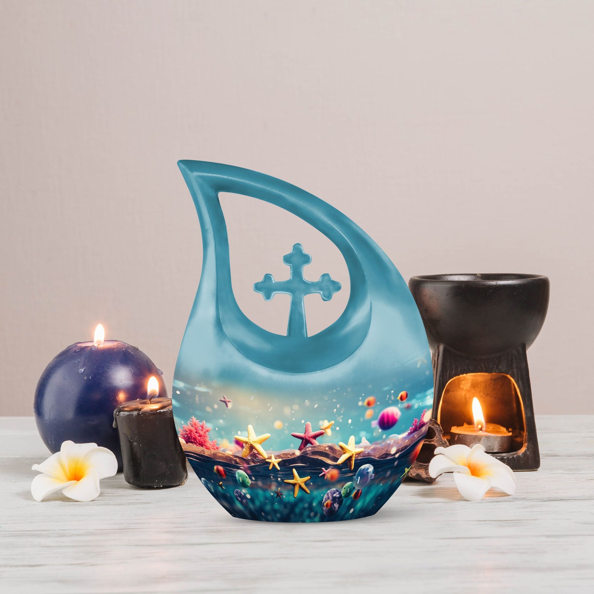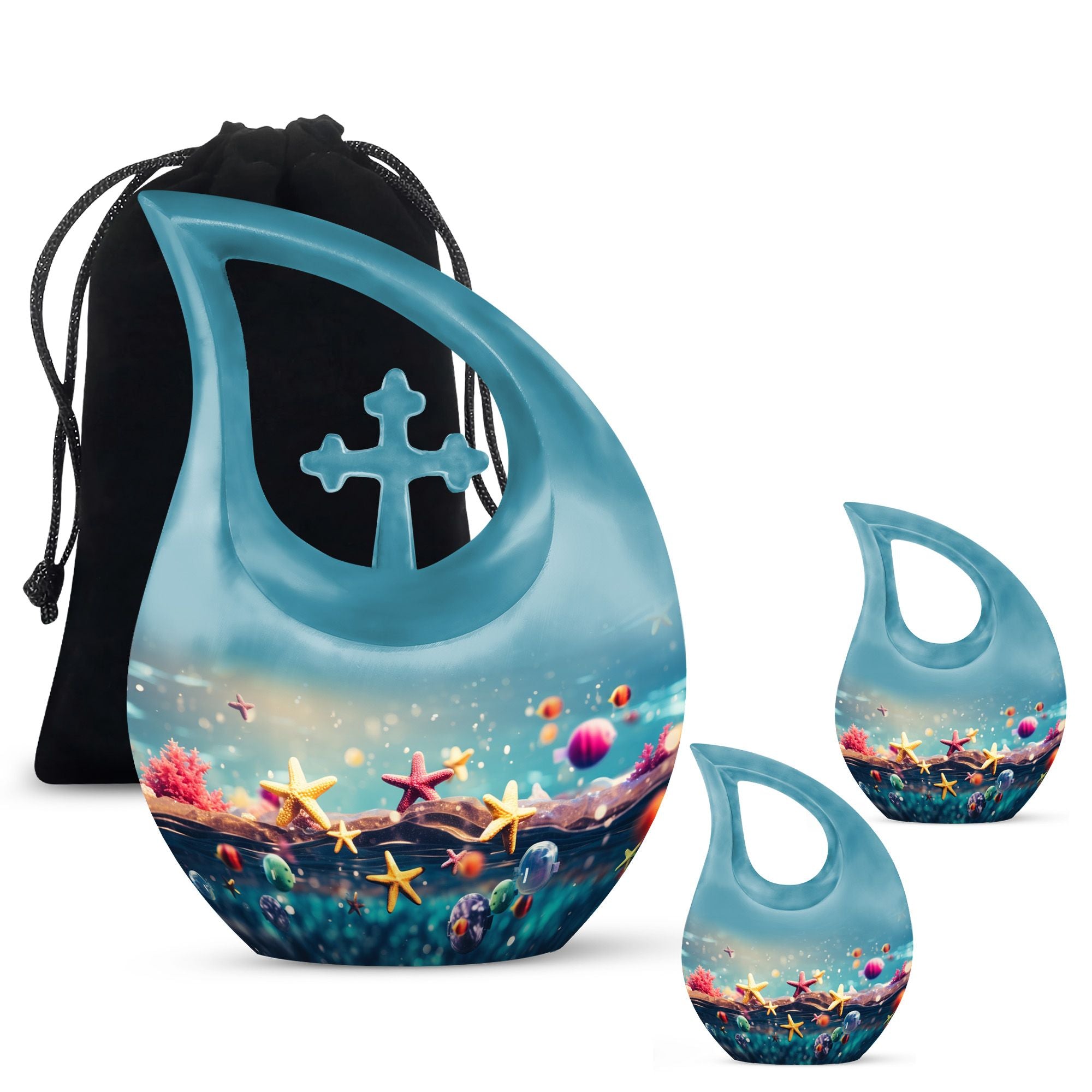 Honor your loved one's memory with this Starfish Memorial Urn for Cremation, a peaceful underwater-themed tribute symbolizing serenity, depth, and eternal connection. This thoughtfully crafted urn combo set is ideal for families seeking an urn for human ashes adult female, cremation urns for human ashes adult male, or a dignified option for burial urns for human ashes adult male.