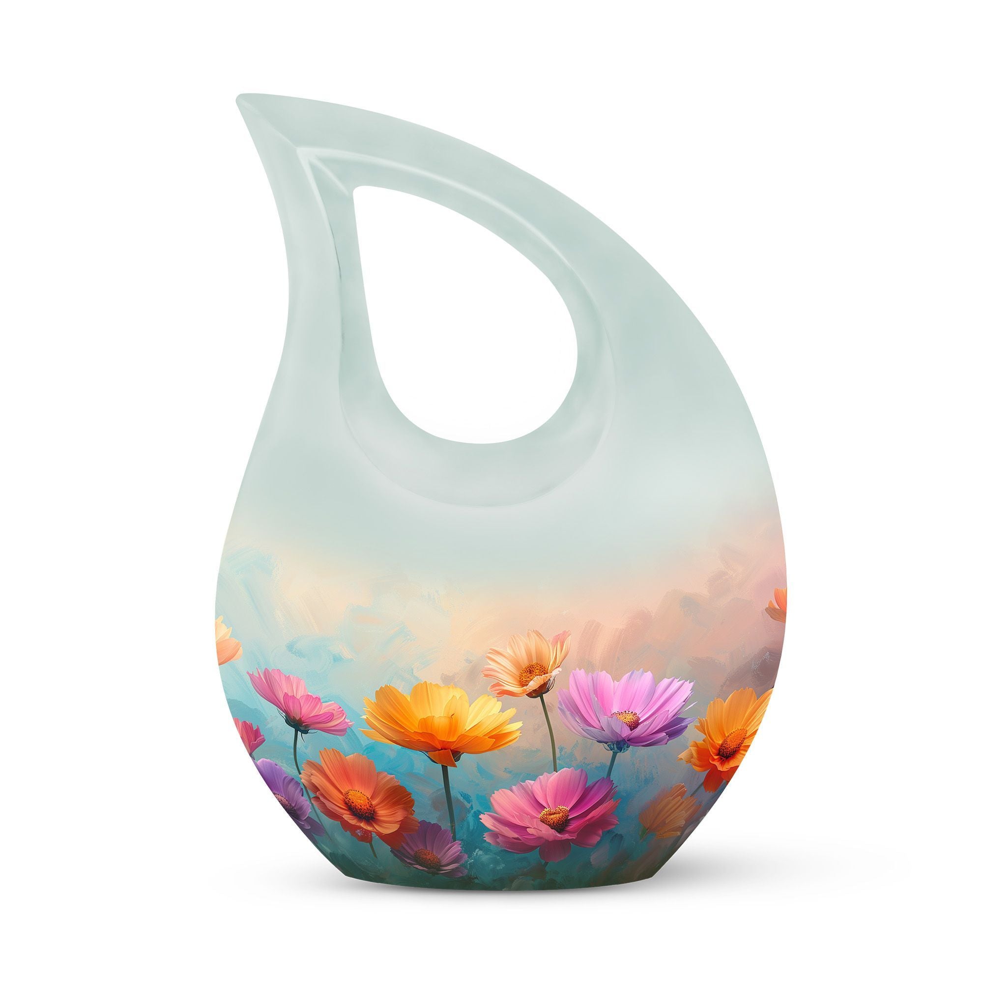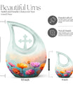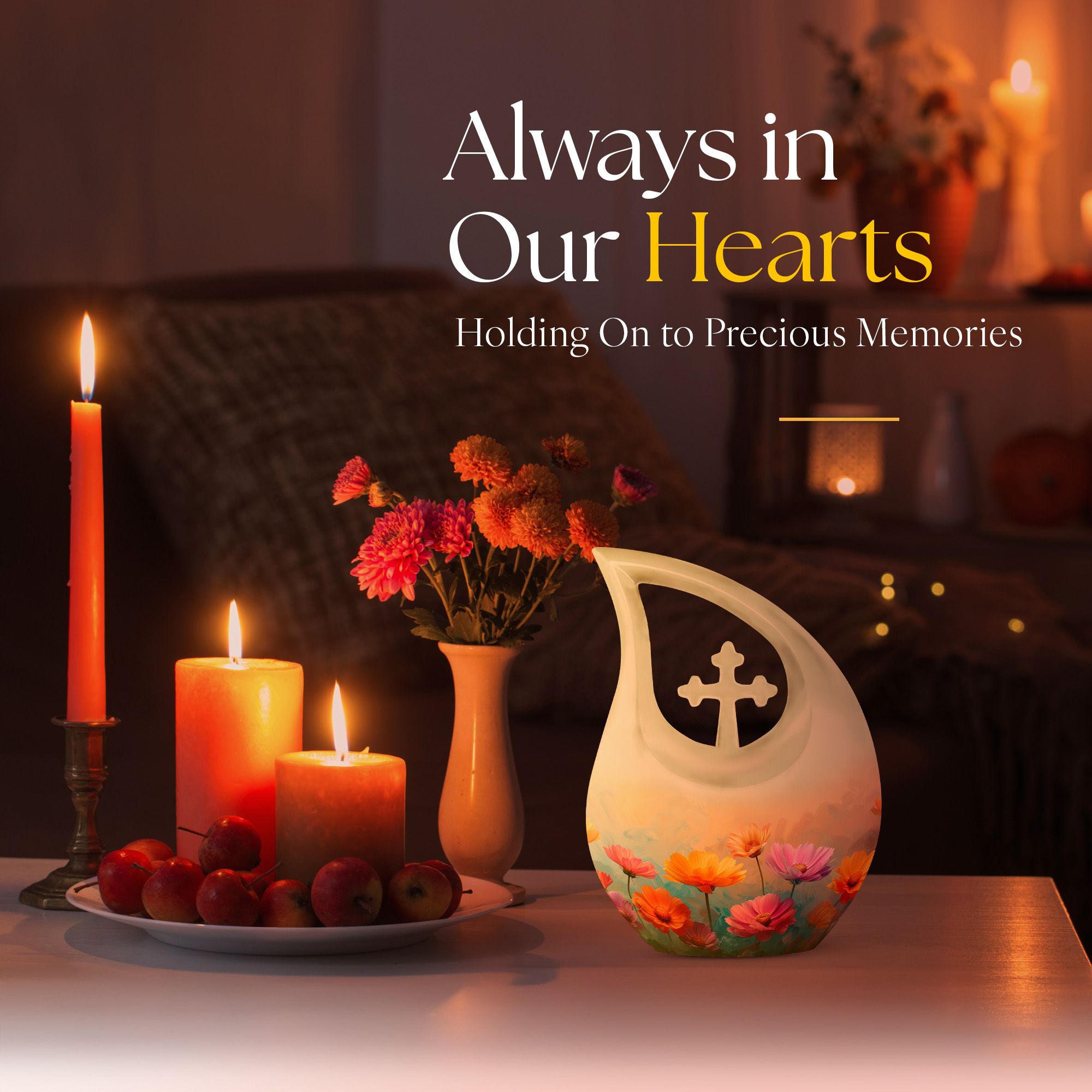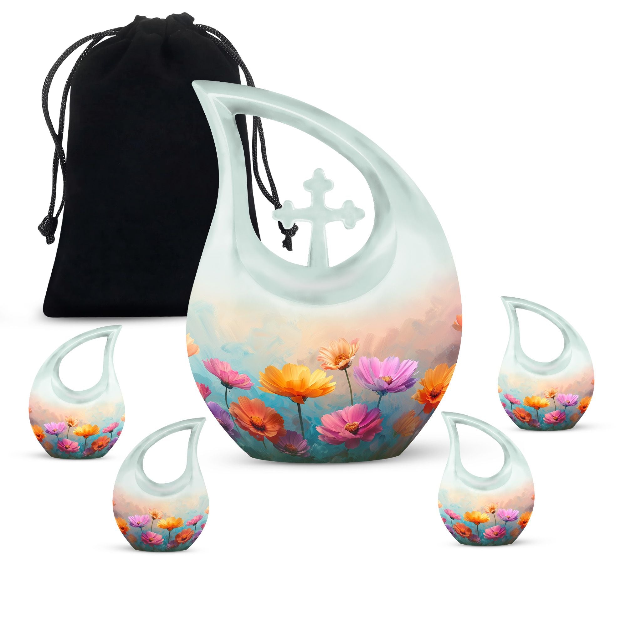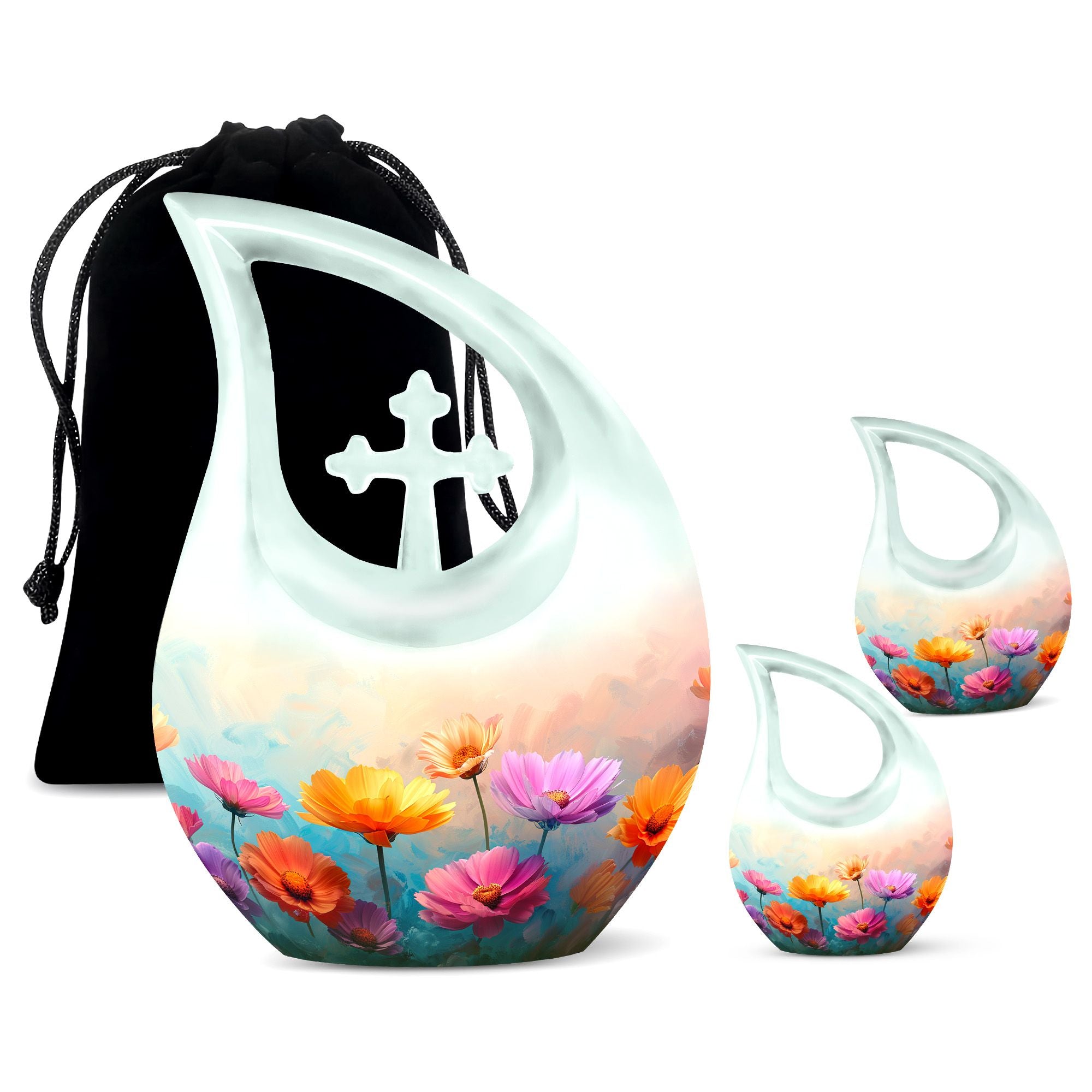 Honor the memory of your beloved with our Dreamy Blossoms A Urn, a perfect choice for those seeking large urns or double urns for ashes. Encased within this 10-inch urn, are plentiful memory spaces with its capacity of 200 cubic inches. It weighs a solid but manageable 3.3 pounds and is constructed from quality and lasting aluminium. Its motif features a tasteful cross drop, invoking a sense of reverence and peace. The package includes a soft velvet pouch for tasteful containment and discreet storage of ashes. What gives the Dreamy Blossoms A Urn its unique identity, is the offered customization. Personalize this remarkable piece with engraved names to make a heart-touching tribute to your loved ones. This product is ideal for those seeking unique urns for ashes or cheap cremation urns without sacrificing quality. Celebrate their life journey with our Dreamy Blossoms A Urn. Please note that design elements are not included in the description due to specifications.