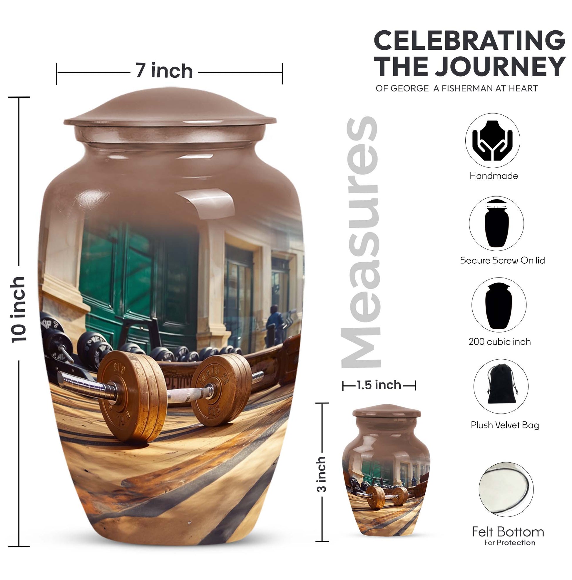 Our Dumbles Urn stands as a beacon of hope, a physical representation of cherished memories, and an elegant resting place for loved ones departed. With a height of 10 inches and a weight of 3.3 pounds, this large urn is skillfully crafted from aluminium and exhibits an abstract theme that evokes an ethereal aesthetic. Within the sophisticated 10-inch urn, you can securely contain your loved one's ashes up to a capacity of 200 cubic inches. Furthermore, the product arrives accompanied by a velvet pouch, designed for respectful containment of ashes. For a personal touch to this memorial urn, feel free to customize it with engraved names, transforming it into a heartfelt token of remembrance. This beautiful remembrance piece, perfect for mom, is part of our carefully curated collection of cremation personalized urns for human ashes for adults. Whether you’re looking for burial urns or memorial urns, our Dumbles Urn is a fitting tribute to those who have touched our lives and left enduring memories.