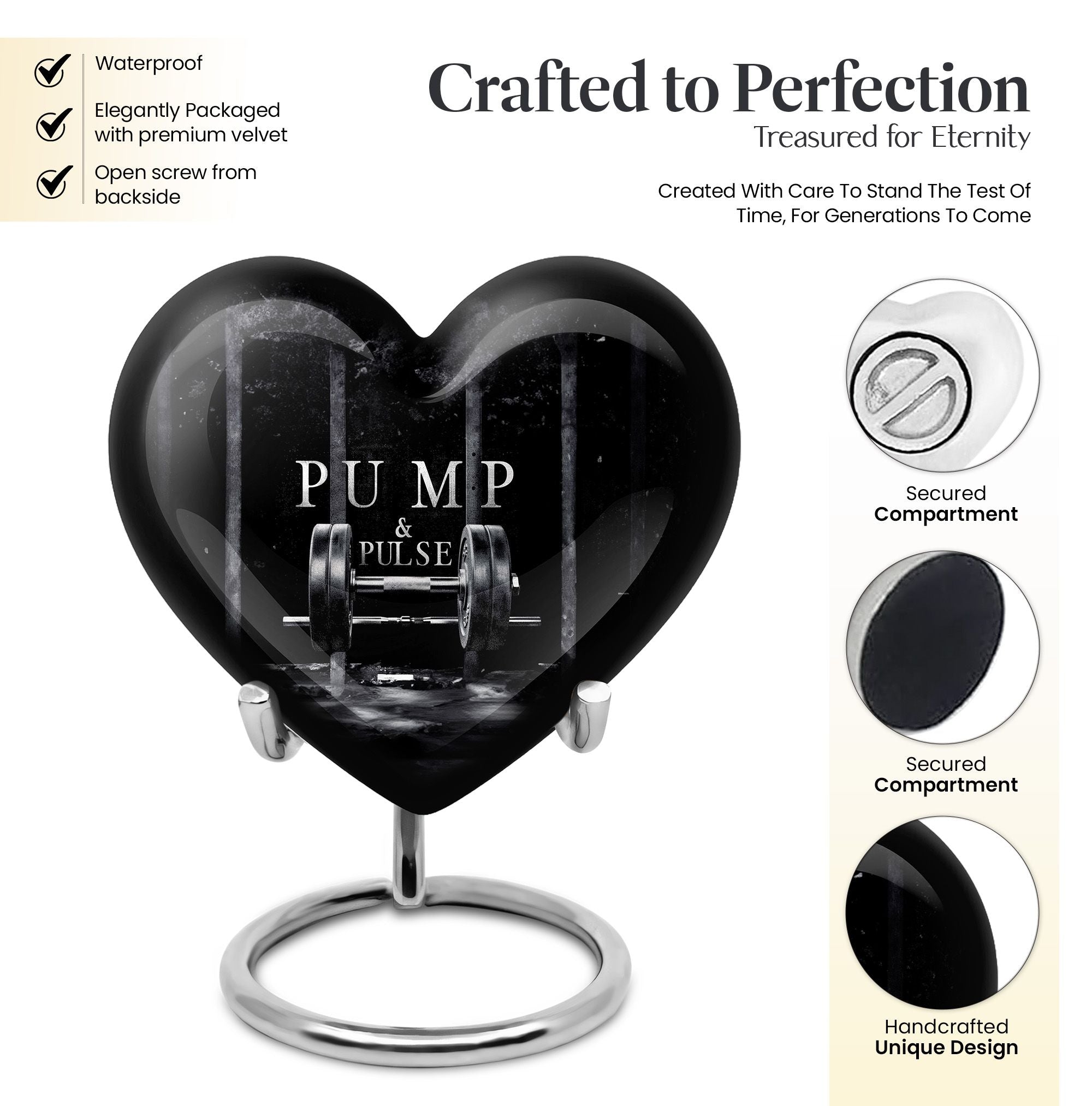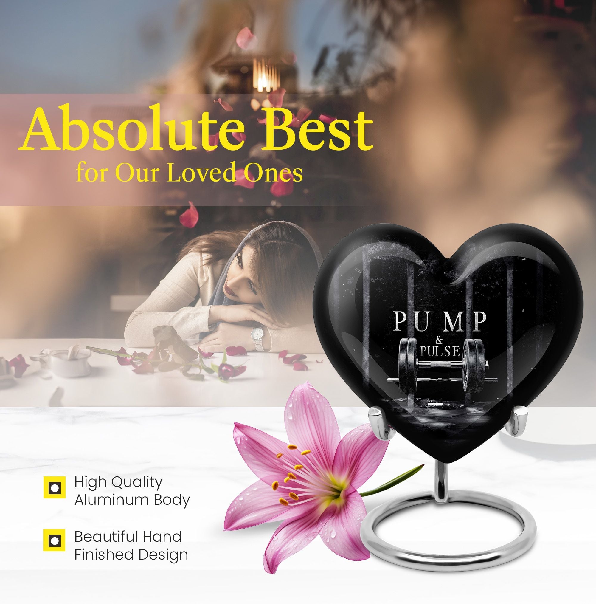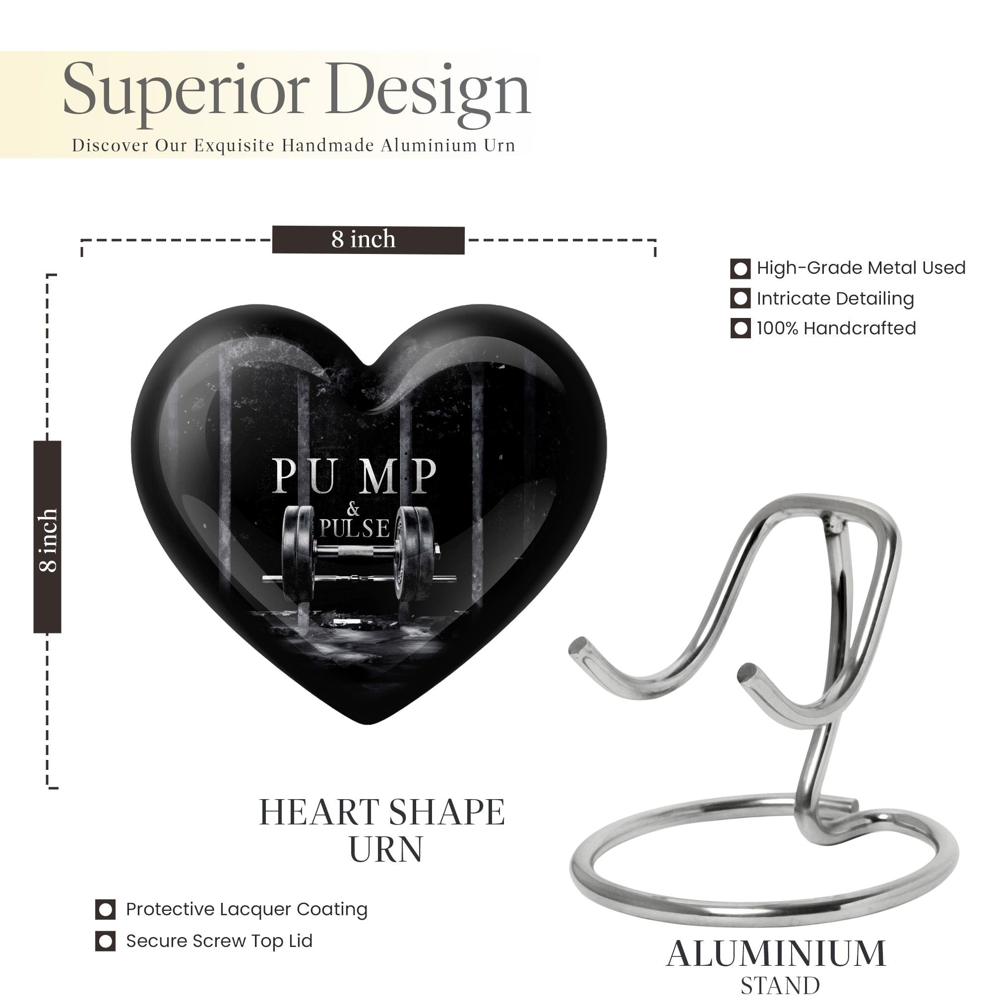 Add a touch of reverence to your memorial ceremony supplies with our remembrance 'Dumbles Urn'. Crafted meticulously from durable aluminium, this cremation medium urn is designed for lasting endurance. Its generous size measures 10 inches in height and can hold up to a substantial 200 cubic inches in capacity. Weighing at a solid 3.3 pounds, this burial urn for adult ashes conveys stability and prestige. For added convenience, it comes with a silky velvet pouch, posing as a dignified containment for ashes. The standout feature of the 'Heart Urn' allows you to personalize it with engraved names, making this an intimate and sentimental choice for both adult male and female ashes. As part of our large urns collection, the 'Dumbles Urn' seamlessly combines tradition with a contemporary edge. Unlike common memorial urns, this selection speaks volumes about your distinctive choice and profound emotions.