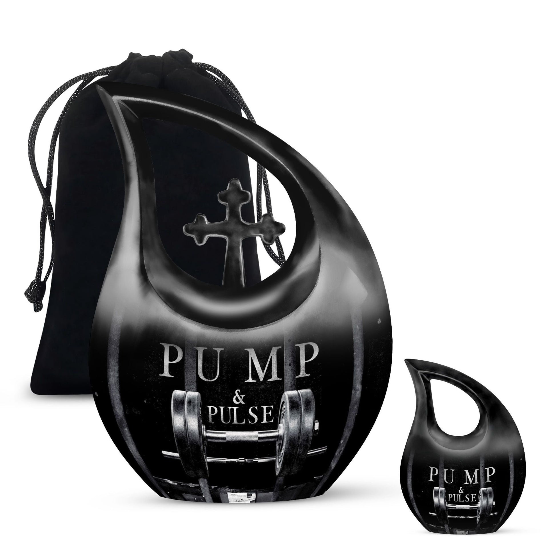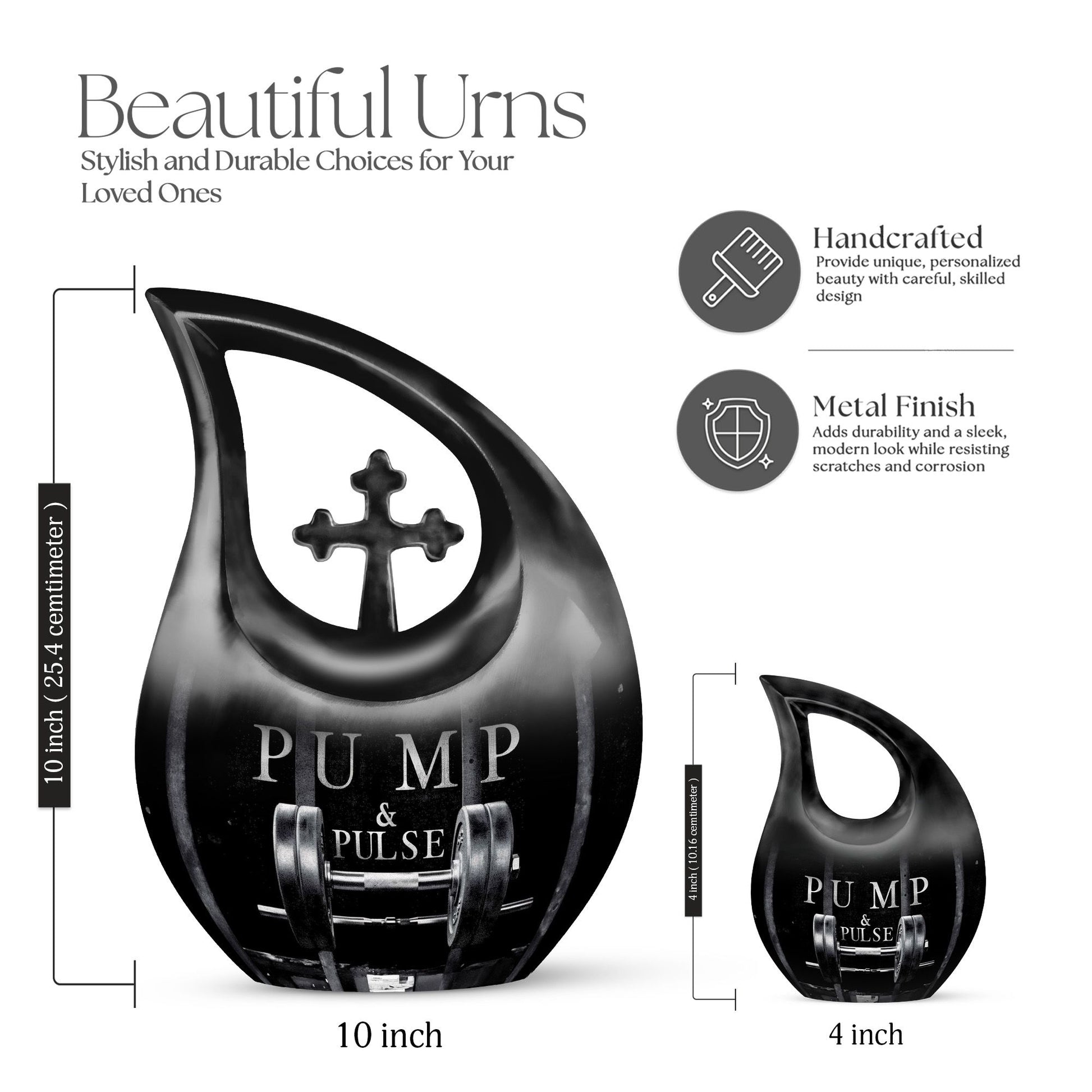 Experience the grace and meaningful remembrance of the eternal resting place for your loved ones with this exquisite 'Dumbles Urn'. This 10 inch 'Dumbles' themed urn is crafted from sturdy aluminium, providing utmost dignity to the ashes kept within. Weighing only 3.3 pounds, our 'Cross Drop' urn design silently and poignantly conveys your devotion. Each urn comes with a 200 cubic inch capacity and is accompanied by a velvet pouch, ensuring respectful containment of the ashes. Personalize the urn with engraved names, making it even more special and distinctive. This grand urn is perfect as a standalone piece or complemented with 'Companion urns' and 'Butterfly Urns For Ashes'. It also serves as a cherished cremation keepsake, anchoring to the memories of your loved ones while being an affordable alternative for cremation and burial solutions. 'Cremation Keepsakes' and 'Affordable Cremation And Burial Urn' are also valuable search terms that connect our valued customers to this product.