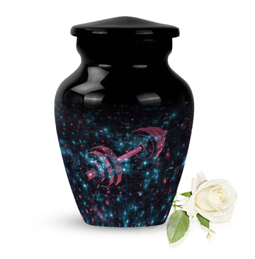 Introducing our meticulously crafted 10-Inch Dumbles Urn, a unique and respectful way to preserve the memory of your dearly departed. This large memorial funeral urn for ashes, cast from durable Aluminium, displays an abstract theme that heightens its aesthetic appeal. It stands at a striking 10 inches in height, with a substantial capacity of 200 cubic inches suited to contain nearly all ash volumes. Its weight is a sturdy 3.3 pounds, enhancing its strong and enduring build. This cremation urn is accompanied by a velvet pouch, specially designed for the secure containment of ashes. What sets this piece apart is the option for customization. Personalize this urn with engraved names to give it a touching, bespoke touch. A timeless and resilient resting place, this abstract albumen urn will be a dignified remembrance of loved ones. This product respects the tender values of memorial ceremony supplies, offering a peaceful way to recall shared memories. Highly recommended for anyone looking for funeral unique urns for human ashes or decorative urns for cremation ashes of mother and father.