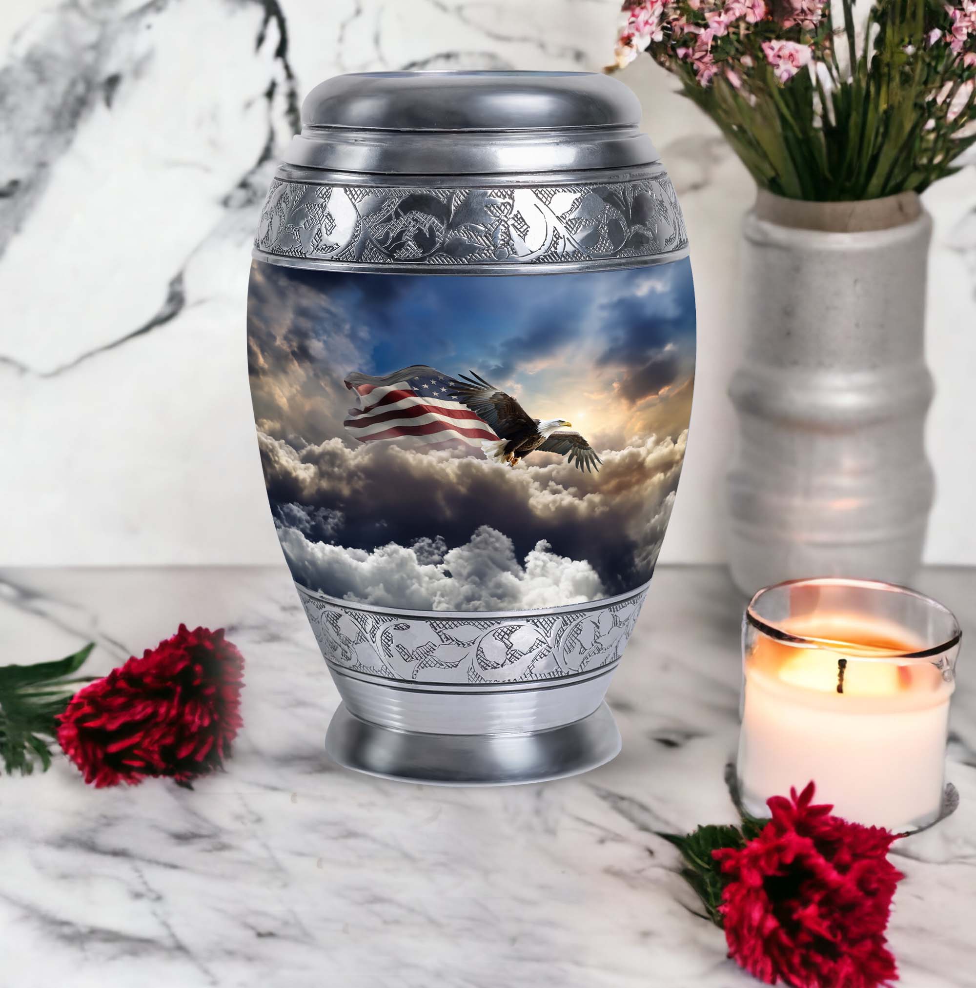 A meaningful tribute for families seeking a patriotic symbol of remembrance, this piece stands as a dignified expression of devotion—offering comfort and peace through a beautifully crafted large urn for adult ashes.