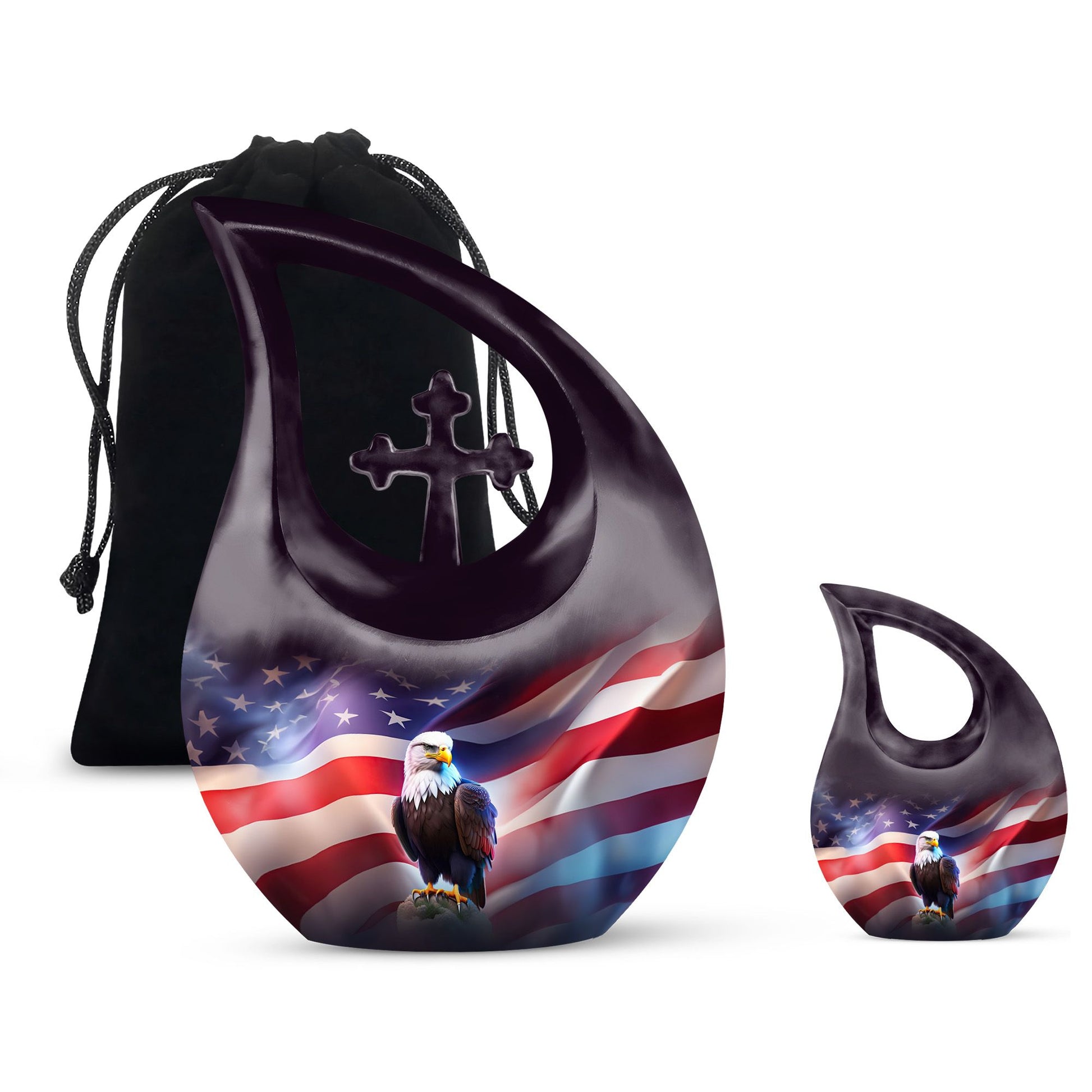 Honor your loved one with this Patriotic Eagle Memorial Urn, a powerful American flag tribute symbolizing courage, freedom, and enduring legacy. Designed for dignity and remembrance, it serves beautifully as an urn for men & women or a meaningful option for cremation urns for ashes for women.