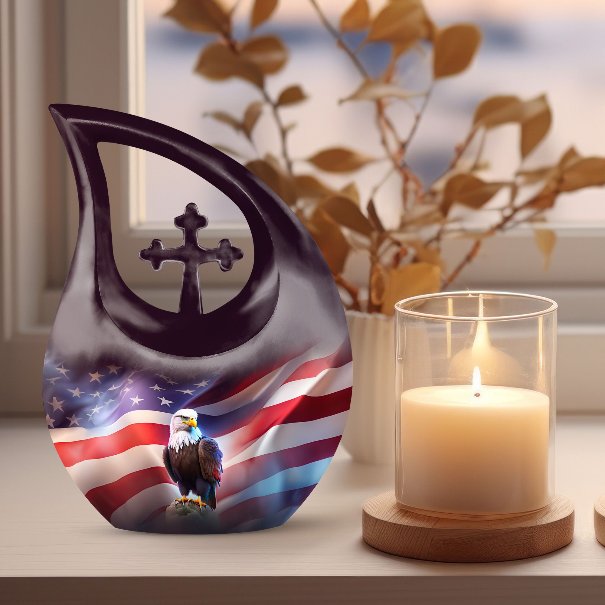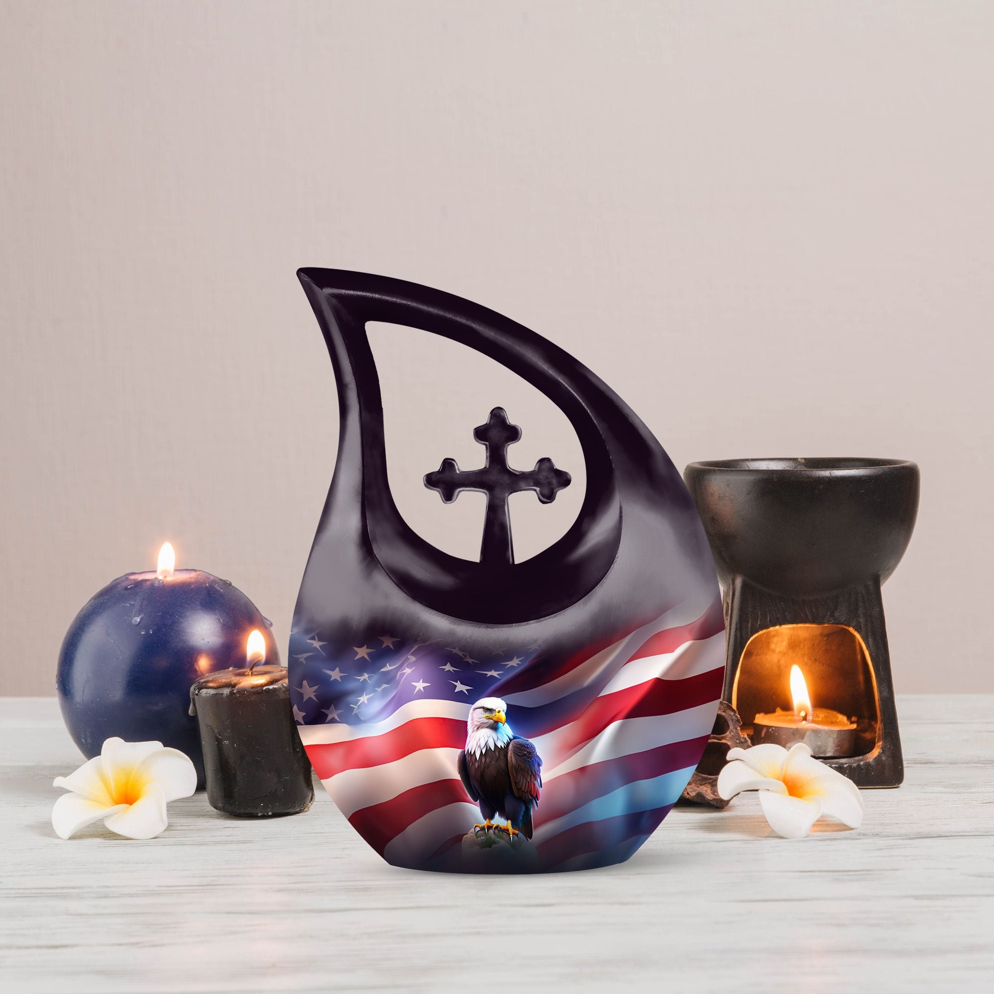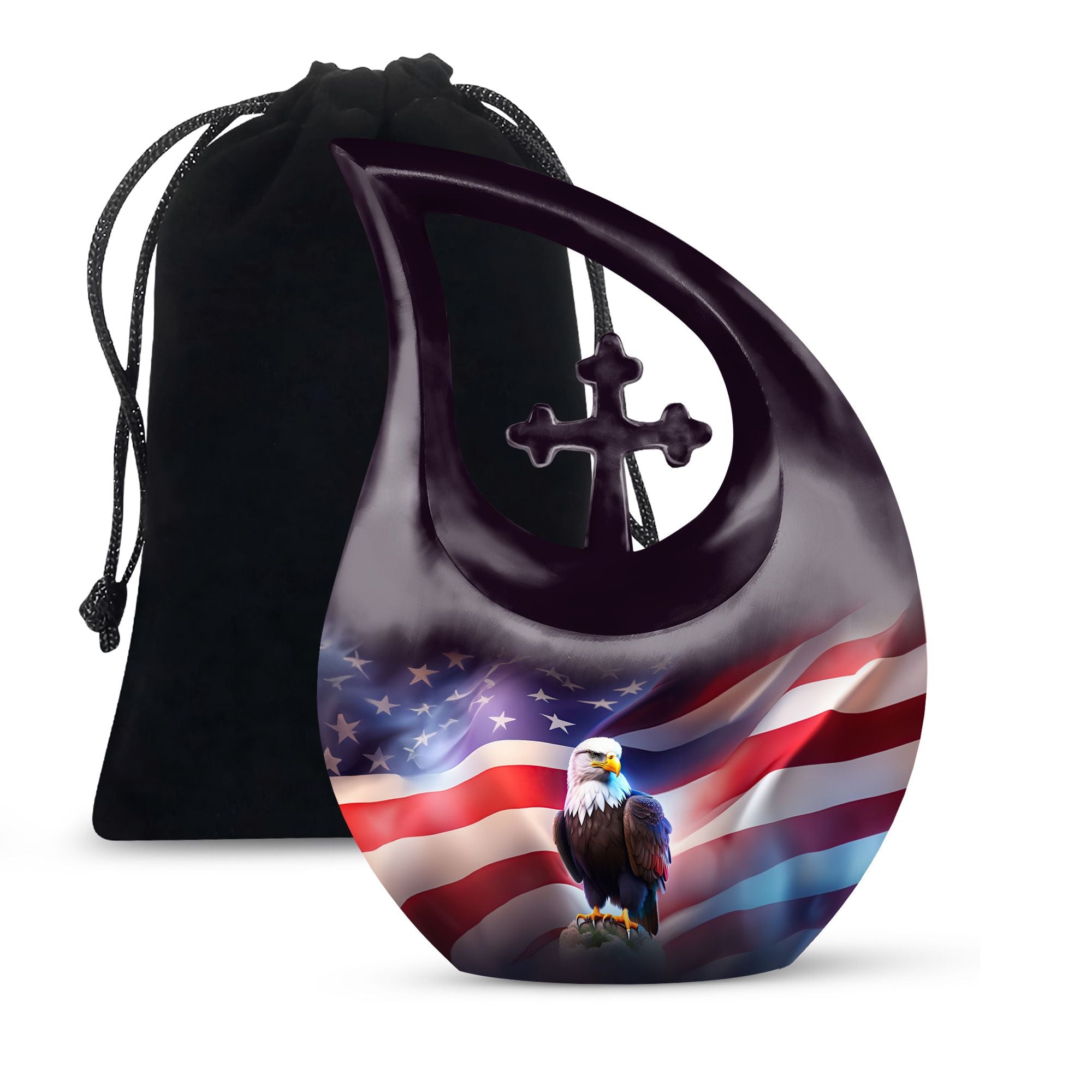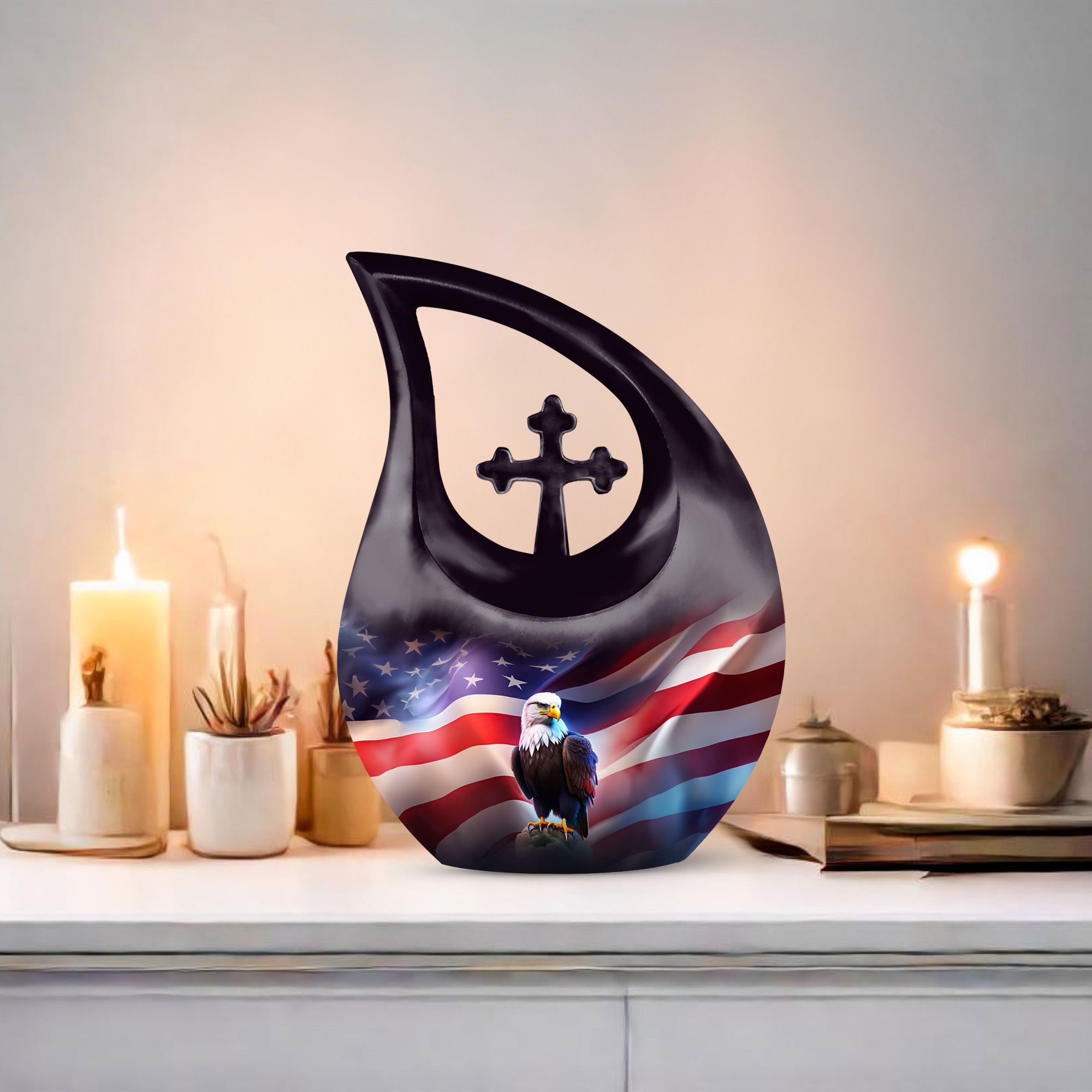 Honor your loved one with this Patriotic Eagle Memorial Urn, a powerful American flag tribute symbolizing courage, freedom, and enduring legacy. Designed for dignity and remembrance, it serves beautifully as an urn for men & women or a meaningful option for cremation urns for ashes for women.