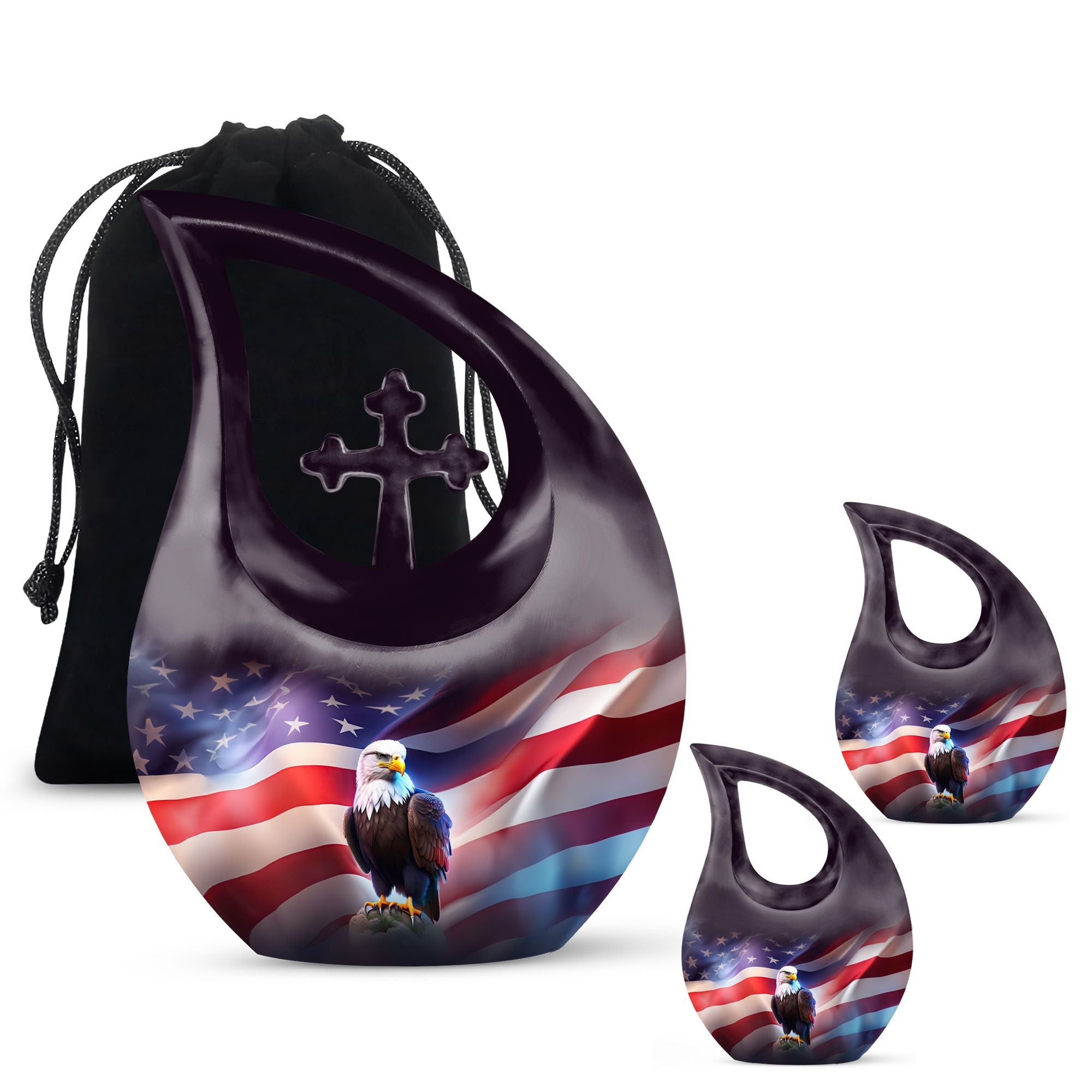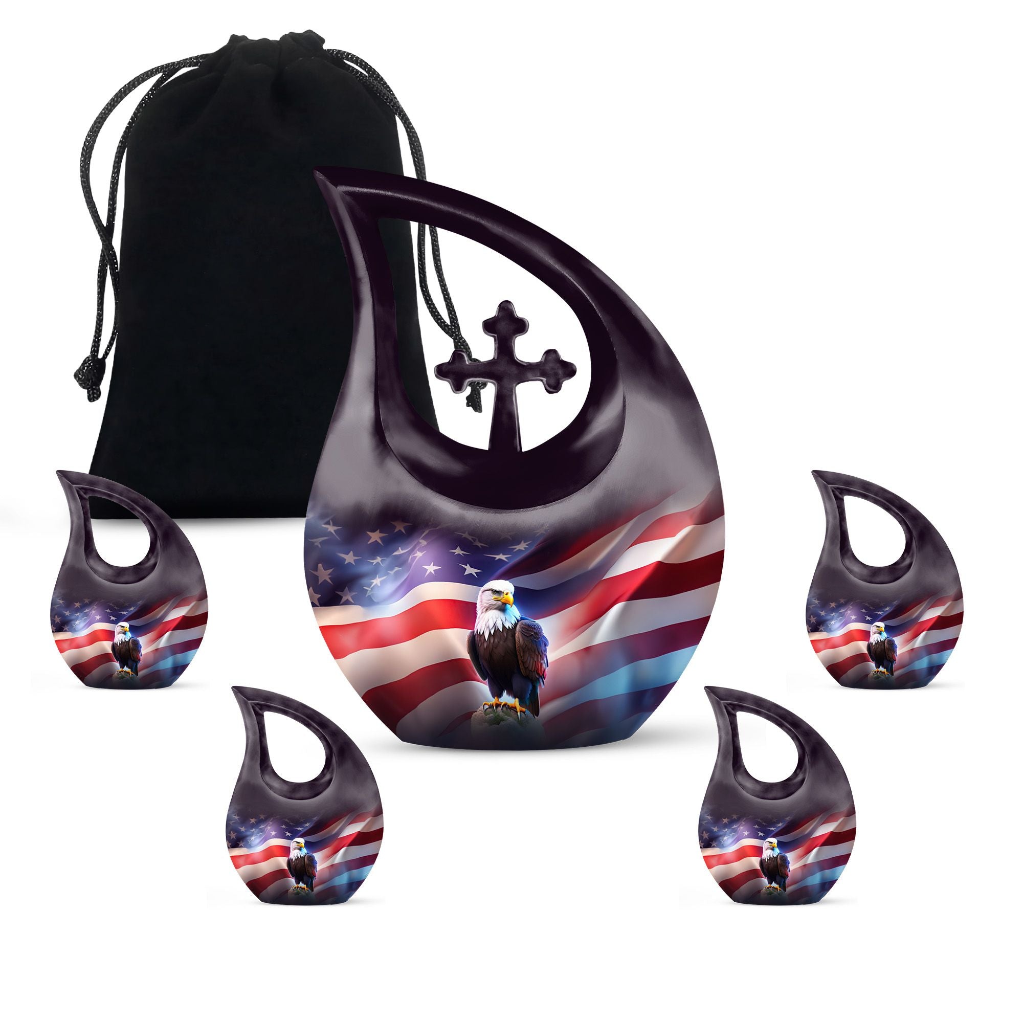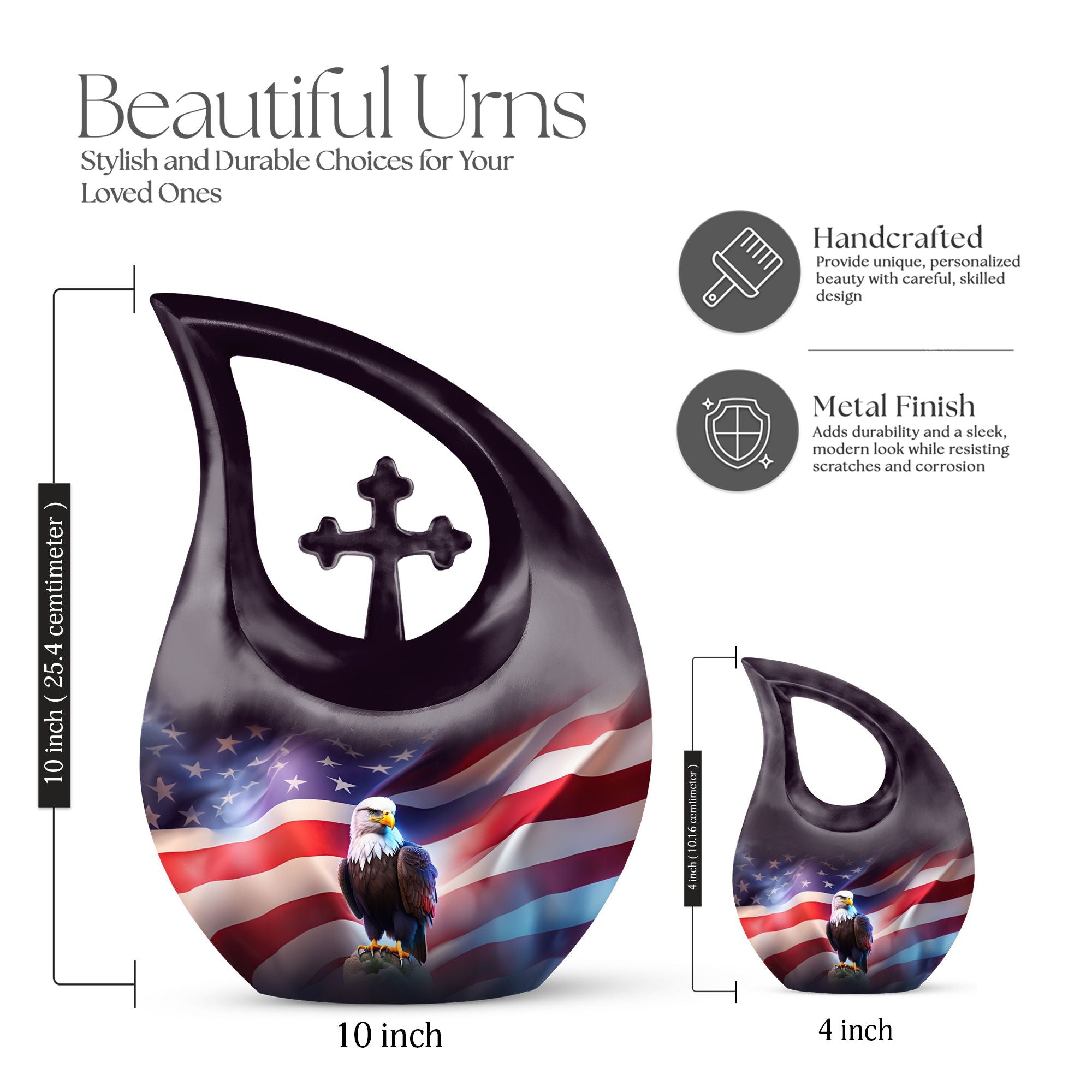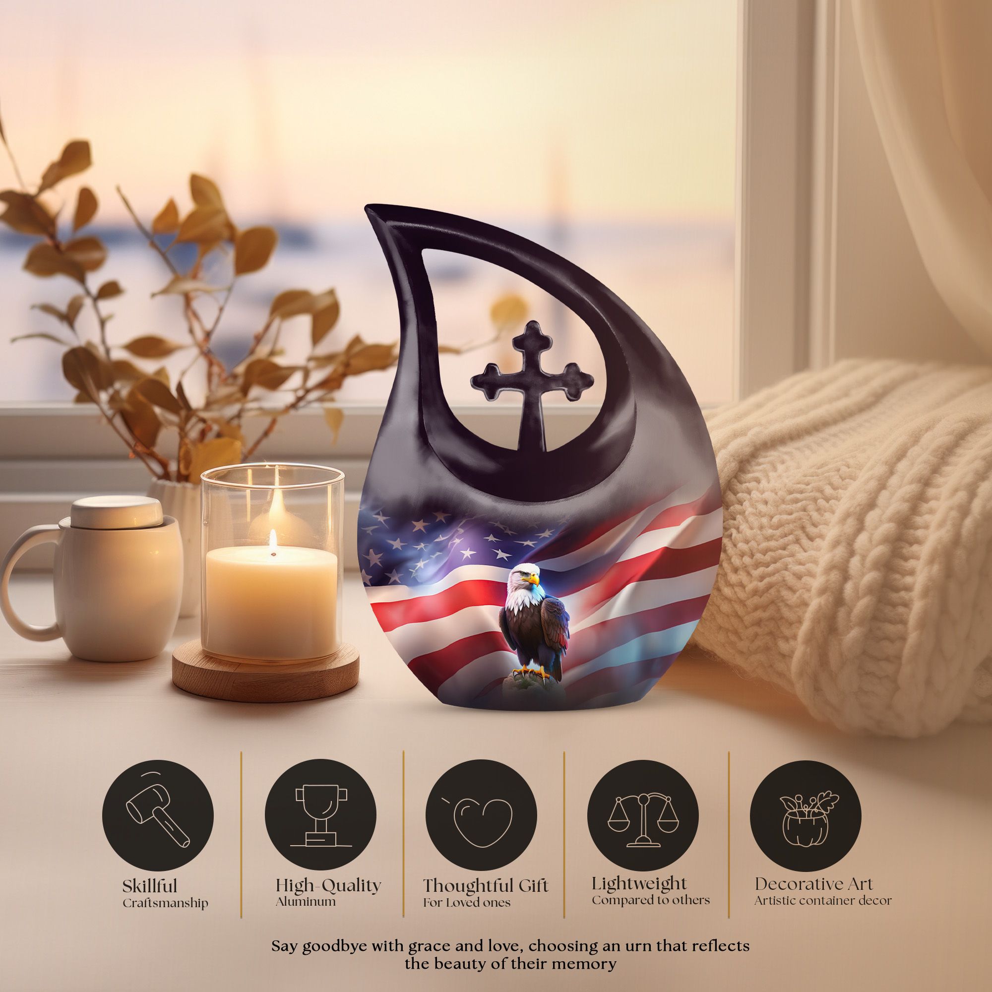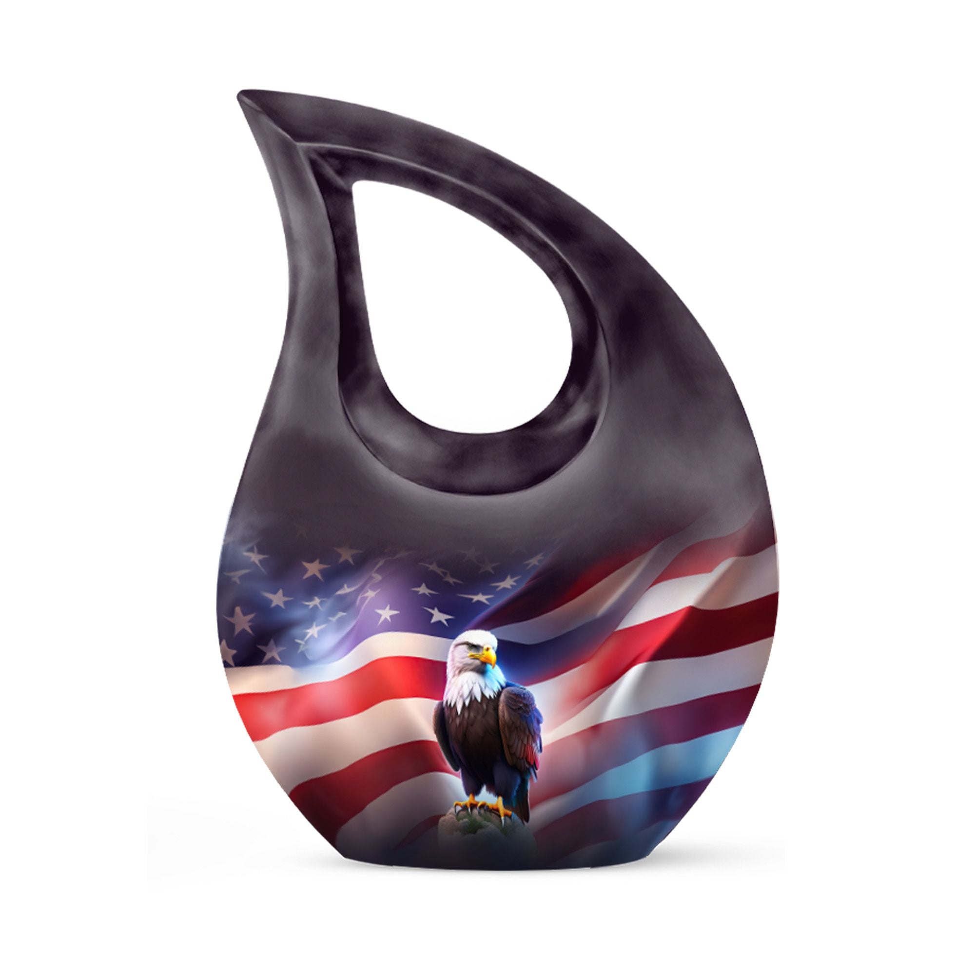 Honor your loved one with this Patriotic Eagle Memorial Urn, a powerful American flag tribute symbolizing courage, freedom, and enduring legacy. Designed for dignity and remembrance, it serves beautifully as an urn for men & women or a meaningful option for cremation urns for ashes for women.