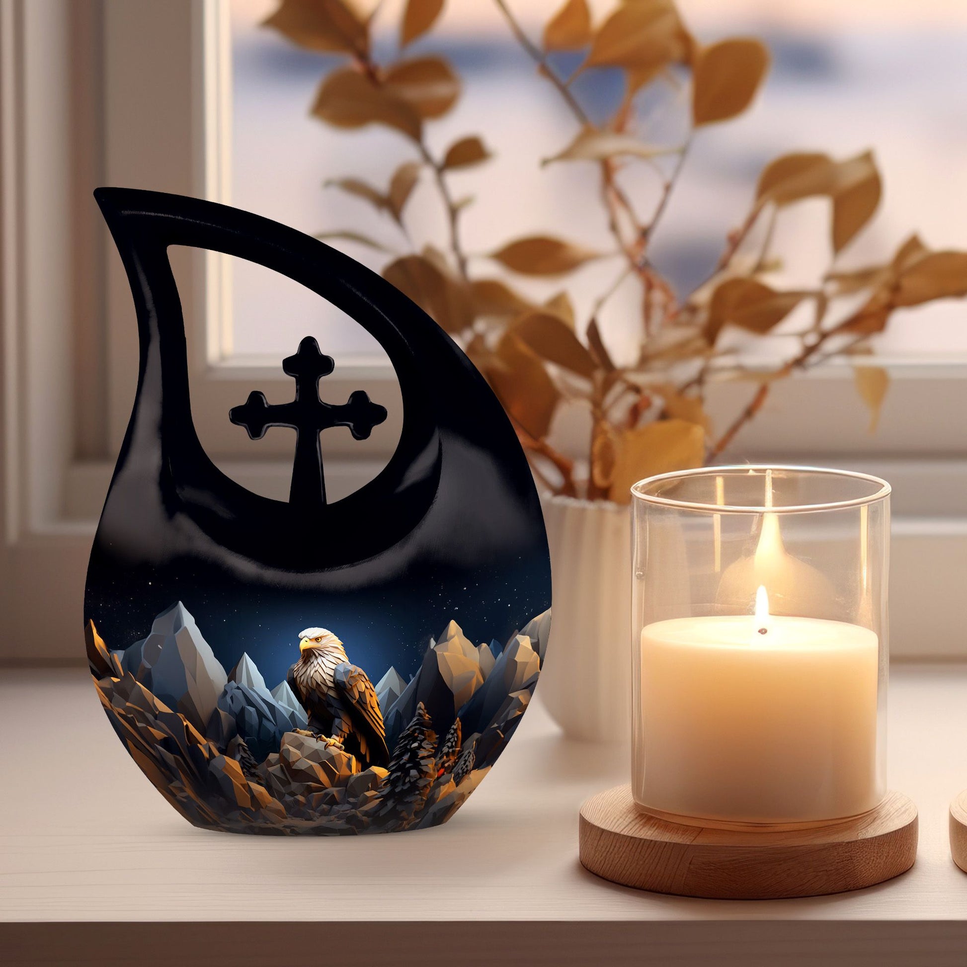 Honor a life of courage, wisdom, and strength with the Eagle Ruling Mountains Scenic Urn. This stunning memorial piece embodies the soaring spirit of an eagle above majestic peaks—an emblem of power, freedom, and peace. Designed with love and care, this urn for ashes adult male captures the essence of a life that ruled the heights with grace and purpose. Whether for a father, husband, or friend, it provides a dignified resting place for cherished memories.