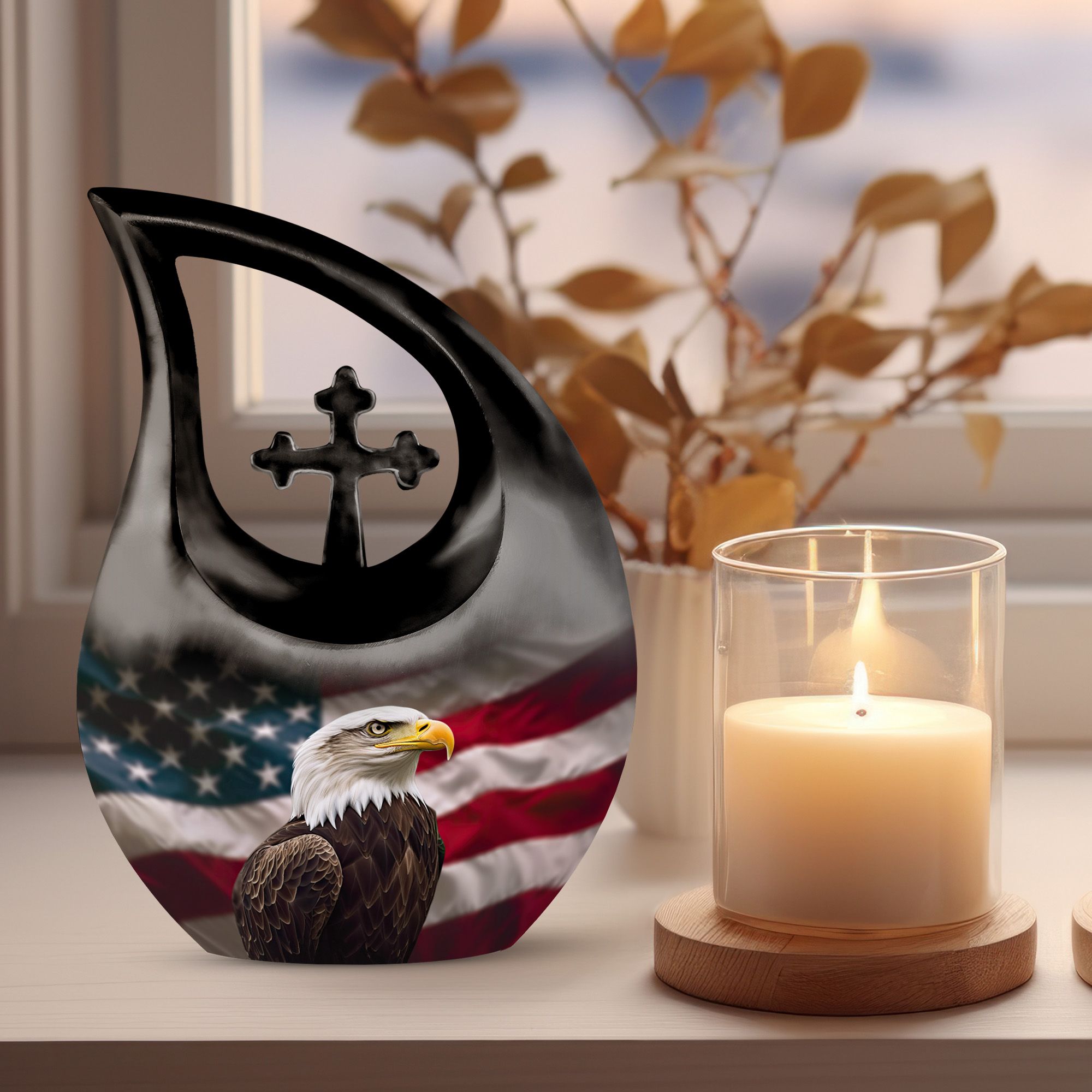 A noble and heartfelt tribute, this patriotic eagle urn symbolizes honor, remembrance, and enduring love—standing proudly as a lasting memorial for those who held America close to their heart.