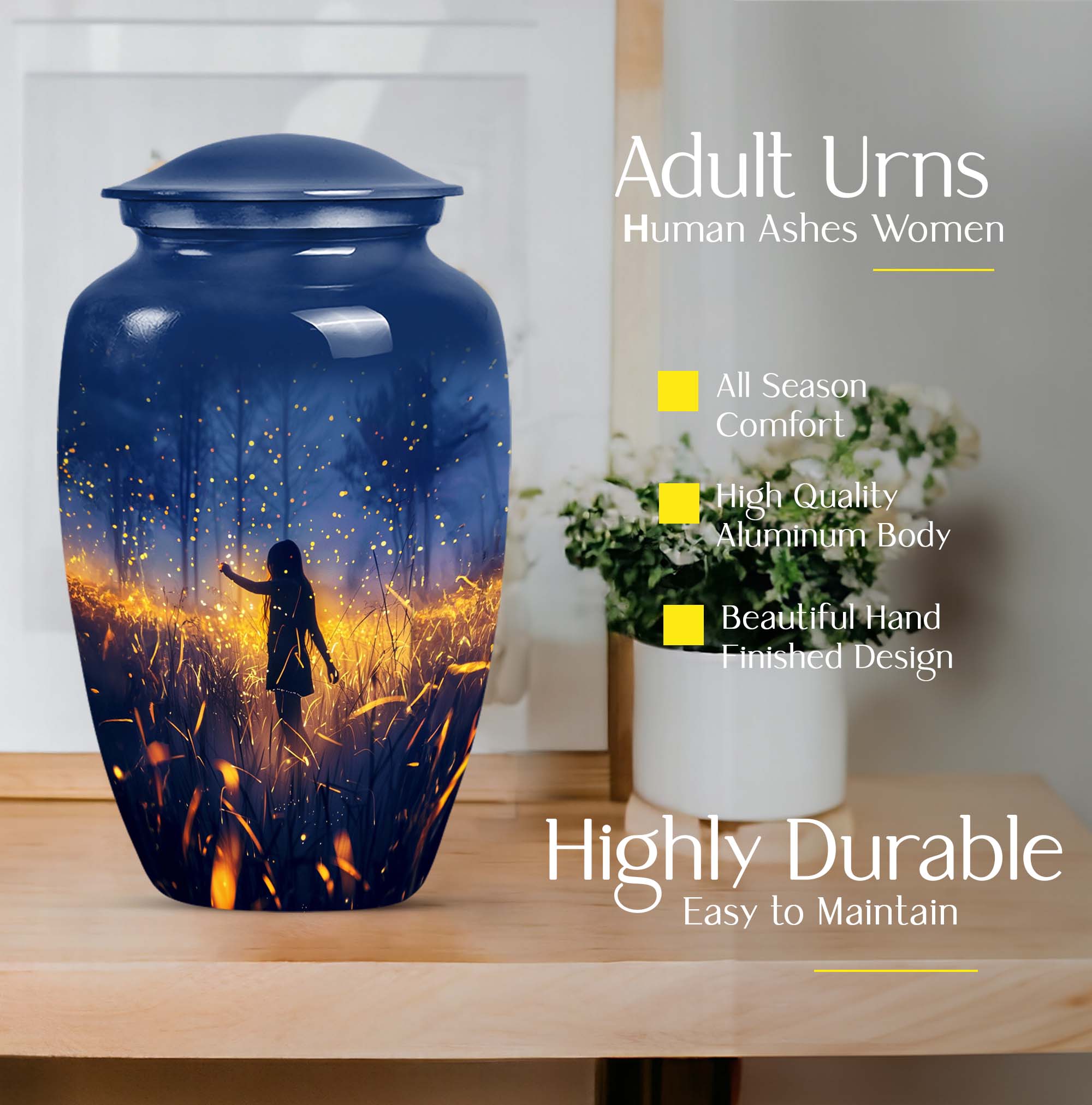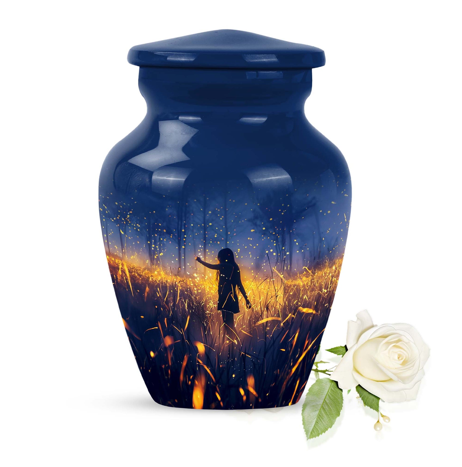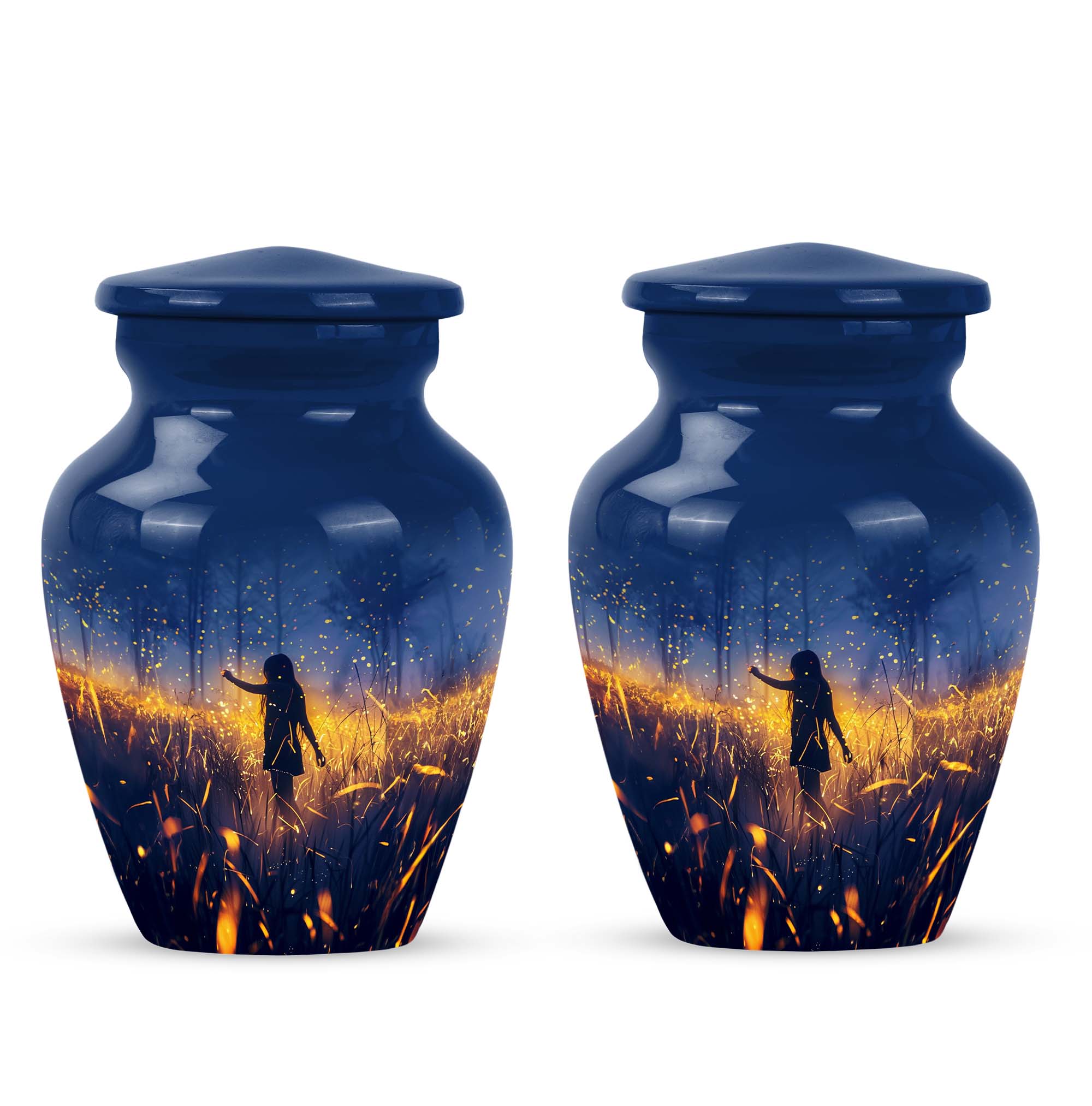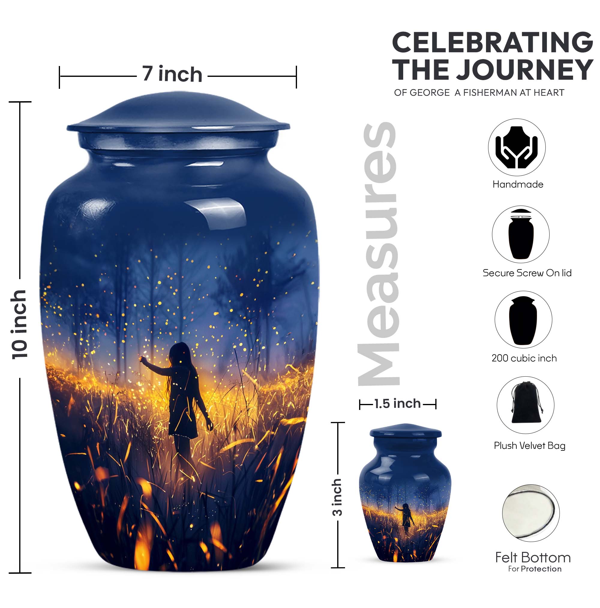 Discover the serene beauty and dignity of our 10-inch 'Twilight Forest' cremation urn, a thoughtful and respectful choice for preserving the cherished memories of your loved ones. This large urn, weighing at 3.3 pounds, is made from premium aluminium assuring durability and a classic look. Despite its substantial size, it maintains an abstract theme that can seamlessly blend into any room decor. This cremation urn for adult ashes can securely contain up to 200 cubic inches of ash, ensuring a fitting tribute to your beloved. It further comes with a plush velvet pouch for containment and safe handling of the ashes. Take advantage of our customization option to personalize this classic urn with engraved names, transforming it from not just an item but to a vessel of affectionate farewells. Ideal for both males and females, it also serves as an appropriate choice for companion cremation urns. Embrace the twilight forest urn, a harmonious blend of tradition, compassion, and elegance.