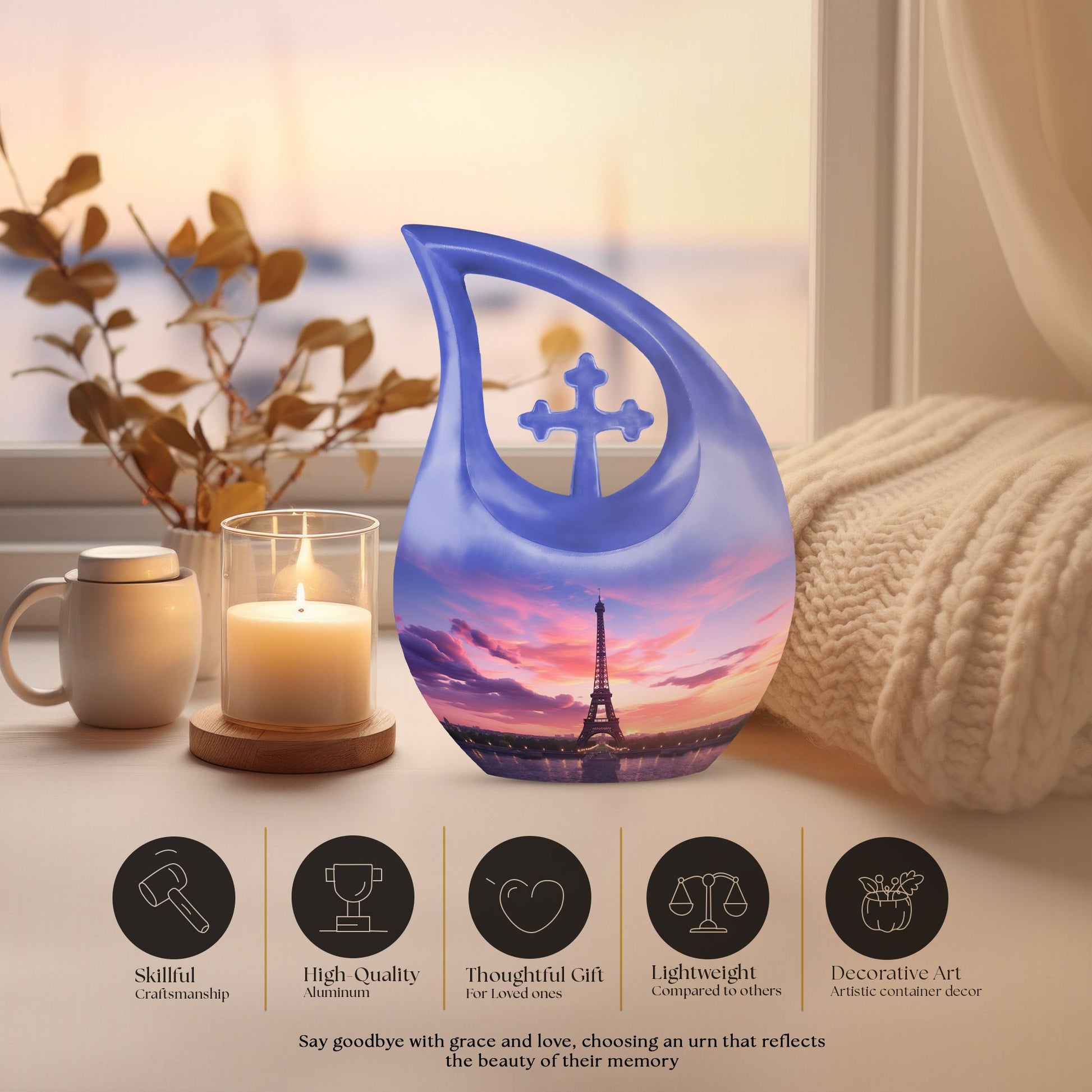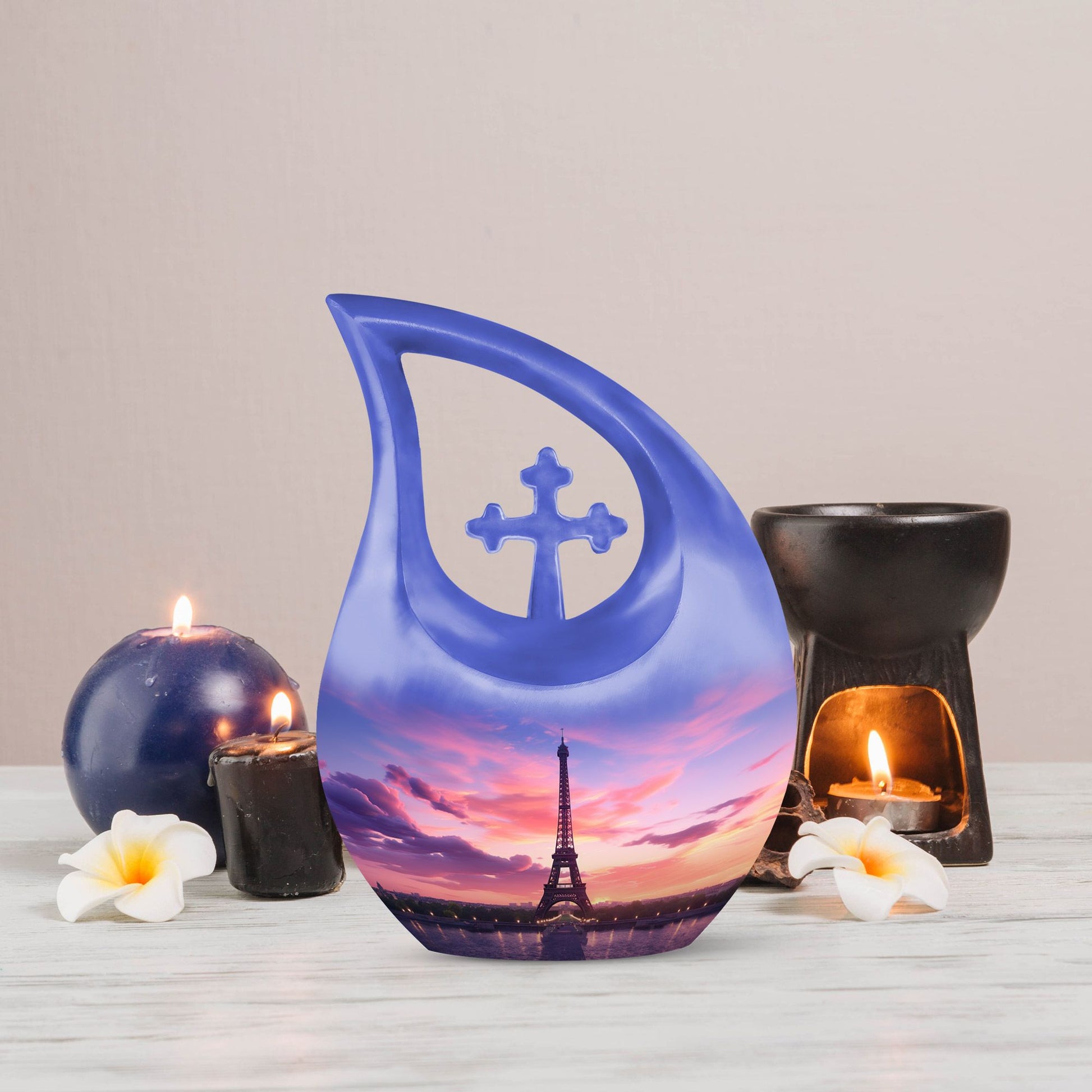The Paris Eiffel Tower Sunset Urn is a timeless tribute to love, memory, and serenity. Inspired by the romantic hues of a Parisian sunset, this exquisite urn beautifully captures the spirit of remembrance. Perfect for families seeking Urns For Human Ashes Adult Female Mom or Urns For Adult Male Ashes, it serves as a meaningful resting place that honors life’s most precious memories with grace and elegance.