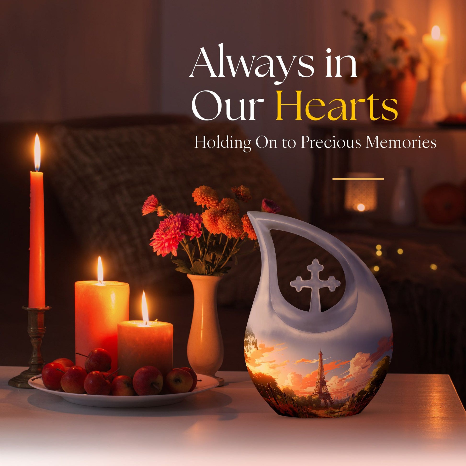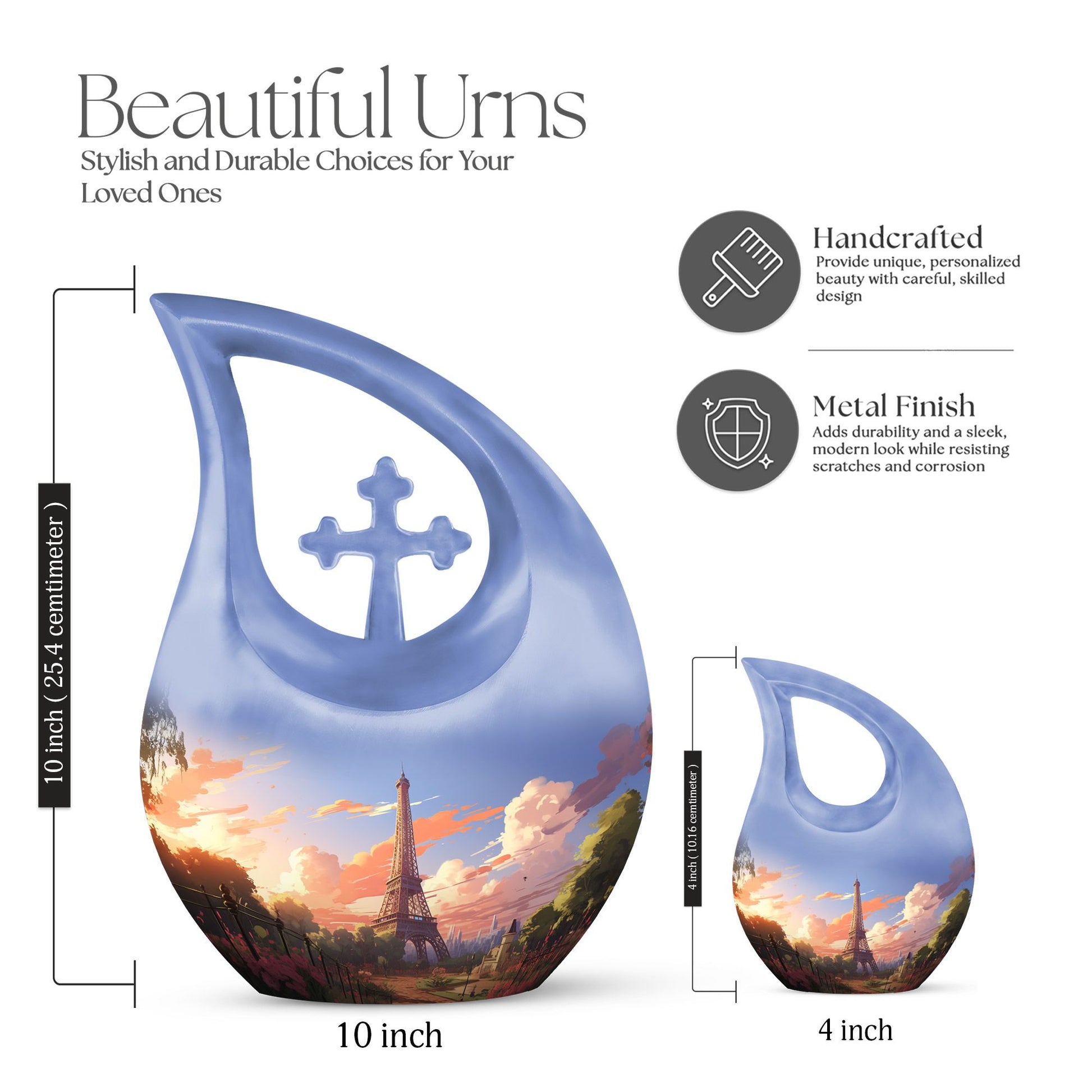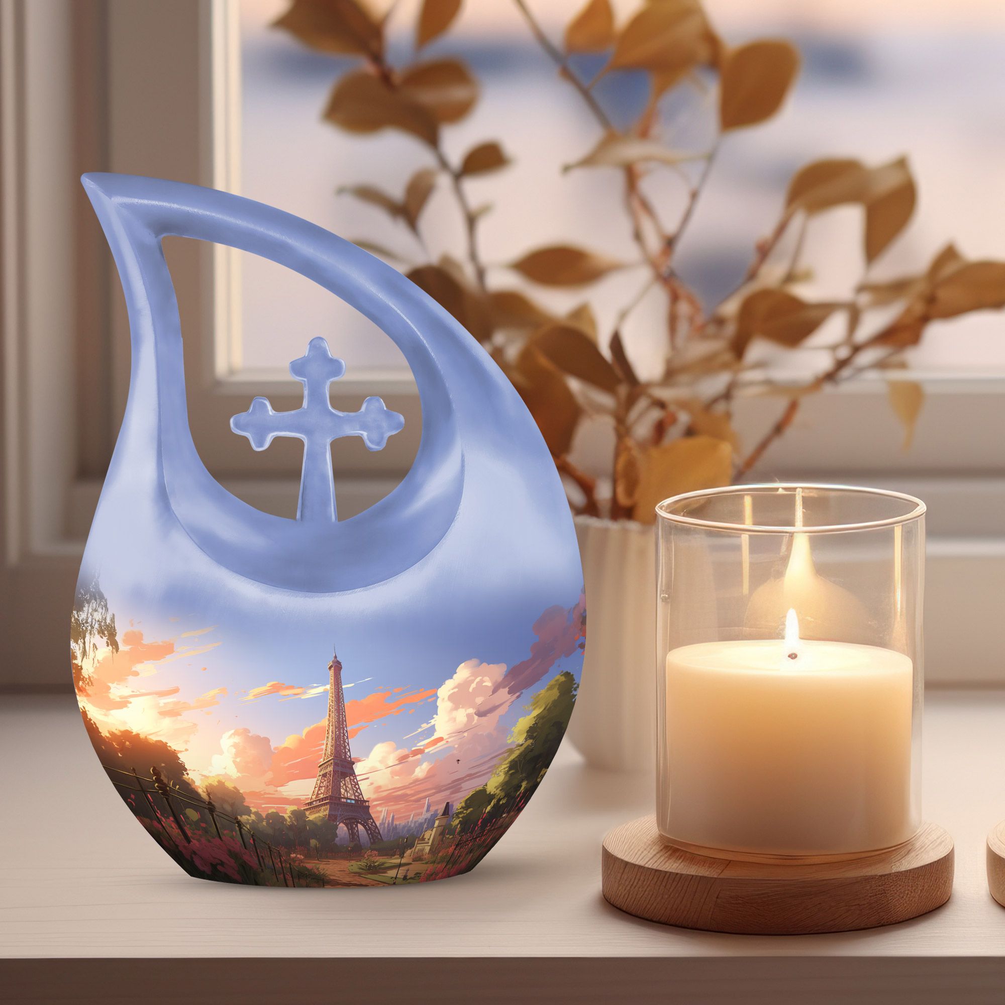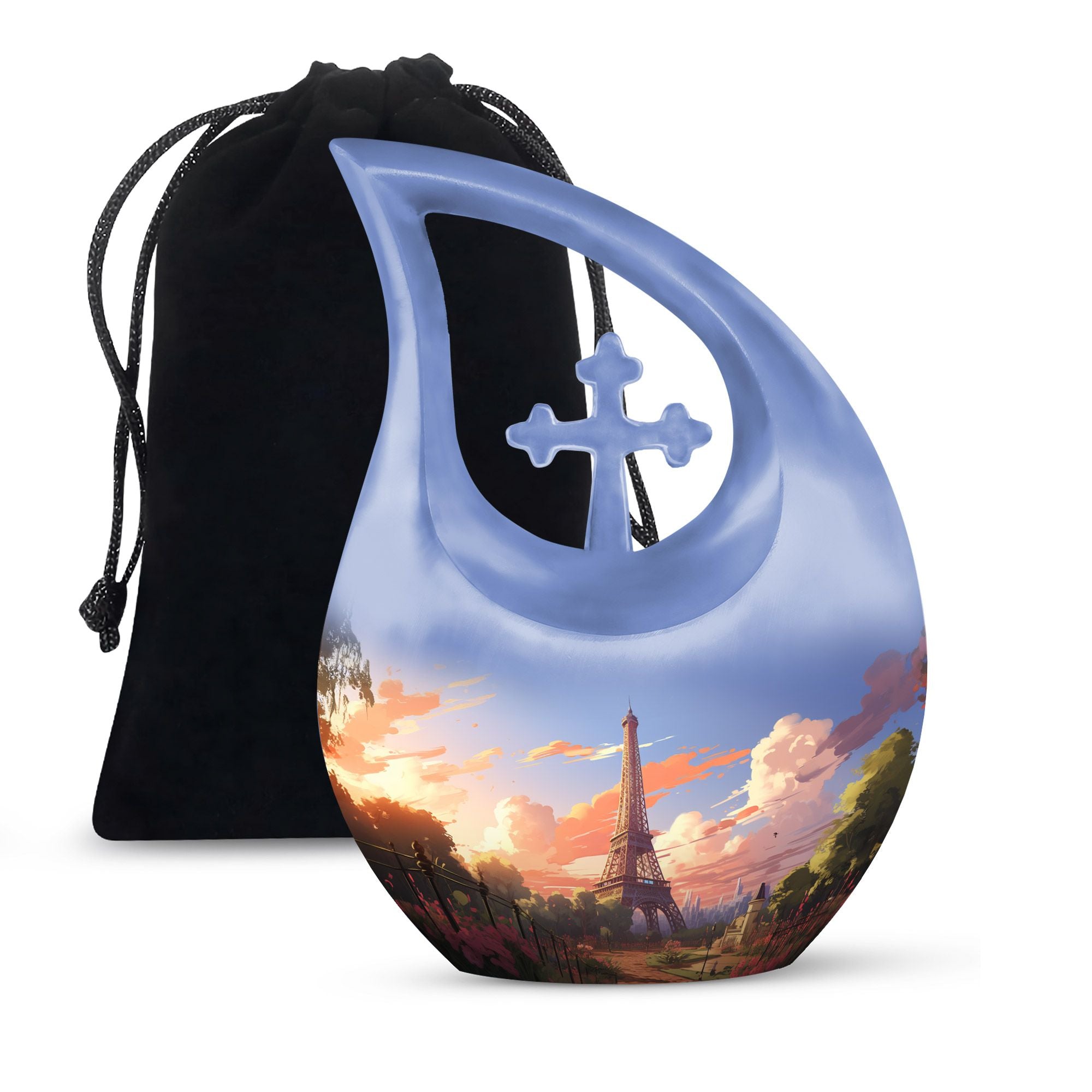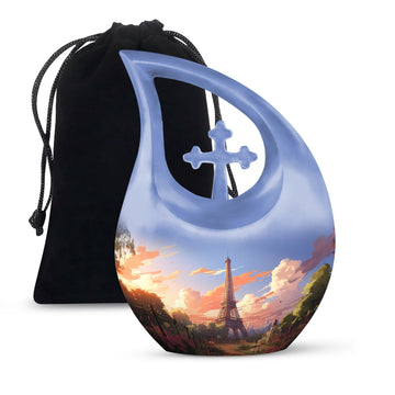The Eiffel Tower Sunrise Themed Urn beautifully symbolizes eternal love, memories, and peace. Inspired by the serene hues of dawn over Paris, this urn captures the warmth of cherished moments shared with loved ones. Whether chosen as urns for human ashes adult male dad or urns for human ashes adult female mom, it offers a graceful way to honor a life well-lived and deeply loved.