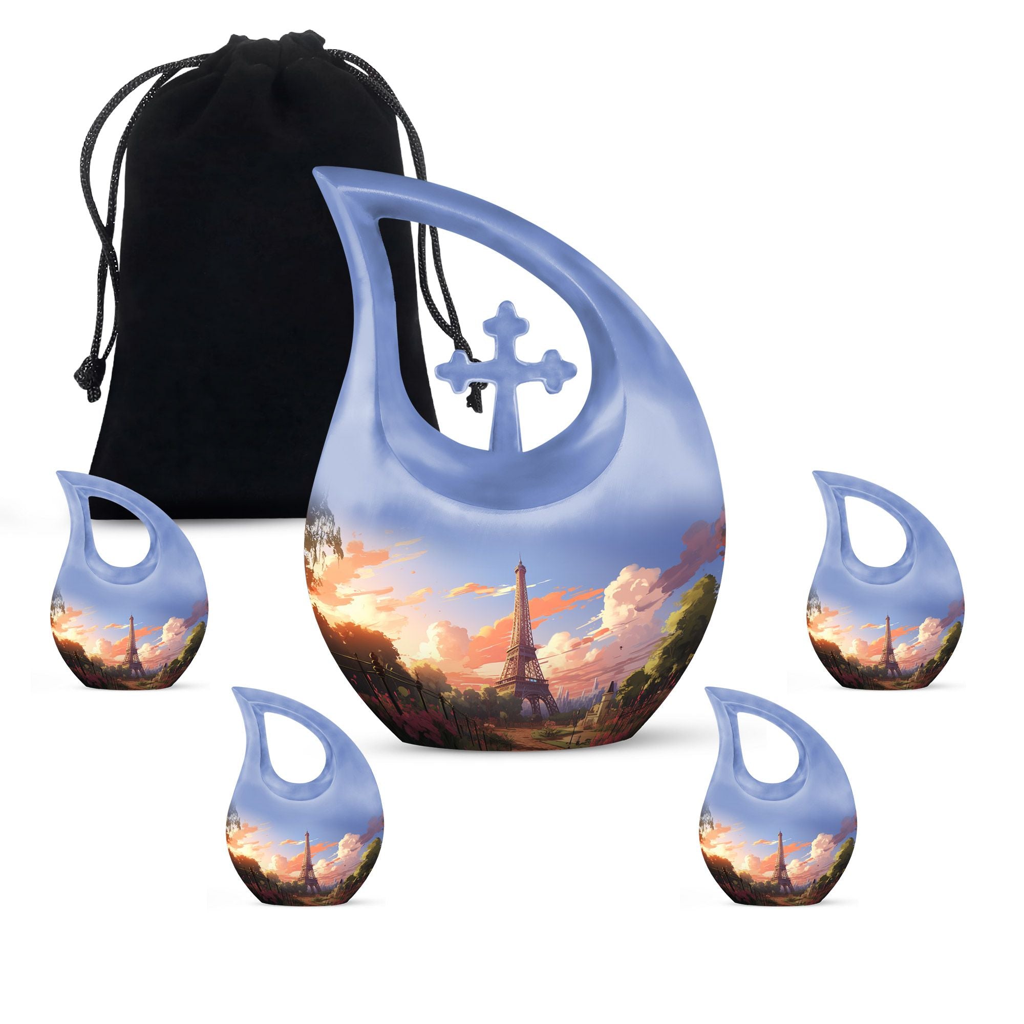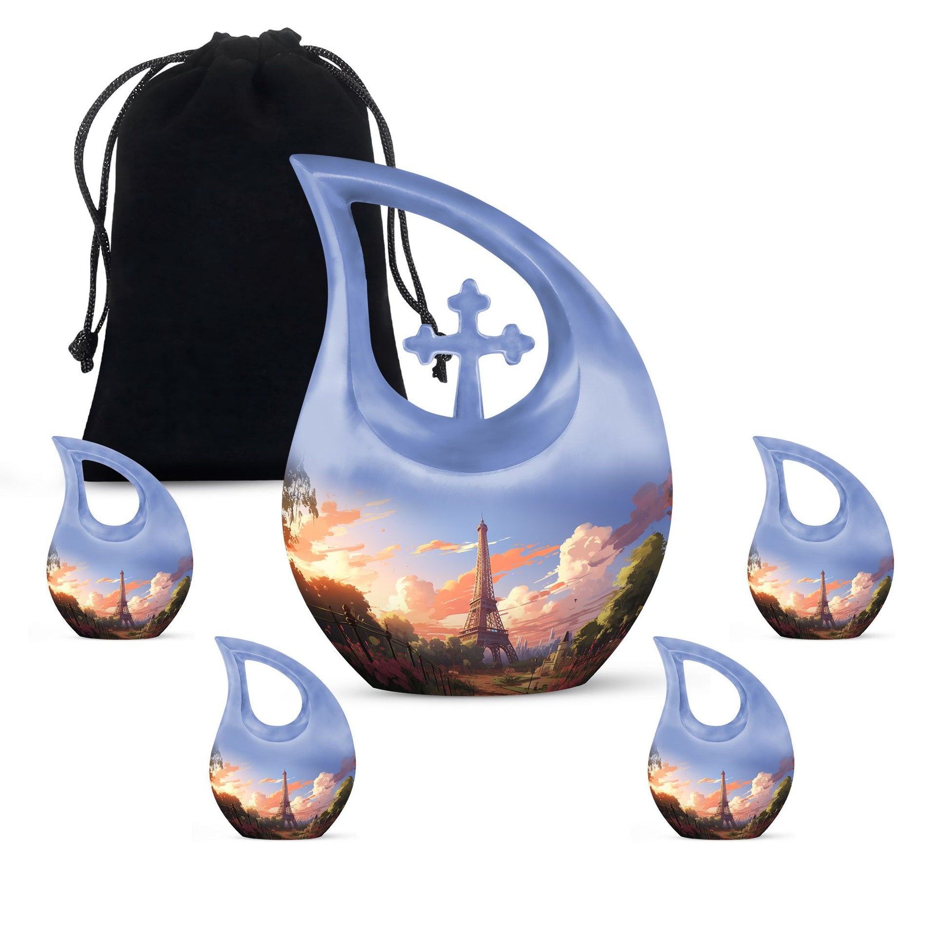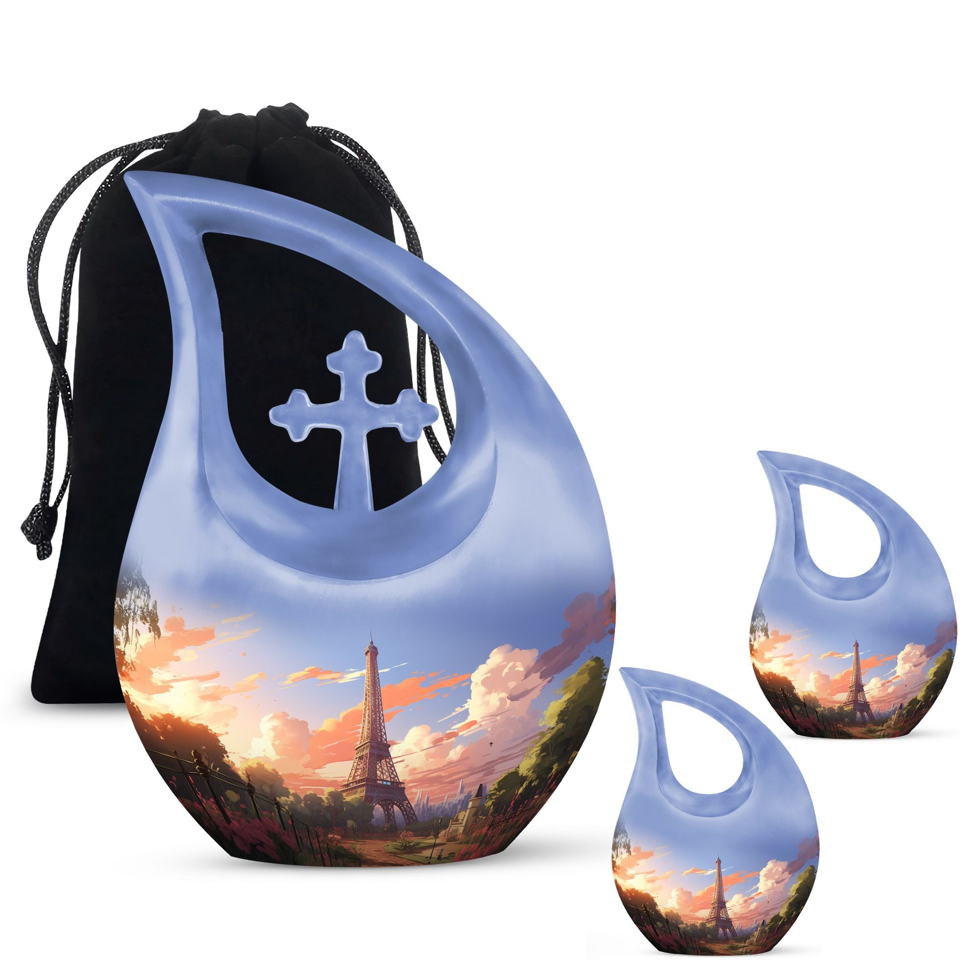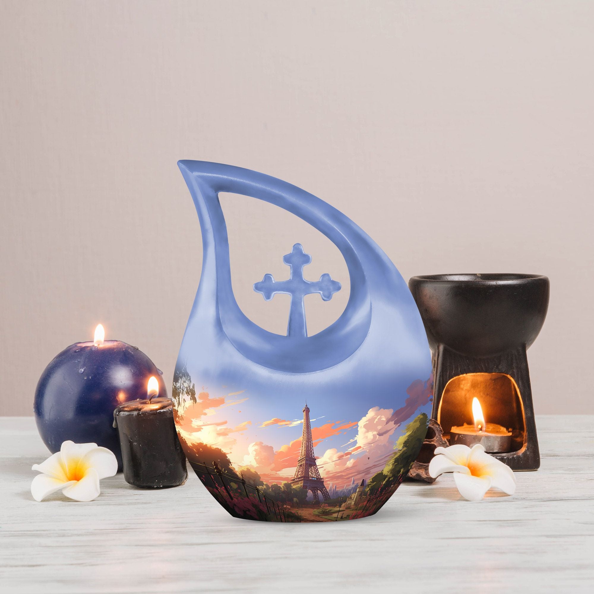 The Eiffel Tower Sunrise Themed Urn beautifully symbolizes eternal love, memories, and peace. Inspired by the serene hues of dawn over Paris, this urn captures the warmth of cherished moments shared with loved ones. Whether chosen as urns for human ashes adult male dad or urns for human ashes adult female mom, it offers a graceful way to honor a life well-lived and deeply loved.