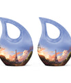 Every detail of the Eiffel Tower Sunrise Themed Urn embodies dignity and grace, making it one of the most meaningful small urns for human ashes adult male or urns for cremation ashes female available. A touching way to preserve the memory of your beloved with love, serenity, and beauty that lasts forever.