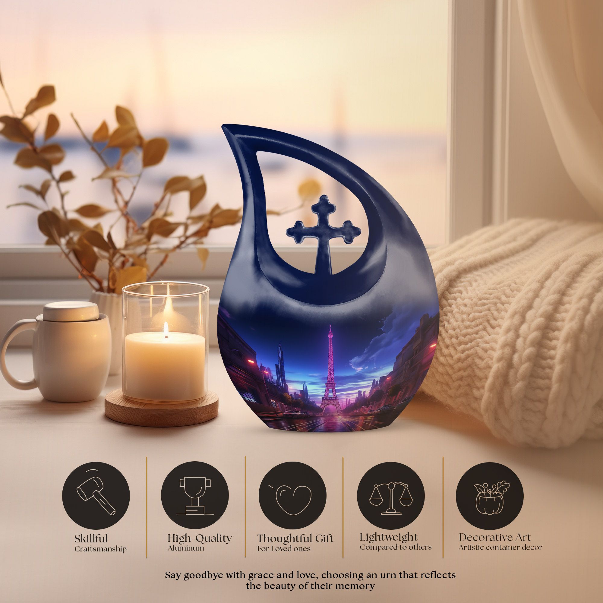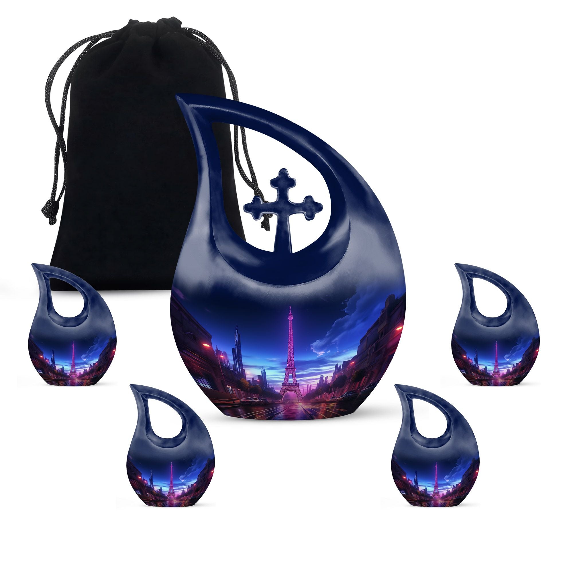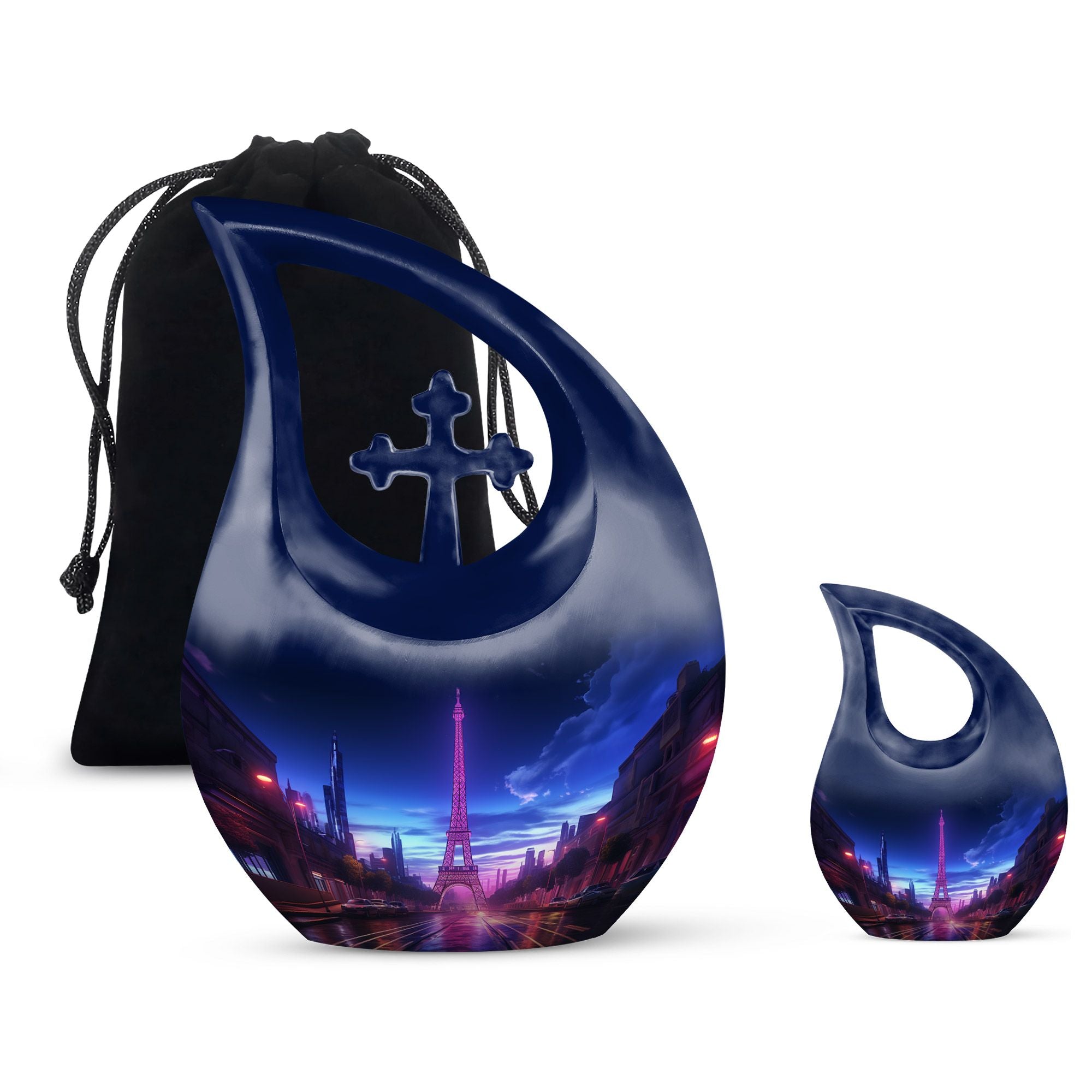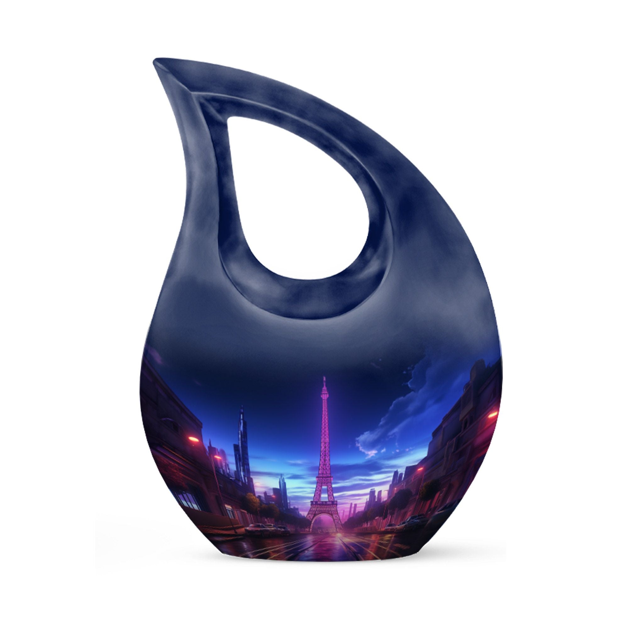 Crafted from high-quality aluminum, this urn features a breathtaking view of the Eiffel Tower under a tranquil night sky, reflecting elegance and peace. The design symbolizes timeless love and remembrance, making it ideal for Urns For Adult Male Ashes or Urns For Cremation Ashes Female. The durable finish ensures lasting beauty, while its compact size makes it a meaningful option for Urns For Adult Female Small or Mini Urn For Ashes Adult Male.